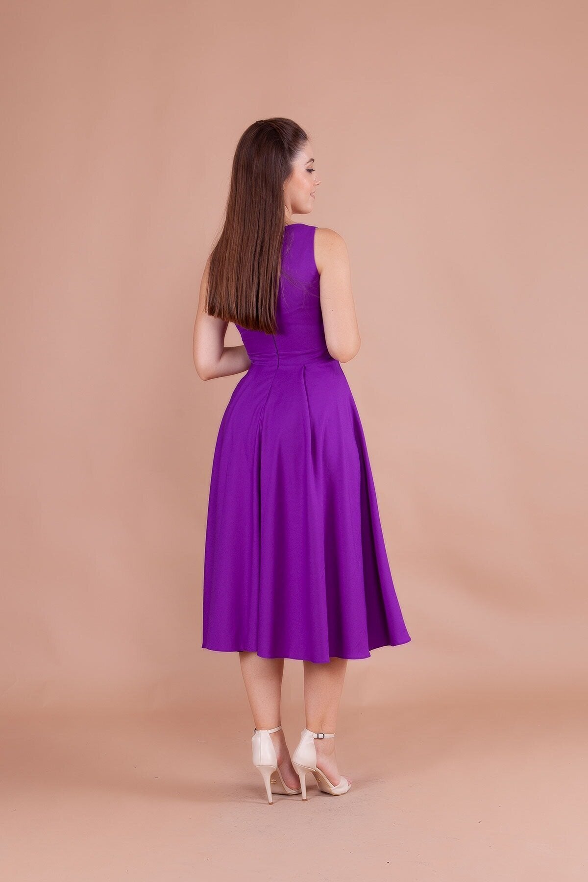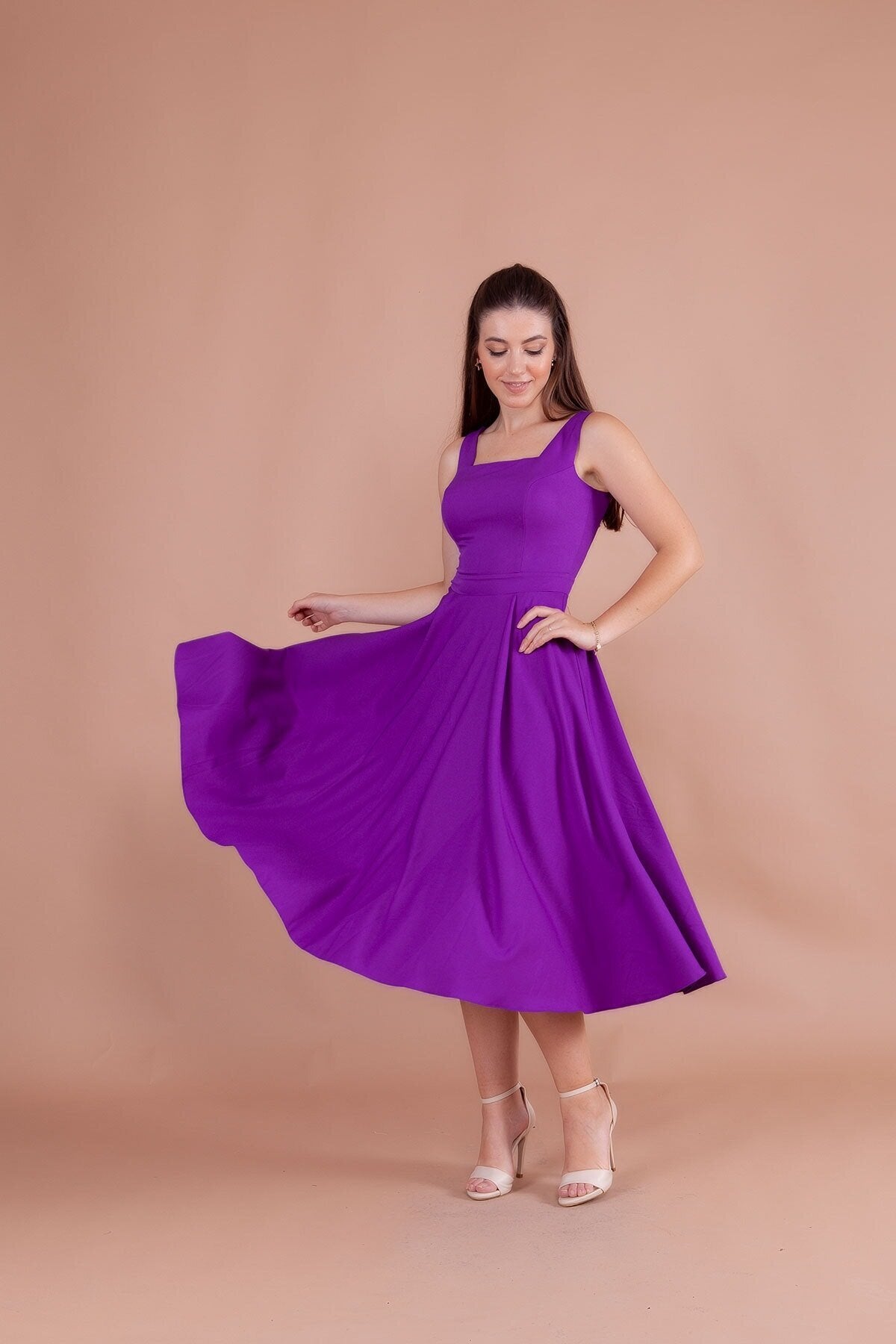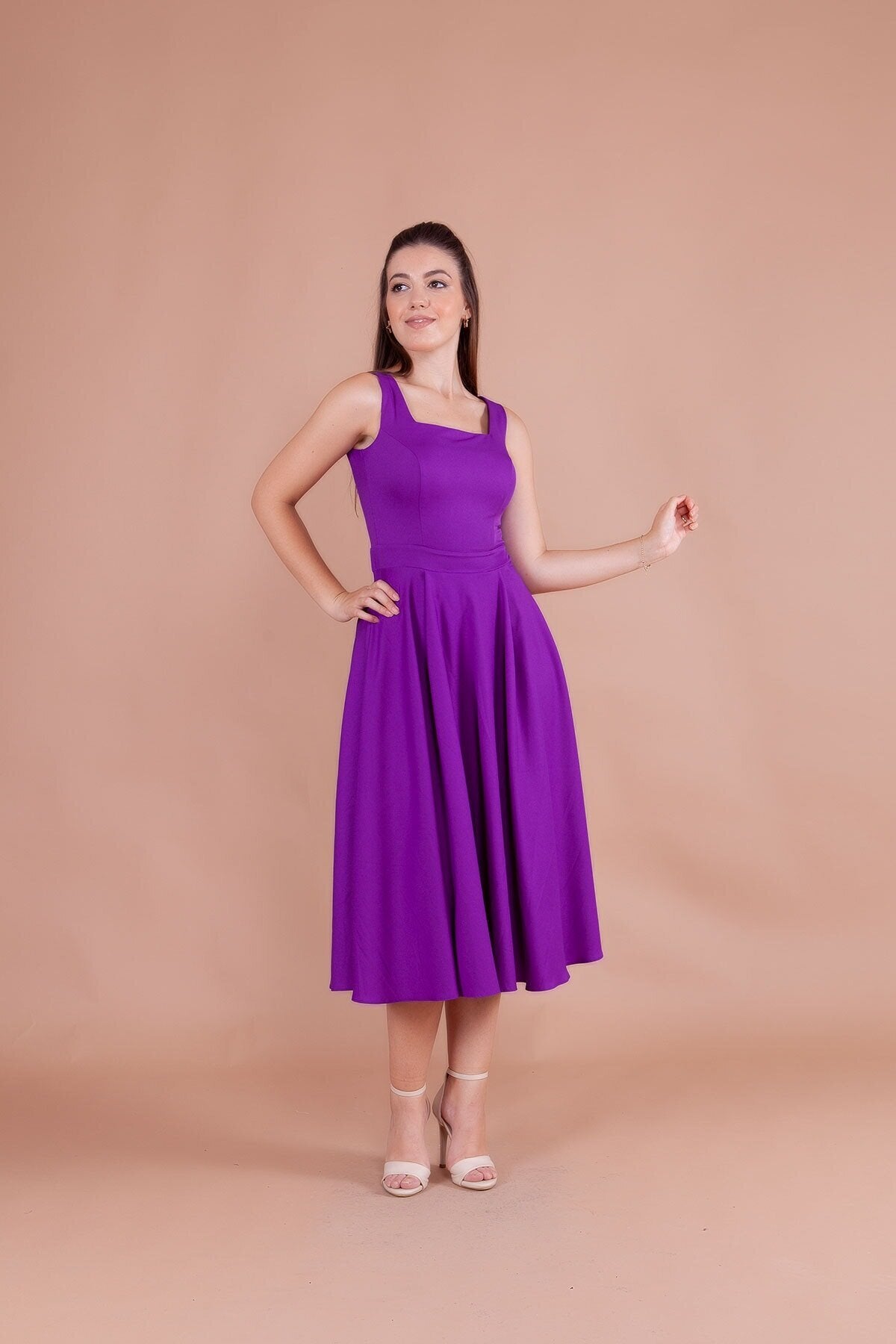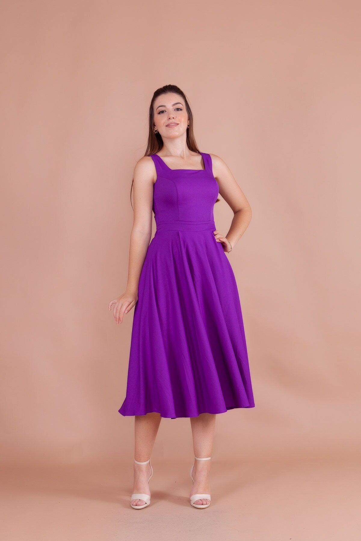 Midi Strappy Square Neck Dress - Purple