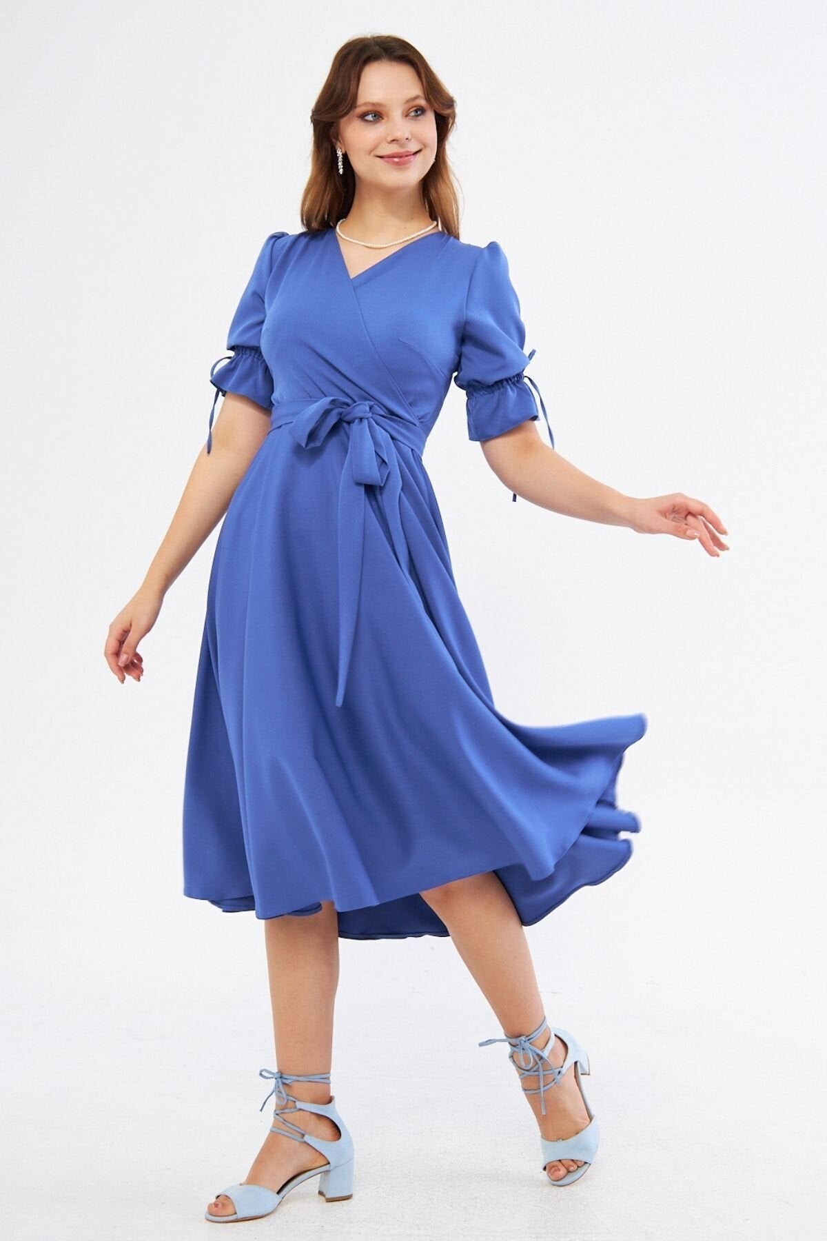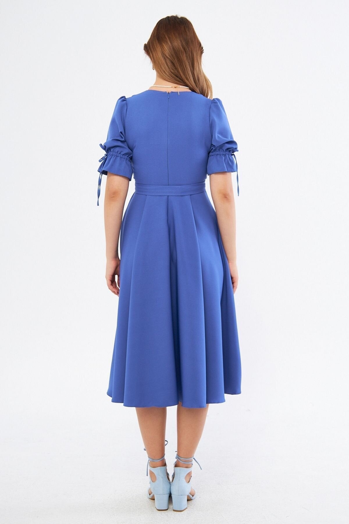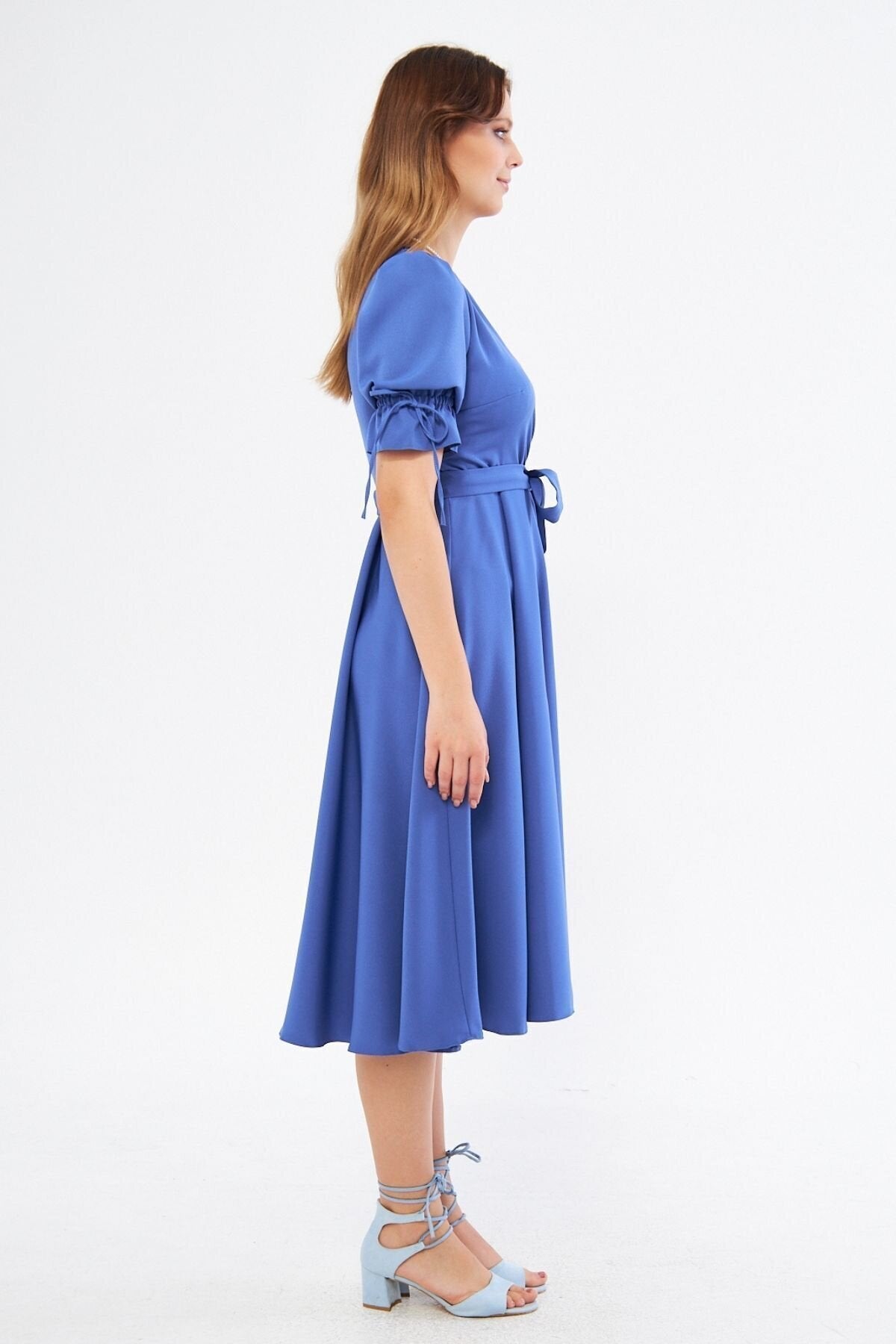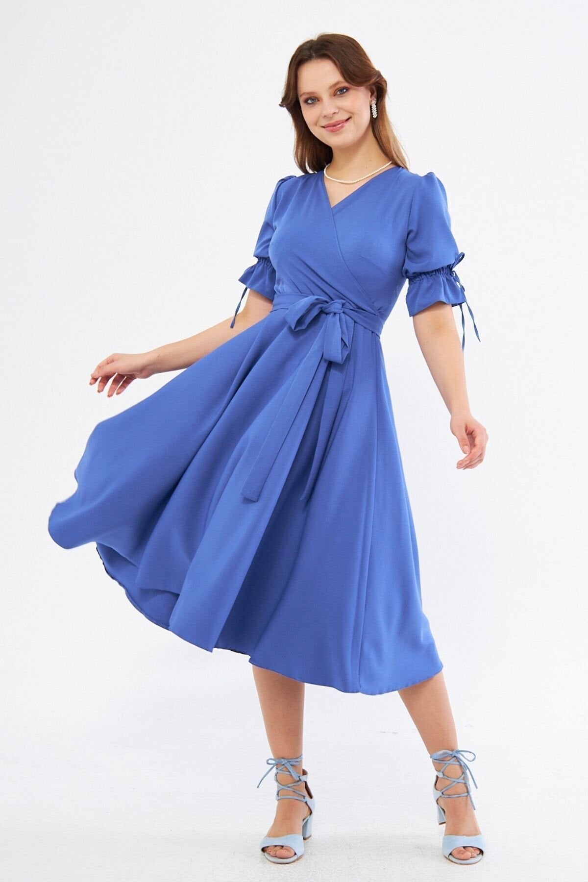 Midi Surplice Neck Ruched Evening Dress - Denim Blue