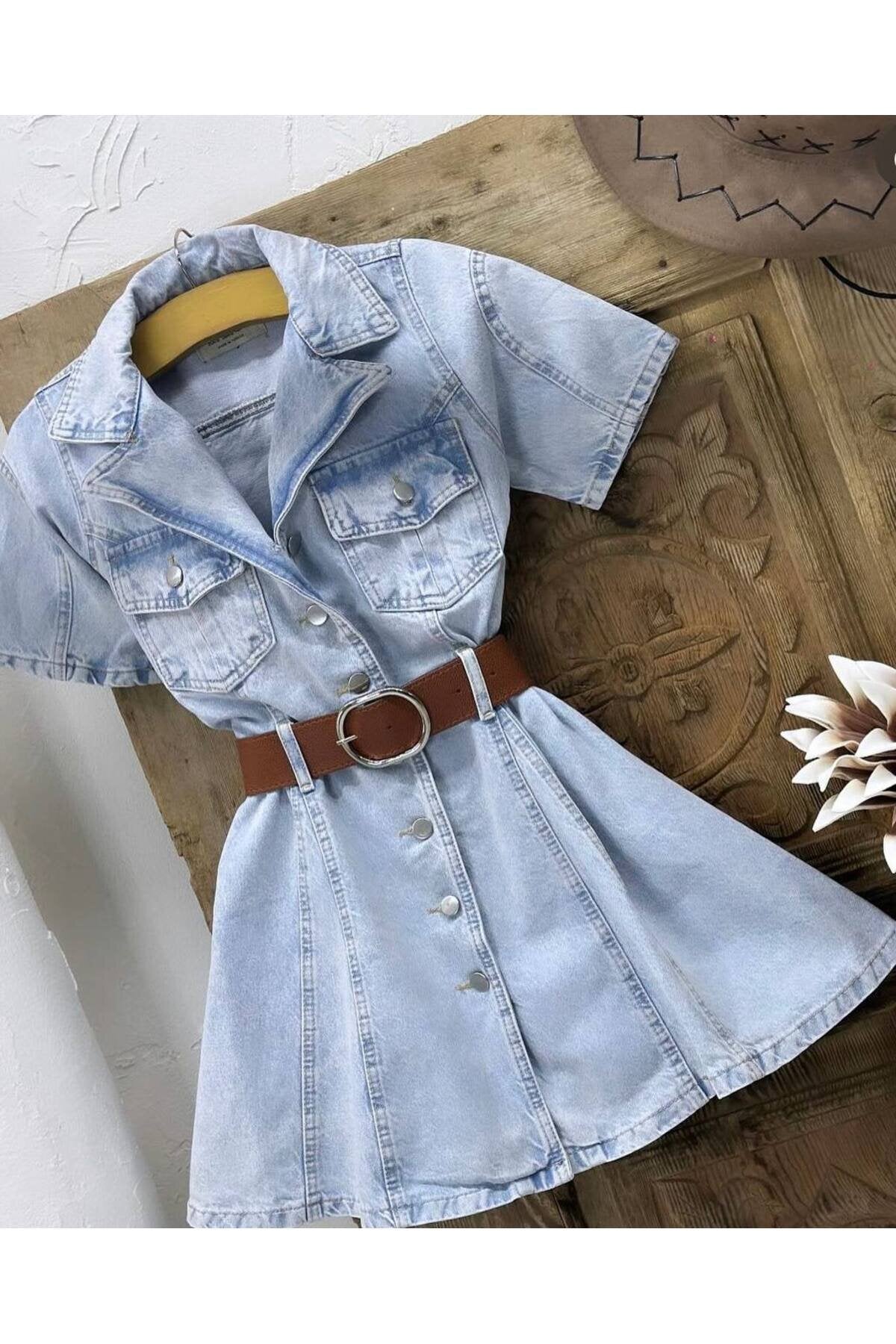 This light blue denim mini dress effortlessly blends classic utility with a feminine, flared silhouette. Featuring a structured bodice and a playful A-line skirt, itâs designed to accentuate your waist while offering a crisp, clean aesthetic that never goes out of style.