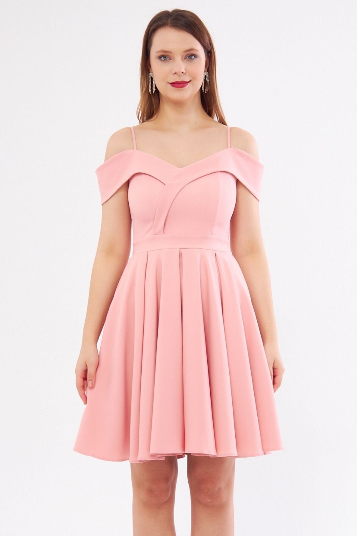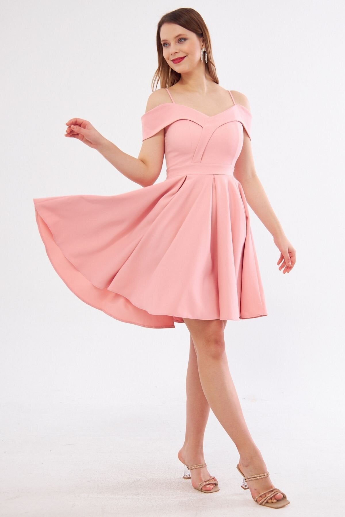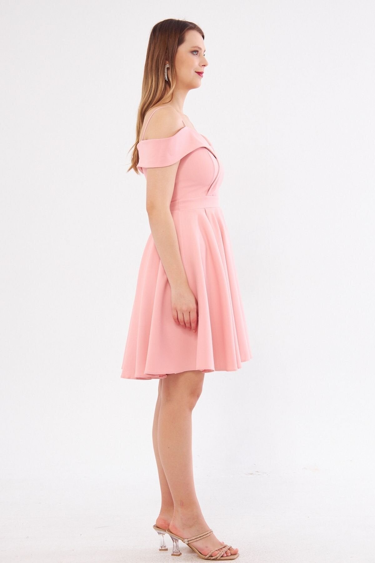 Mini Flared Boat Neck Evening Dress - Blush