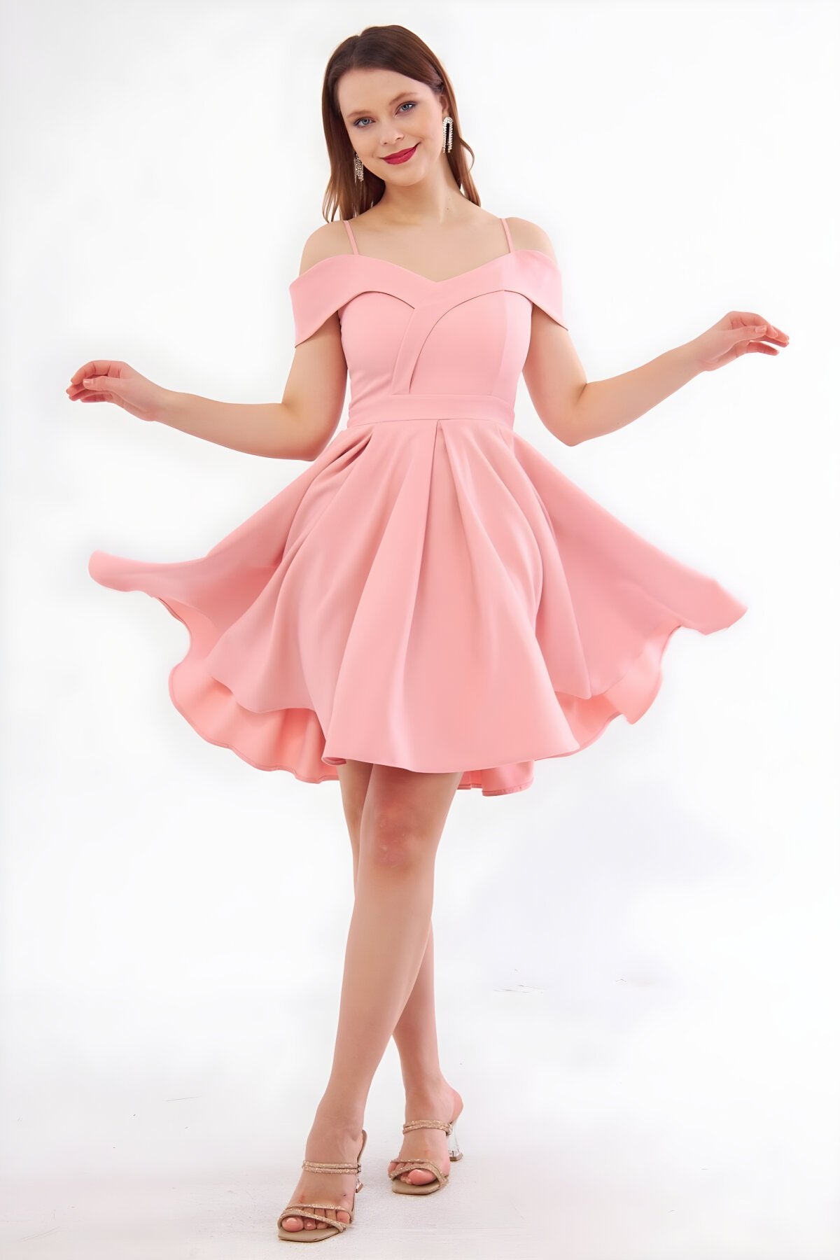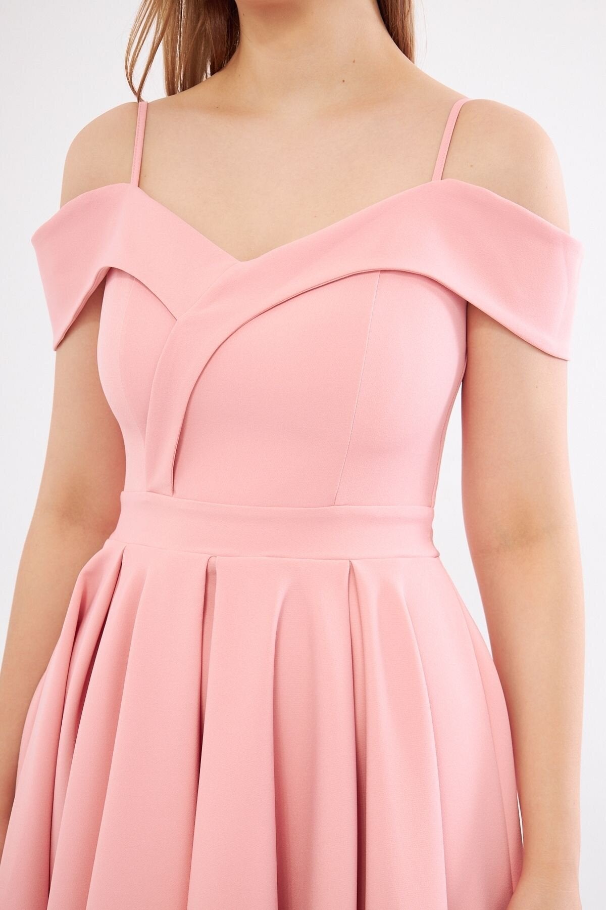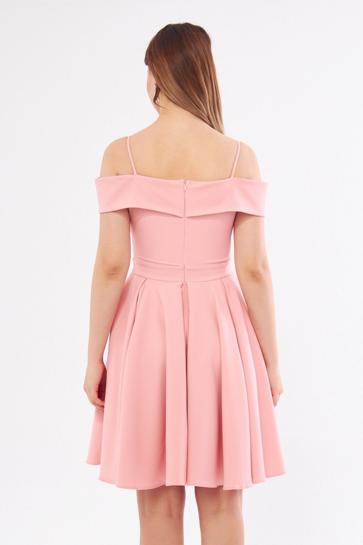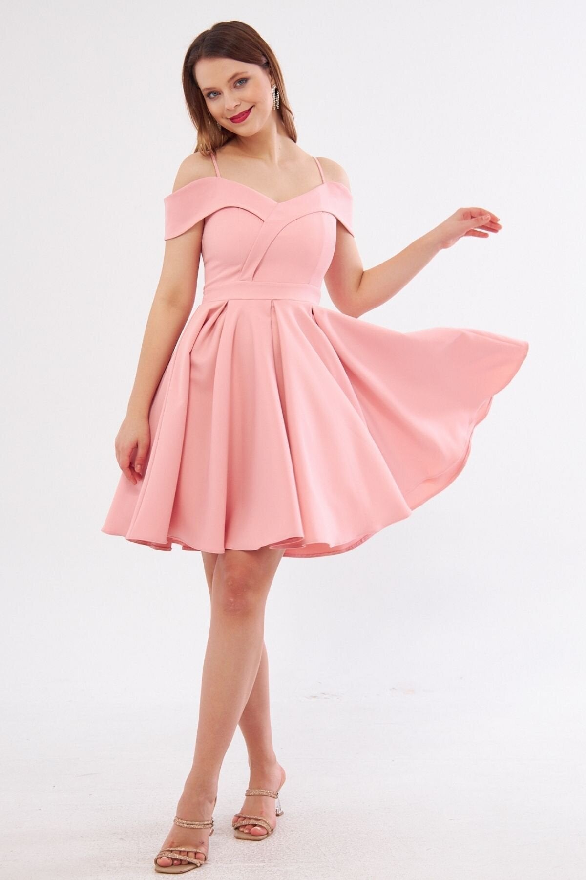 Mini Flared Boat Neck Evening Dress - Blush