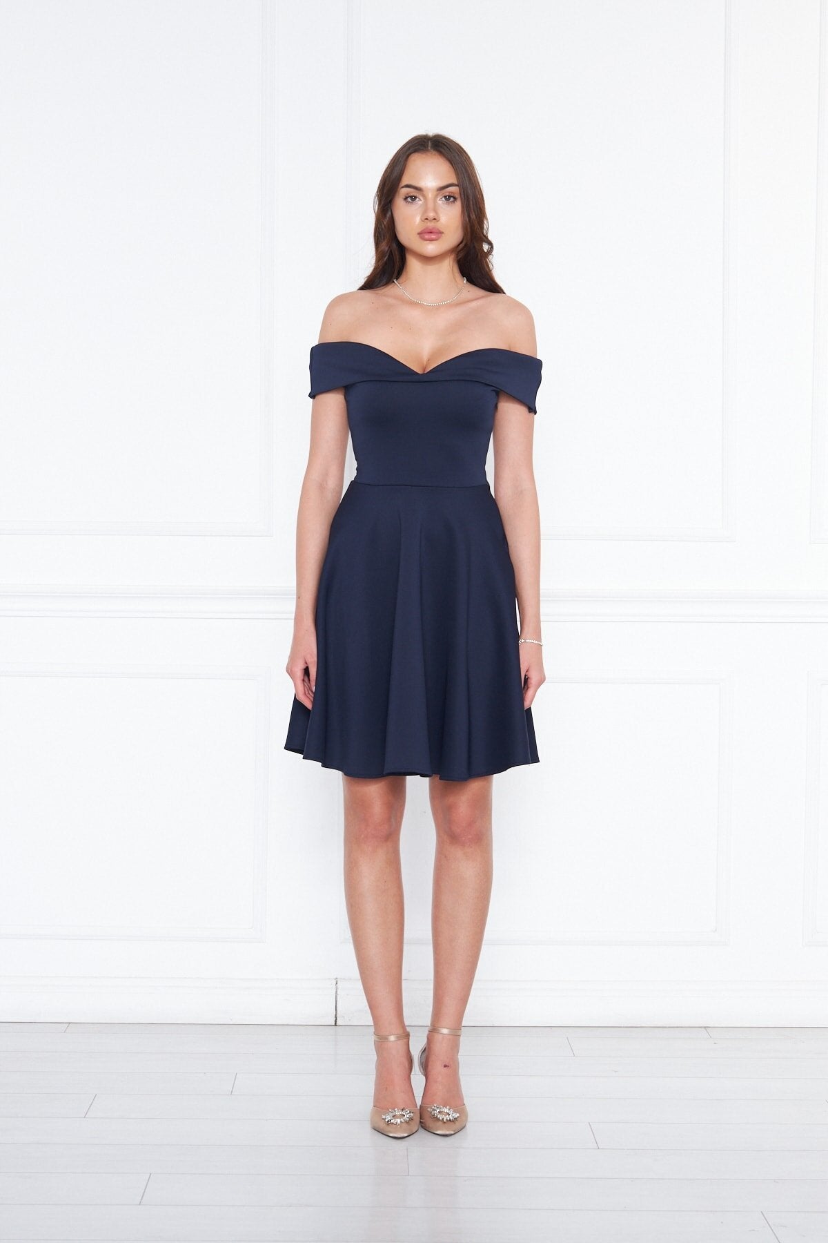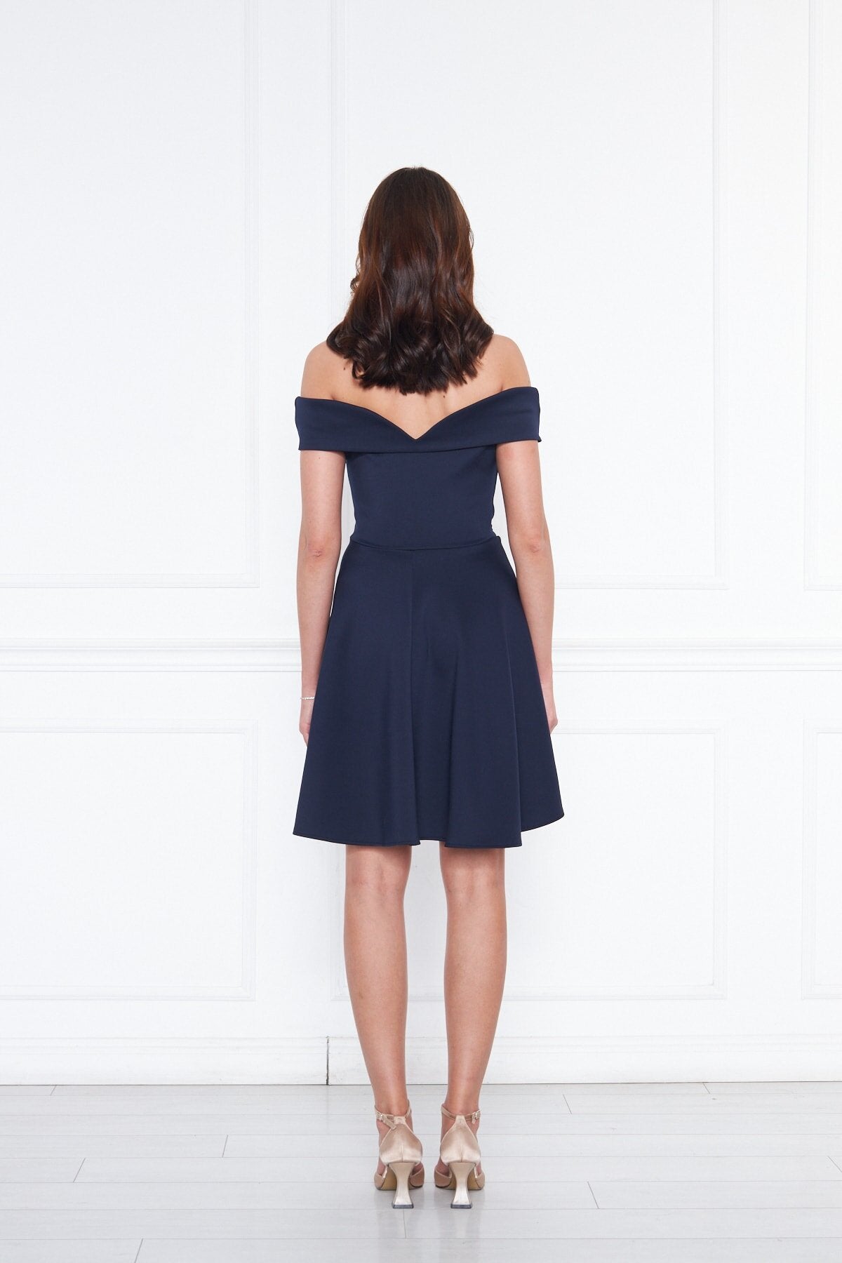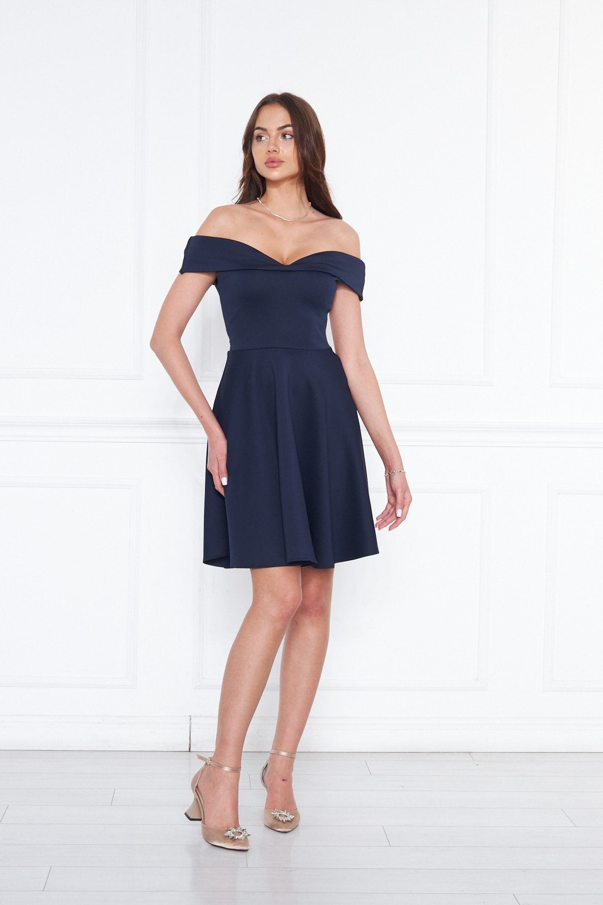 Mini Flared Off-the-shoulder Sweetheart Neckline Evening Dress - Navy
