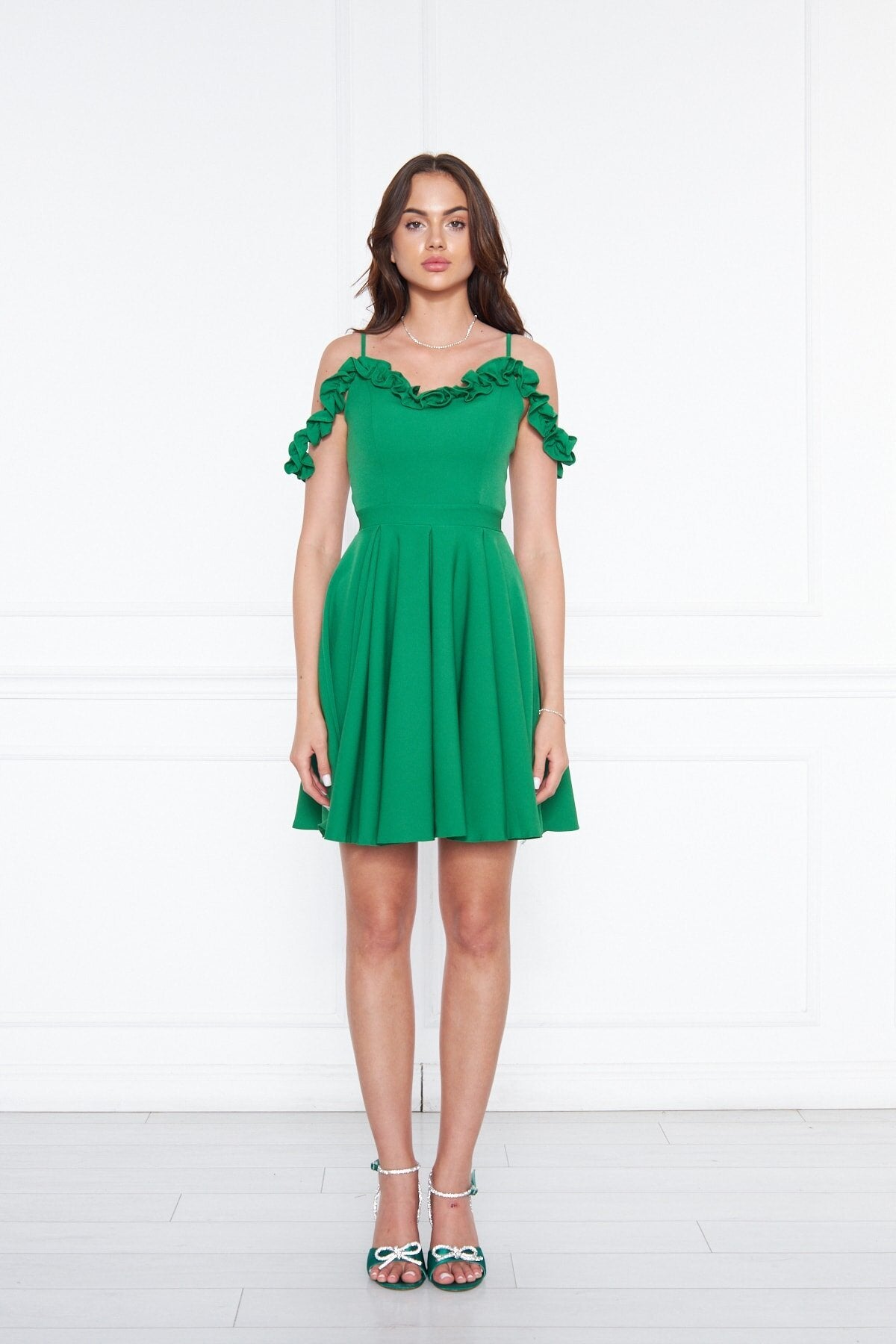 Mini Flared Pleated Evening Dress - Grass Green