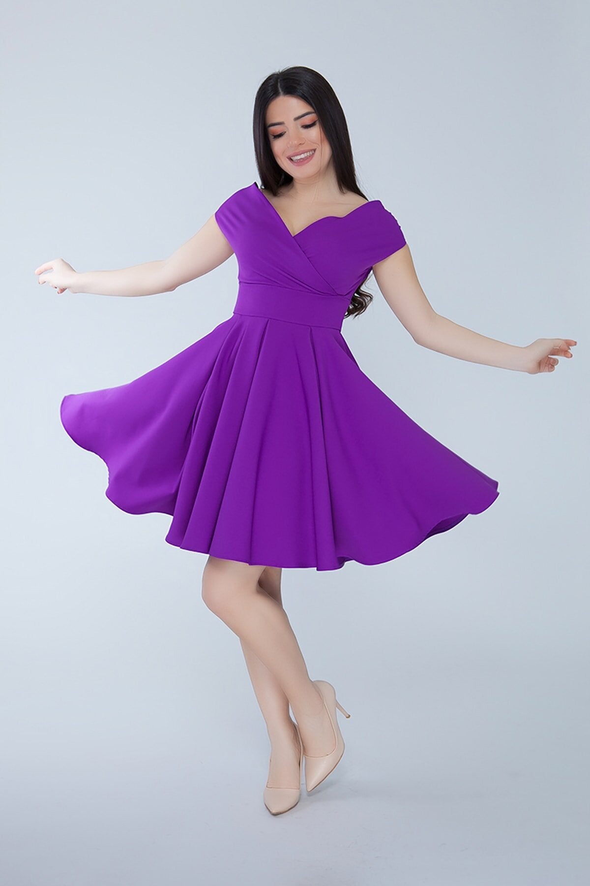 - An impeccable choice for cocktail parties and semi-formal weddings, where the rich purple tone and chic flared skirt ensure you look both fashionable and appropriately dressed for the occasion.