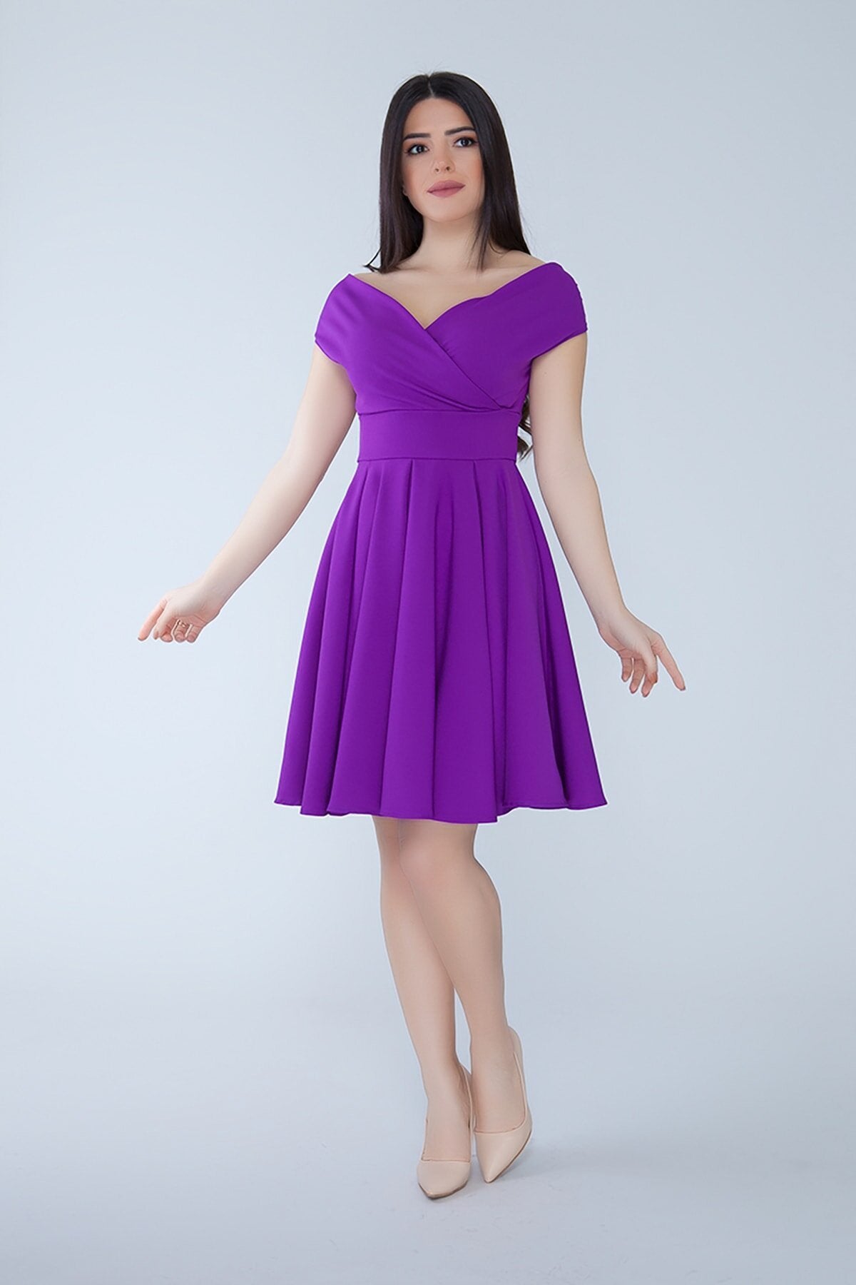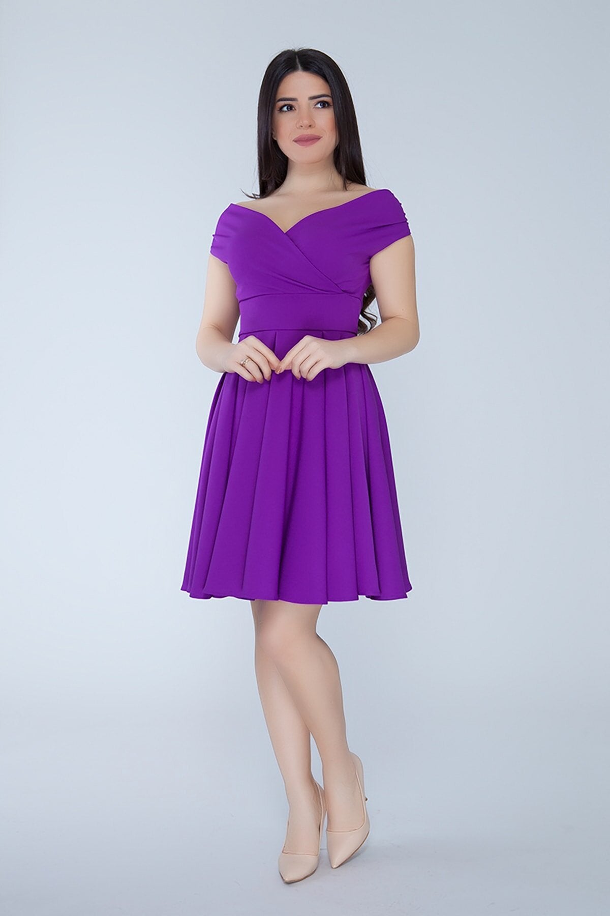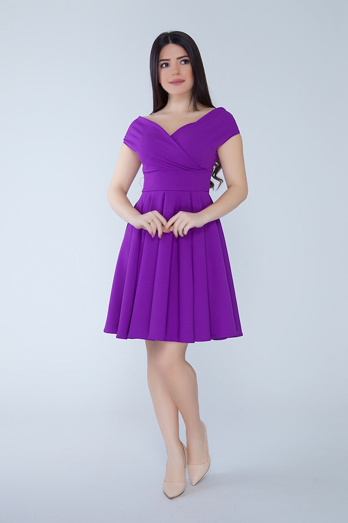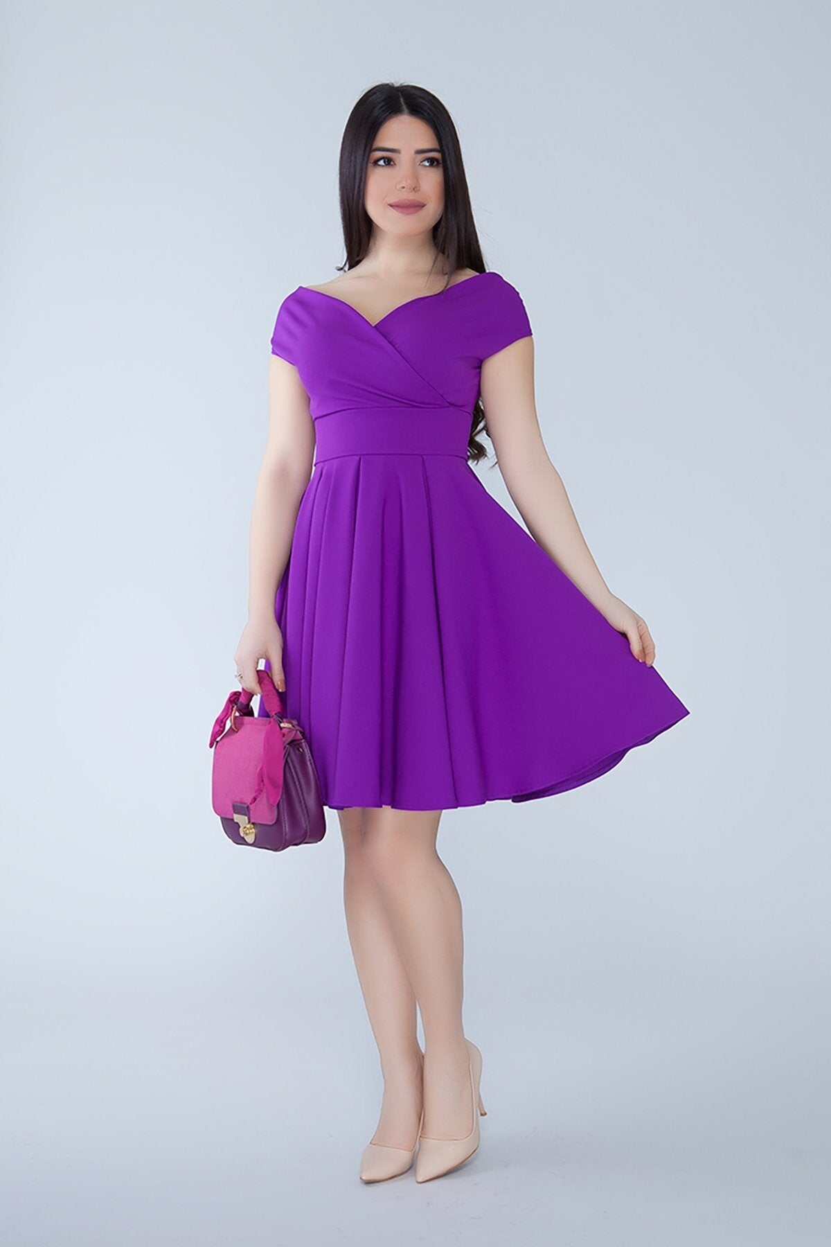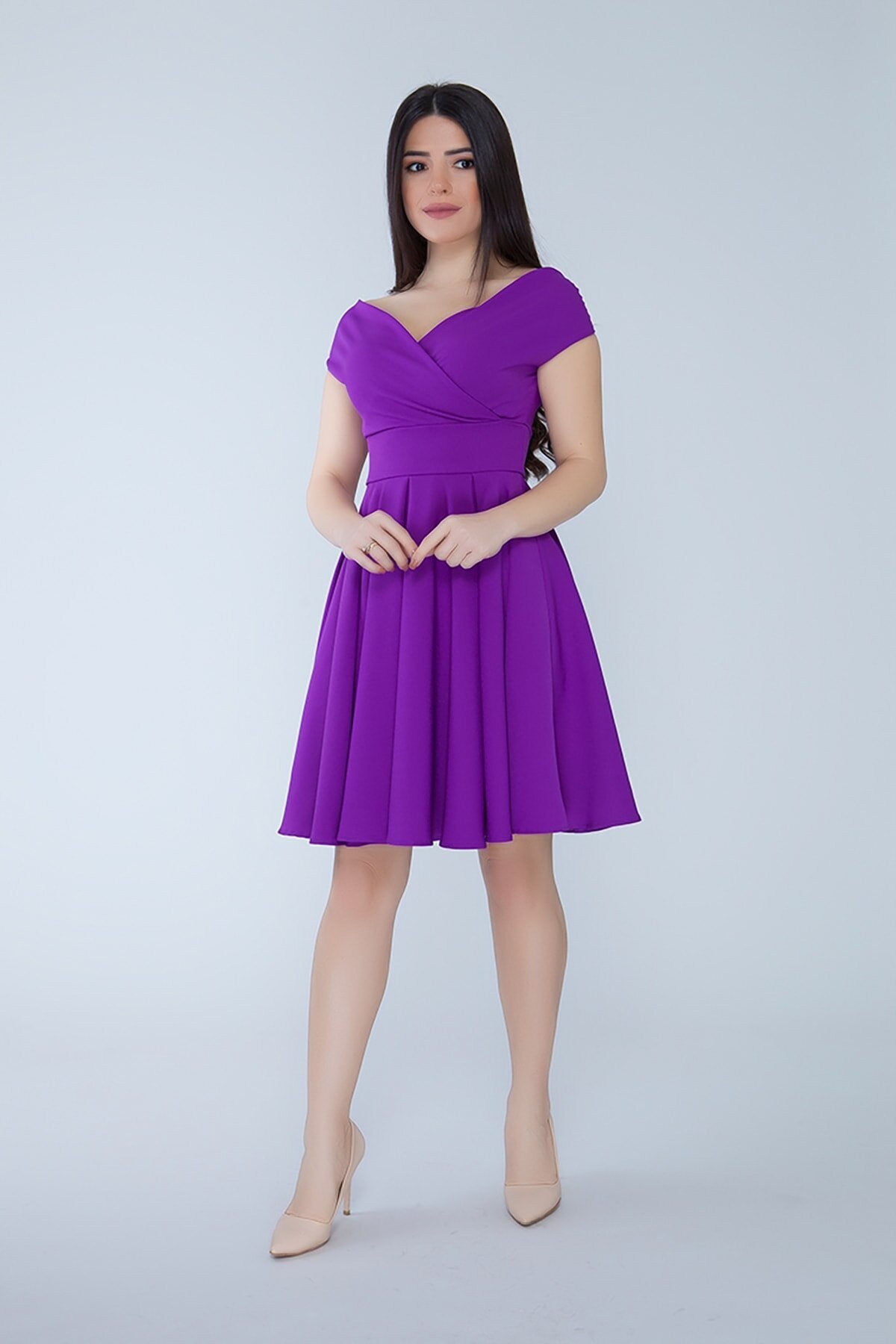 This Mini Flared Pleated Evening Dress in a striking purple hue combines modern flair with timeless grace. Its structured yet feminine design is perfectly balanced to highlight the figure while offering a sophisticated, high-fashion appeal that is sure to turn heads.