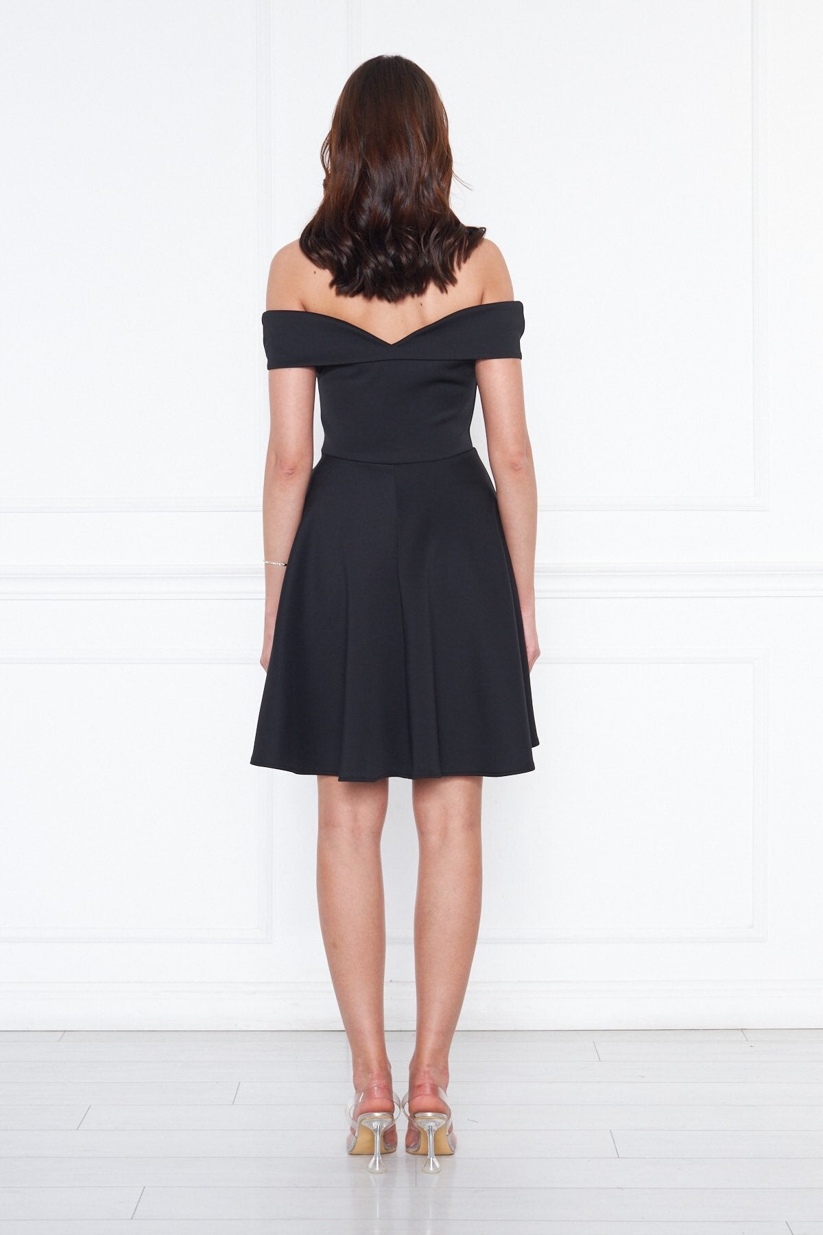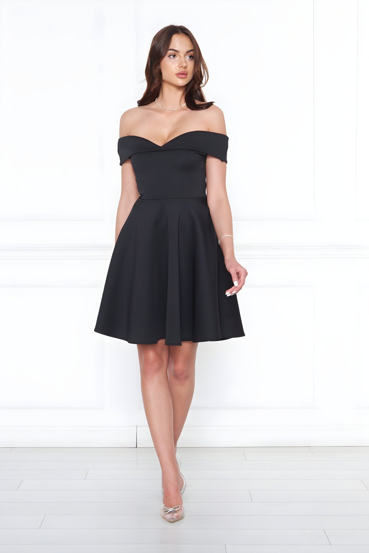 Mini Flared Scuba Off-the-shoulder Sweetheart Neckline Evening Dress - Black