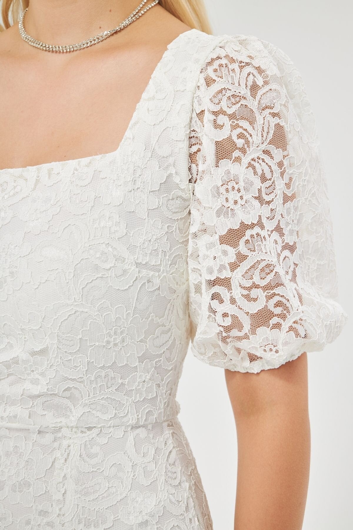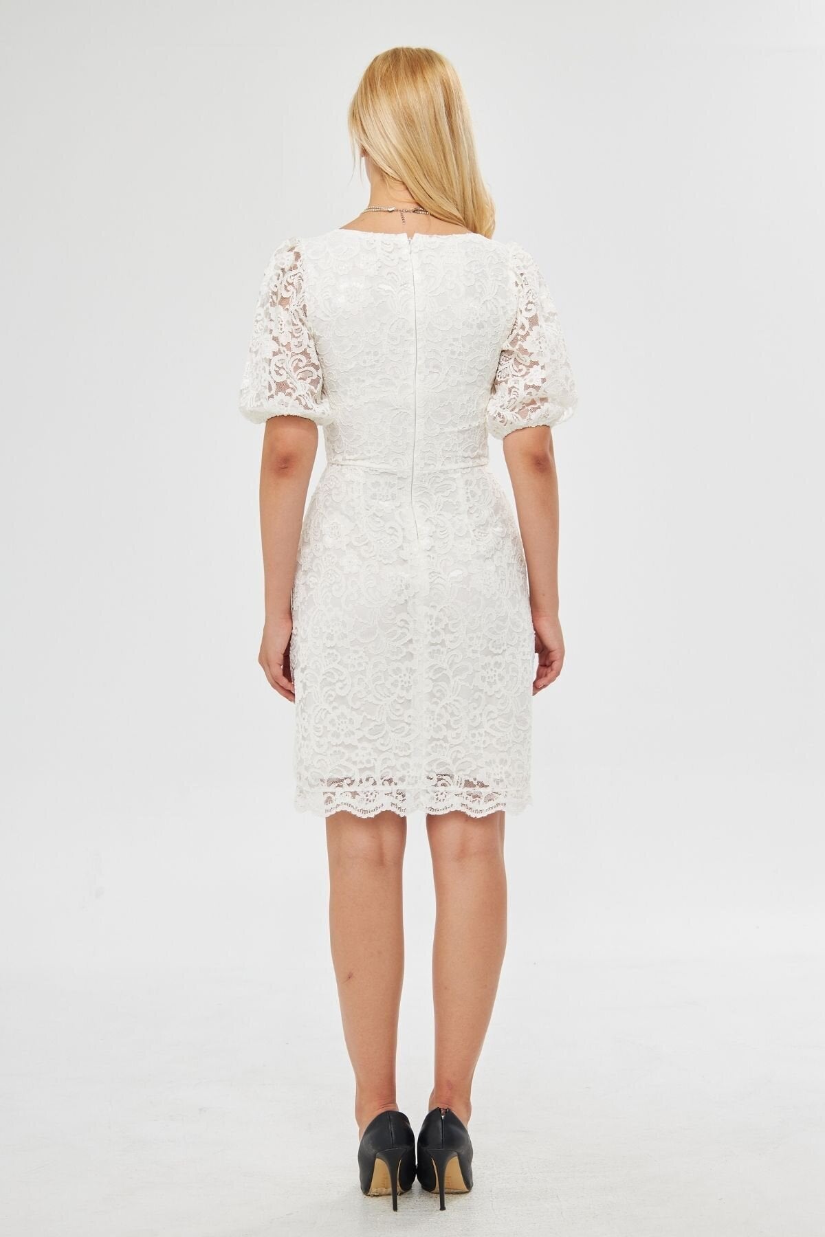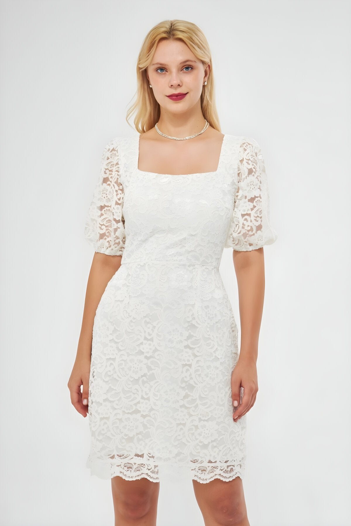 Mini French Lace Balloon Sleeve Evening Dress - White