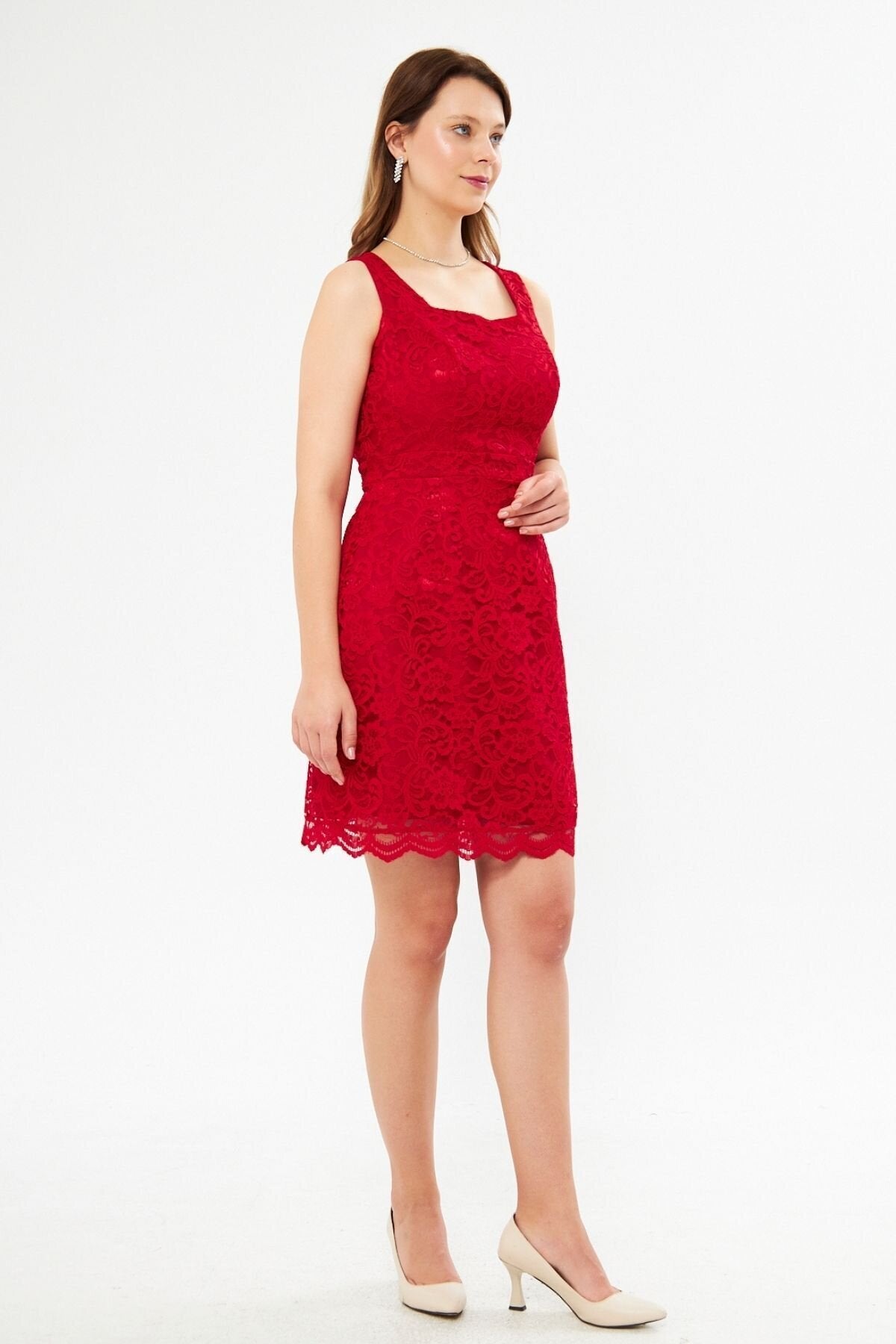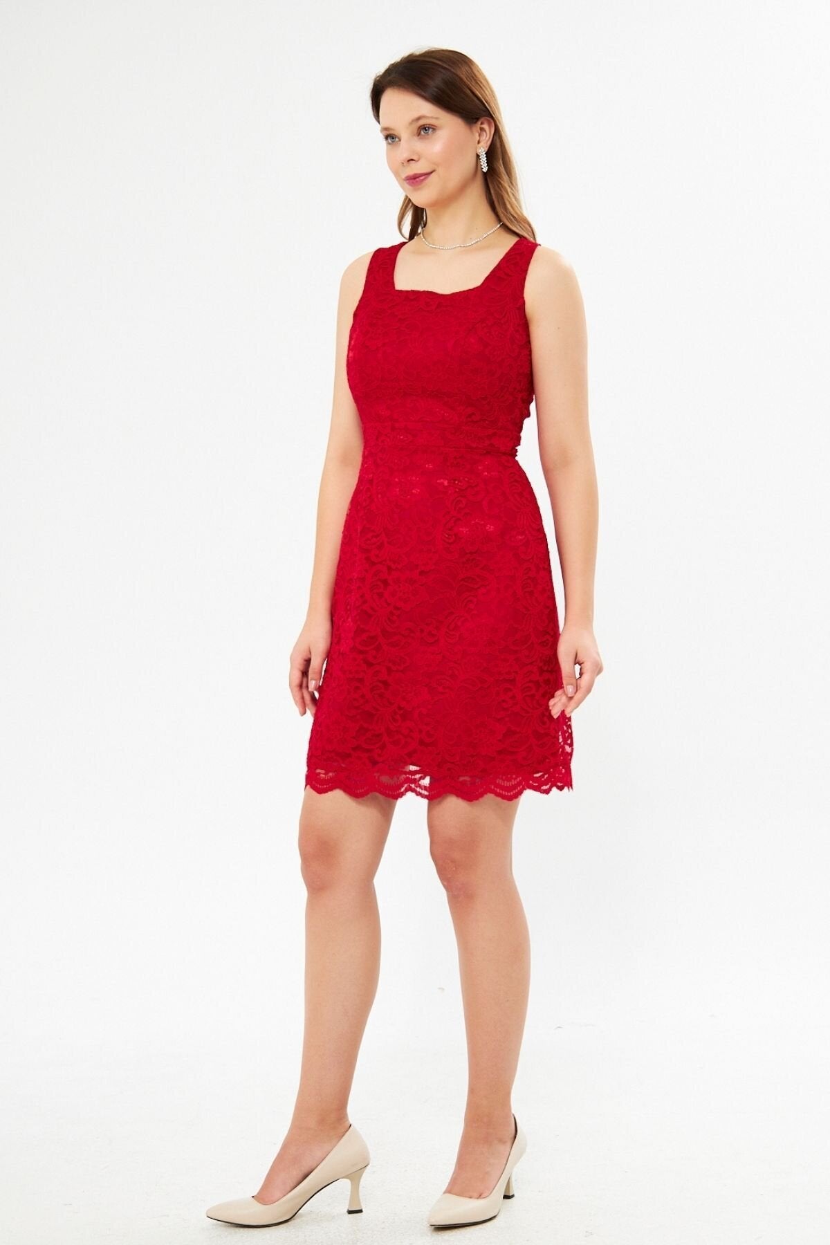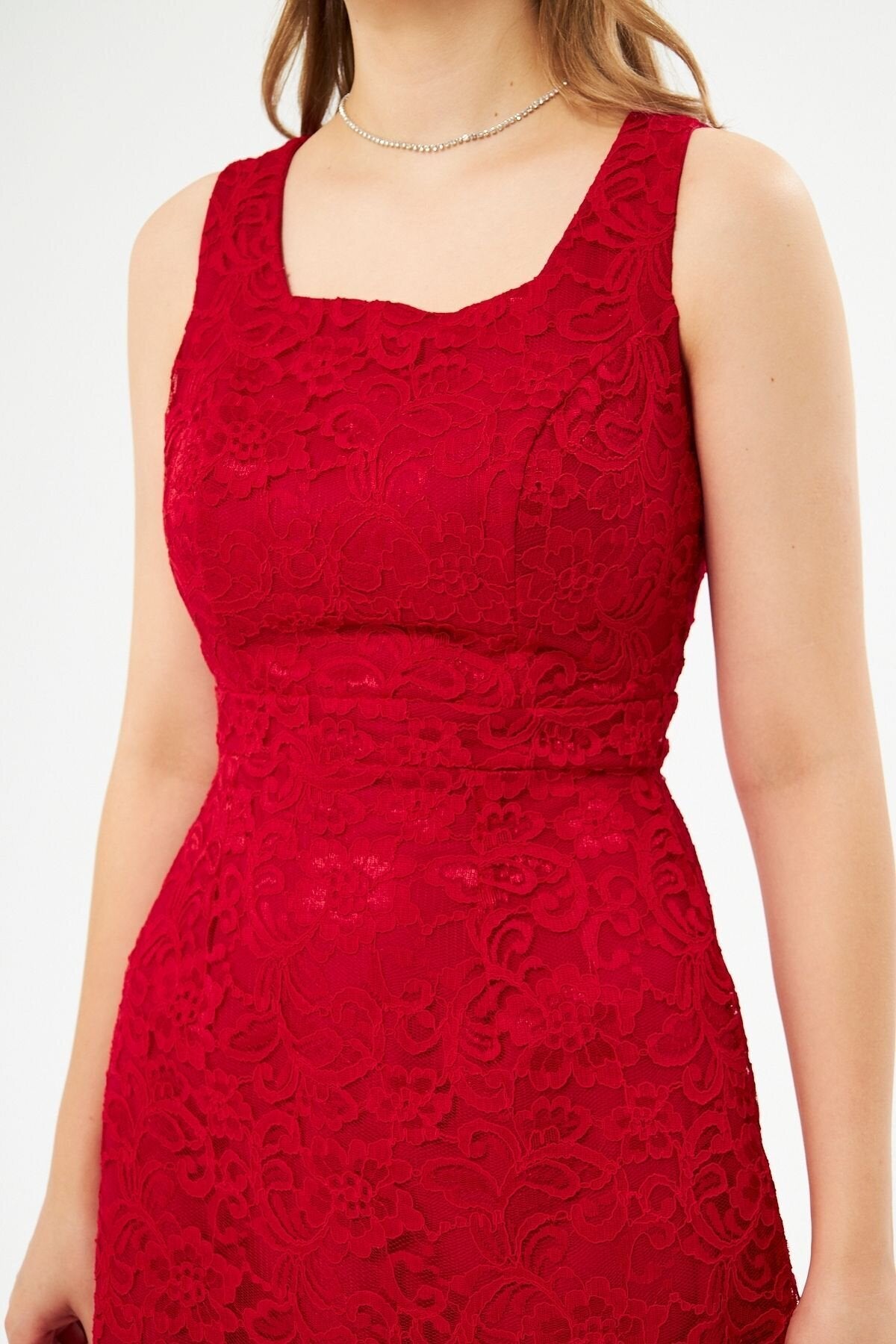 Material: Lace, Fabric Type: Lace, Sleeve Type: Strappy, Fit: Slim Fit, Pattern: Embroidered, Neckline Type: Square Neck, Color: Red, Product Detail: Lace Detailed, Product Type: Plain, Sleeve Length: Strappy, Collection: Prom/Bridesmaid, Lining Status: Lined, Length: Mini, Occasion: Wedding, Silhouette: Pencil, Weave Type: Lace, Pocket: No Pockets, Additional Feature: Opaque, Belt/Sash Status: No Belt, Closure Type: Zipper, Sustainability Detail: Yes, Persona: Fashion Forward, Origin: Turkey, Box Status: No Box
