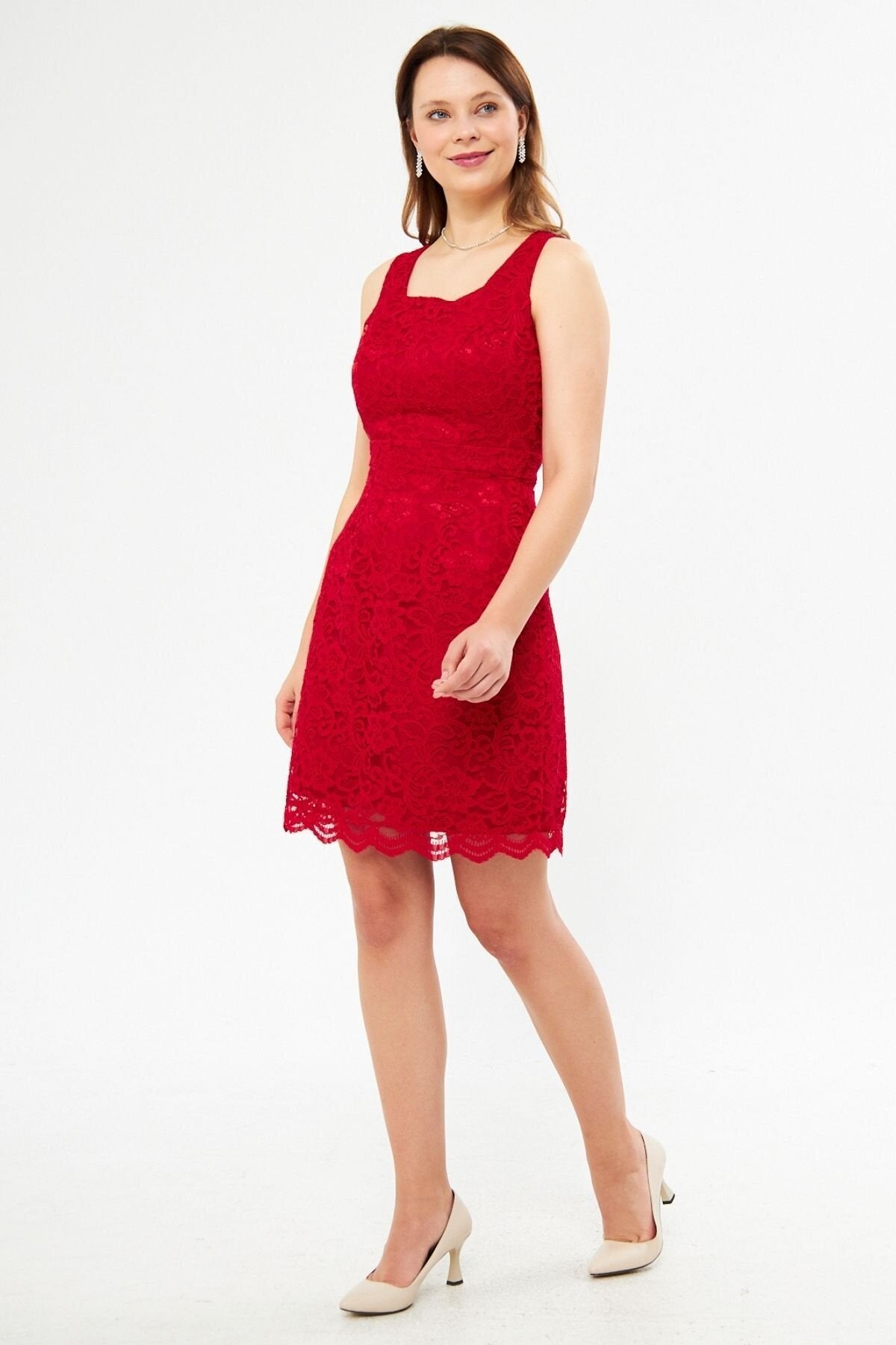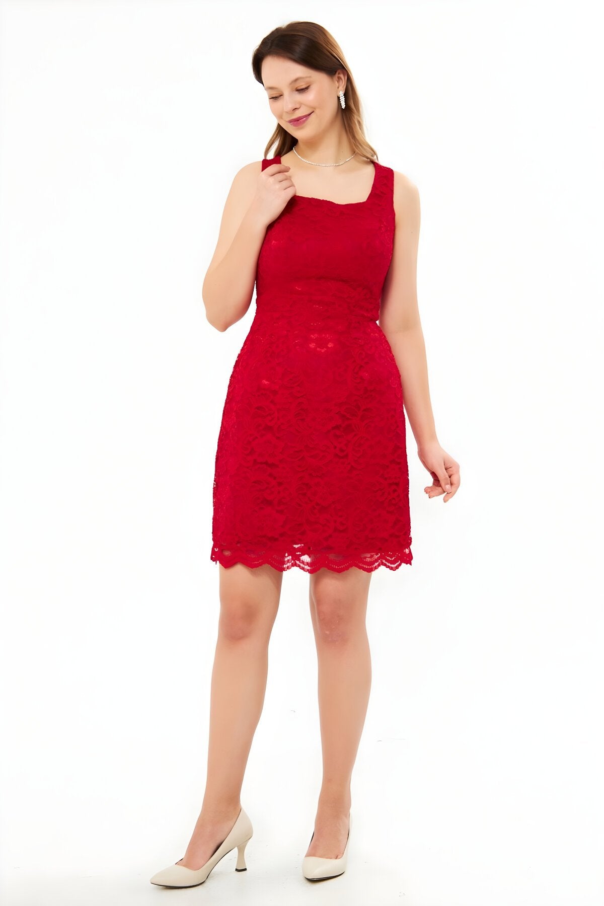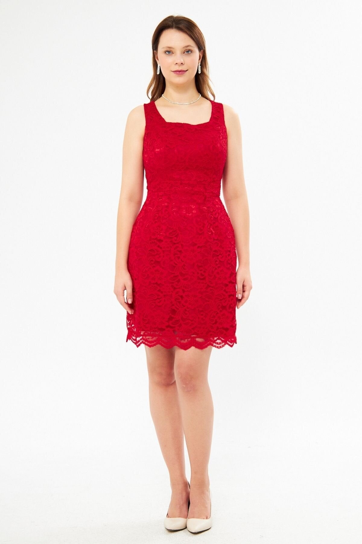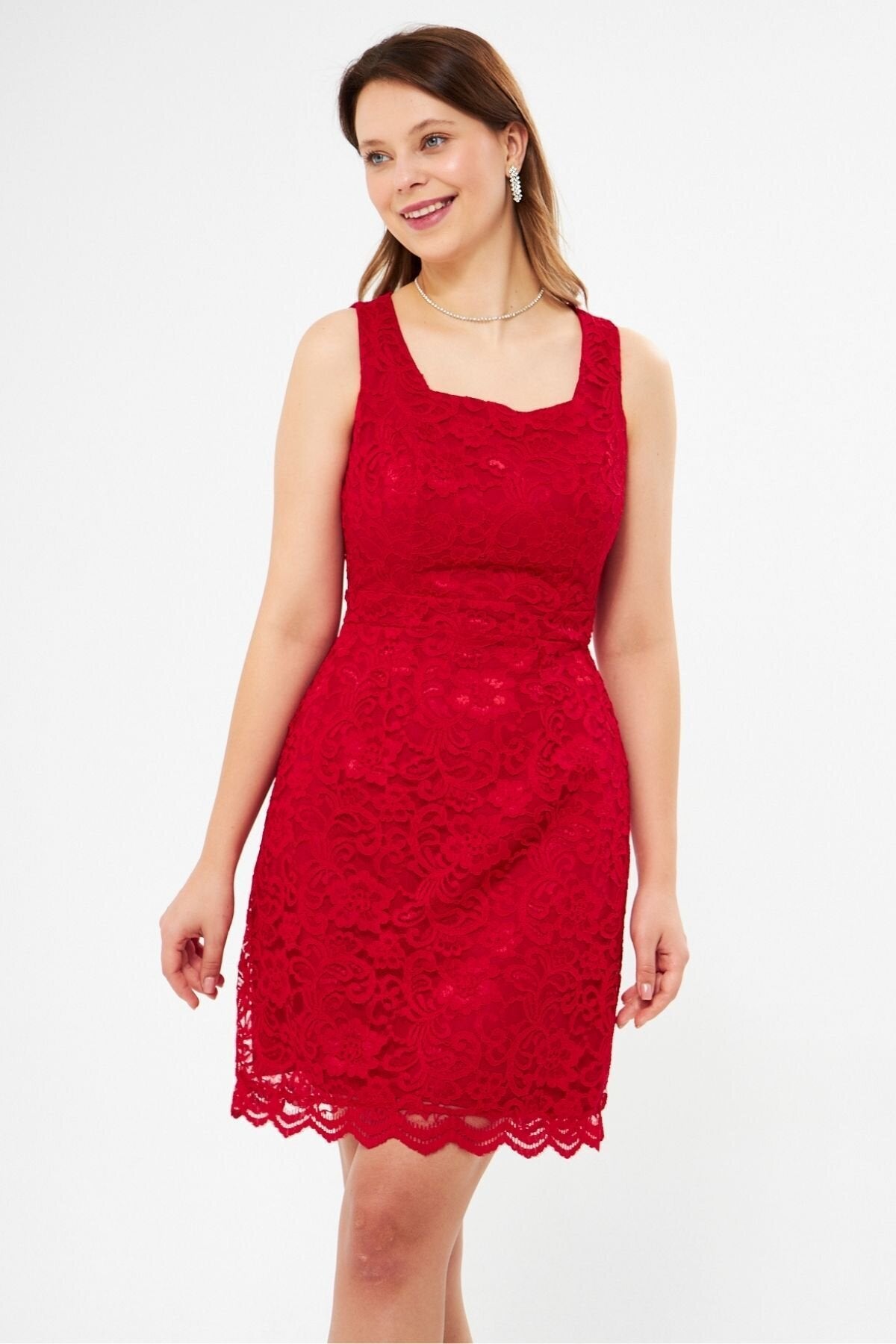 Material: Lace, Fabric Type: Lace, Sleeve Type: Strappy, Fit: Slim Fit, Pattern: Embroidered, Neckline Type: Square Neck, Color: Red, Product Detail: Lace Detailed, Product Type: Plain, Sleeve Length: Strappy, Collection: Prom/Bridesmaid, Lining Status: Lined, Length: Mini, Occasion: Wedding, Silhouette: Pencil, Weave Type: Lace, Pocket: No Pockets, Additional Feature: Opaque, Belt/Sash Status: No Belt, Closure Type: Zipper, Sustainability Detail: Yes, Persona: Fashion Forward, Origin: Turkey, Box Status: No Box