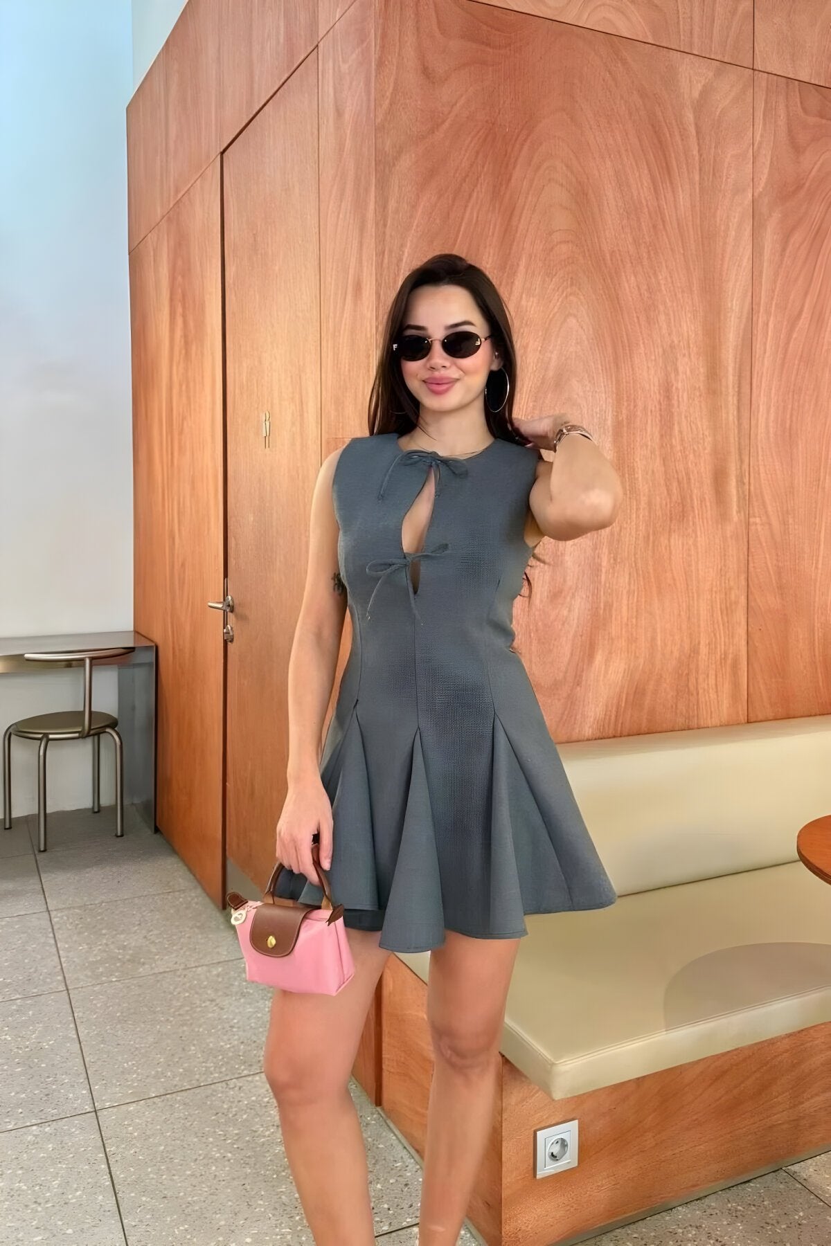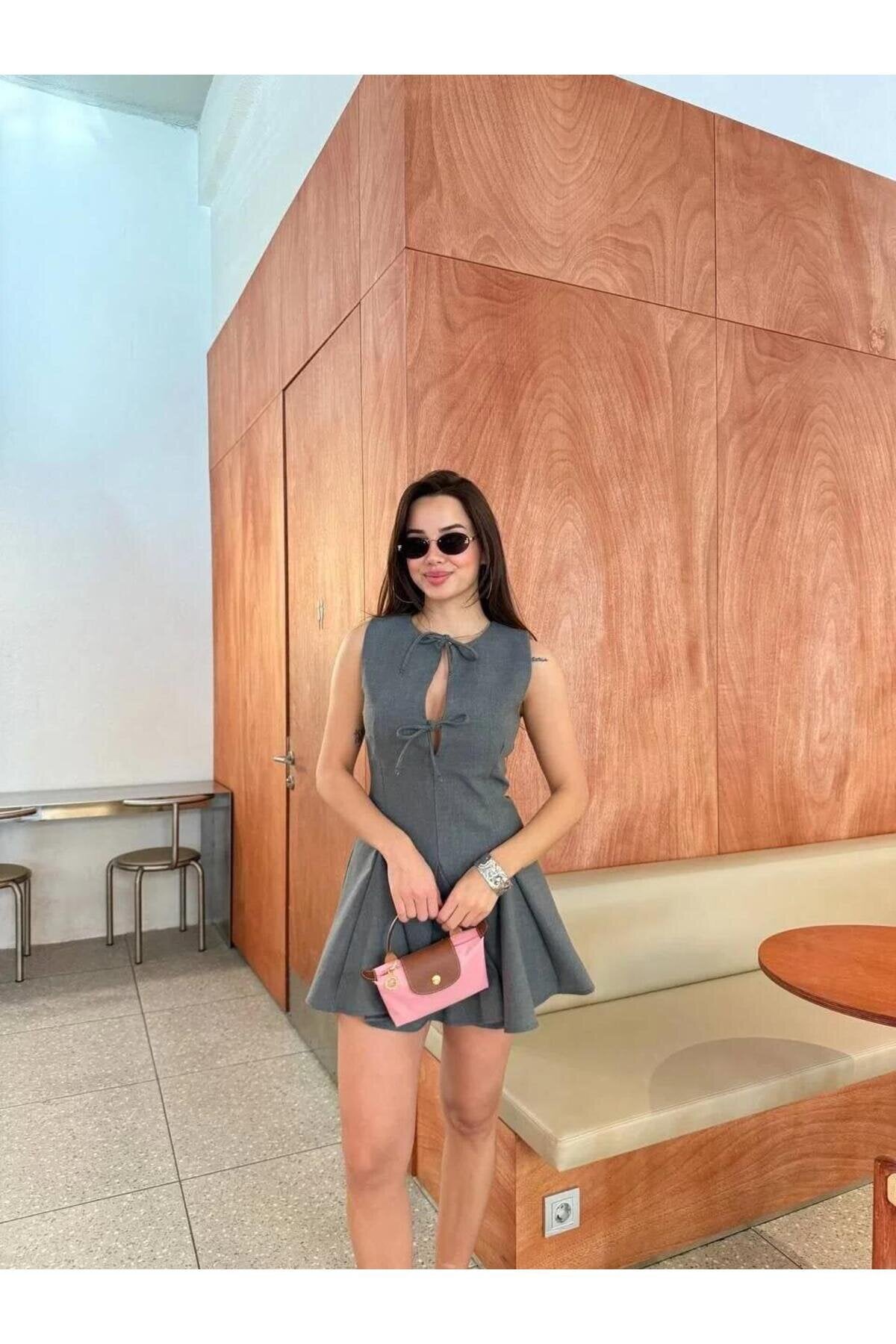 Mini Lacing Detail Dress - Anthracite