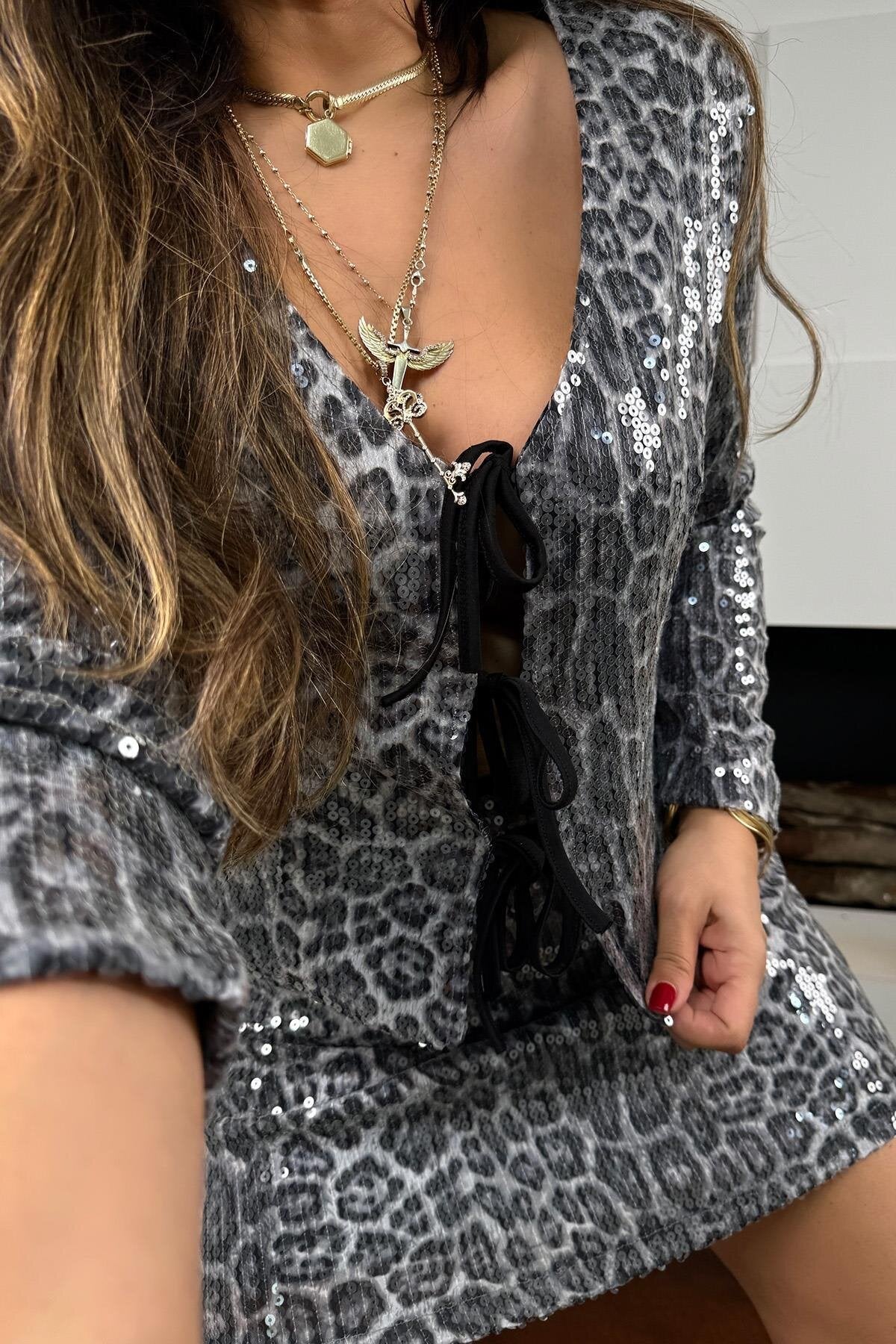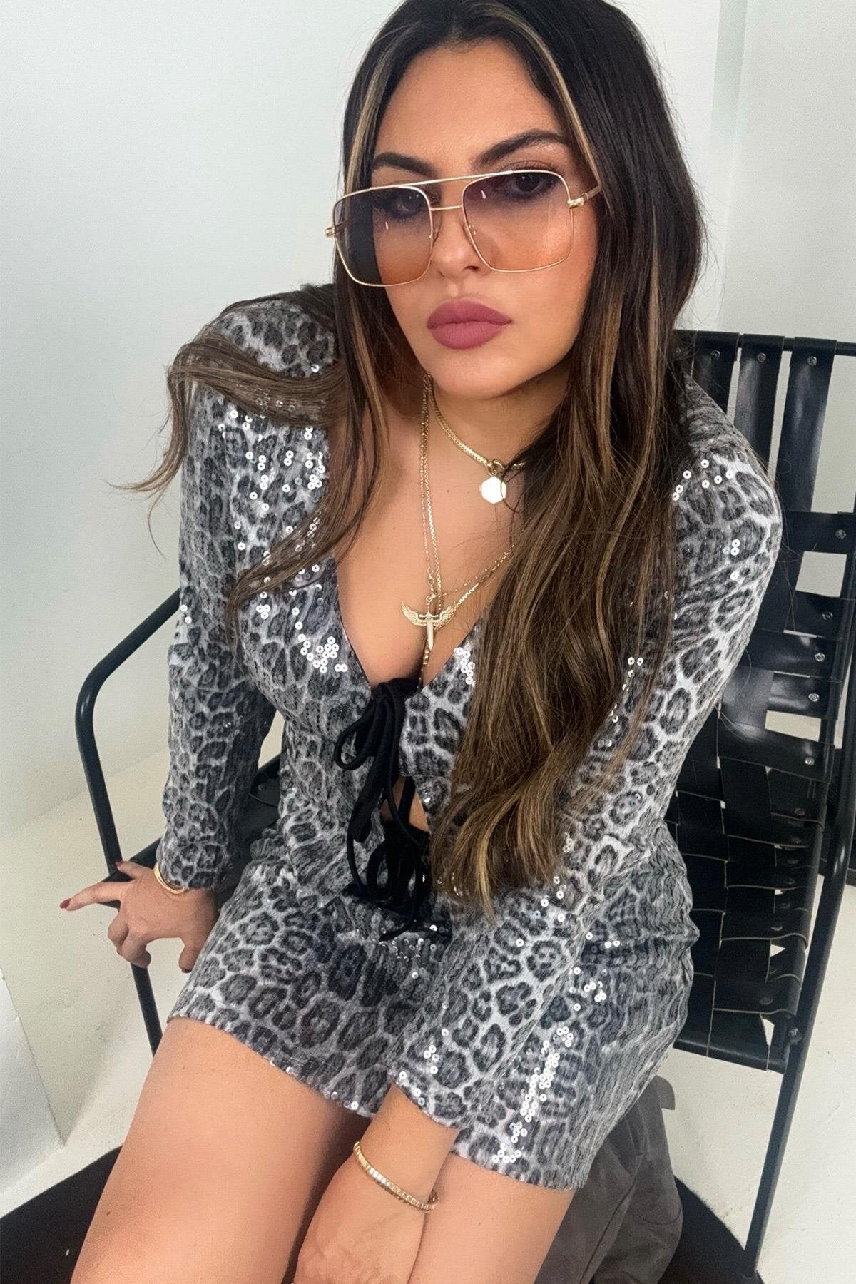 Mini Leopard Sequined Skirt - Gray