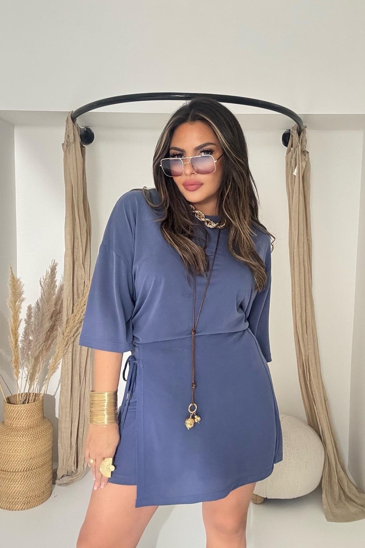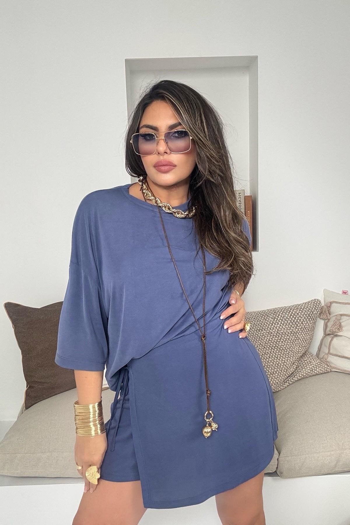 Mini Modal Flap-Detail Skort - Indigo Blue