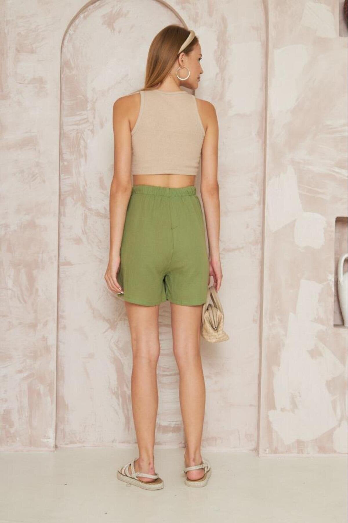 Mini Muslin Cotton Soft Textured Side Tie Skort - Khaki