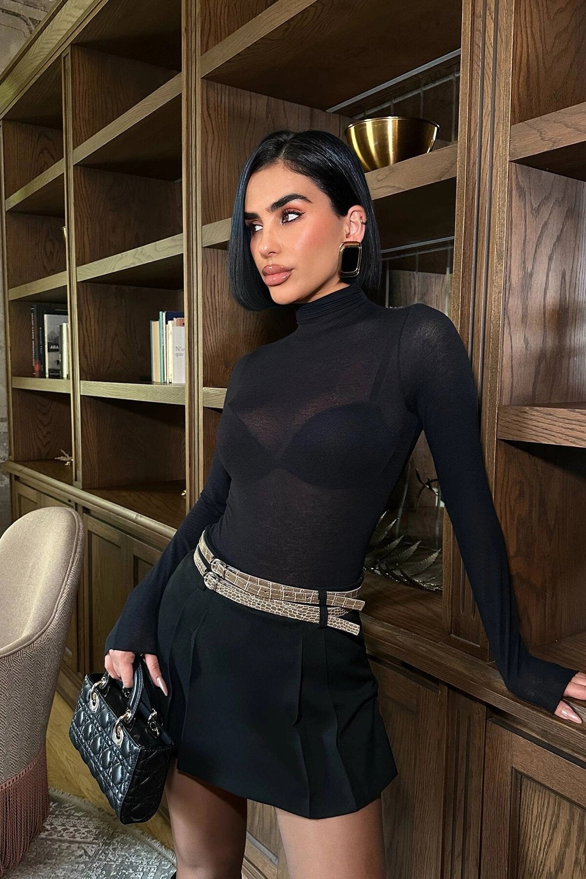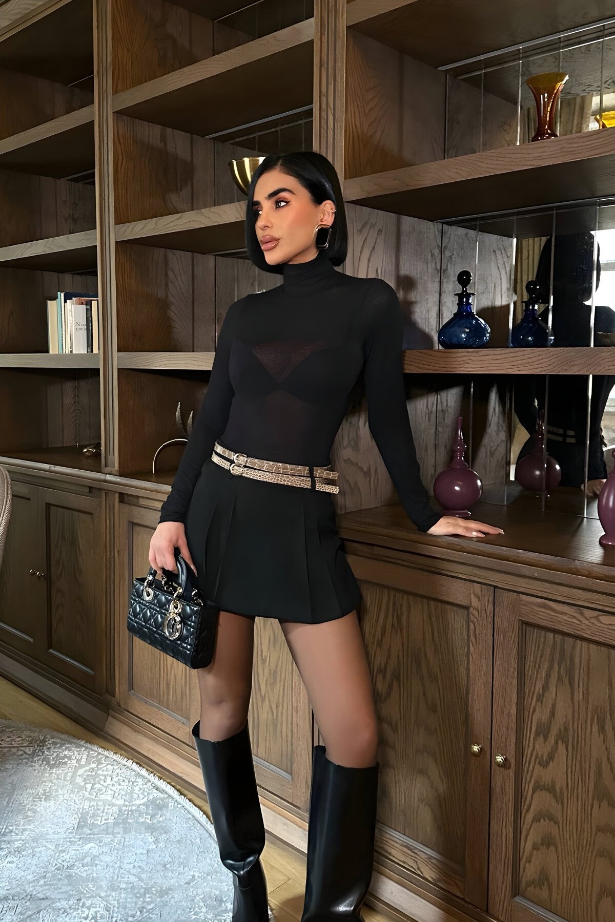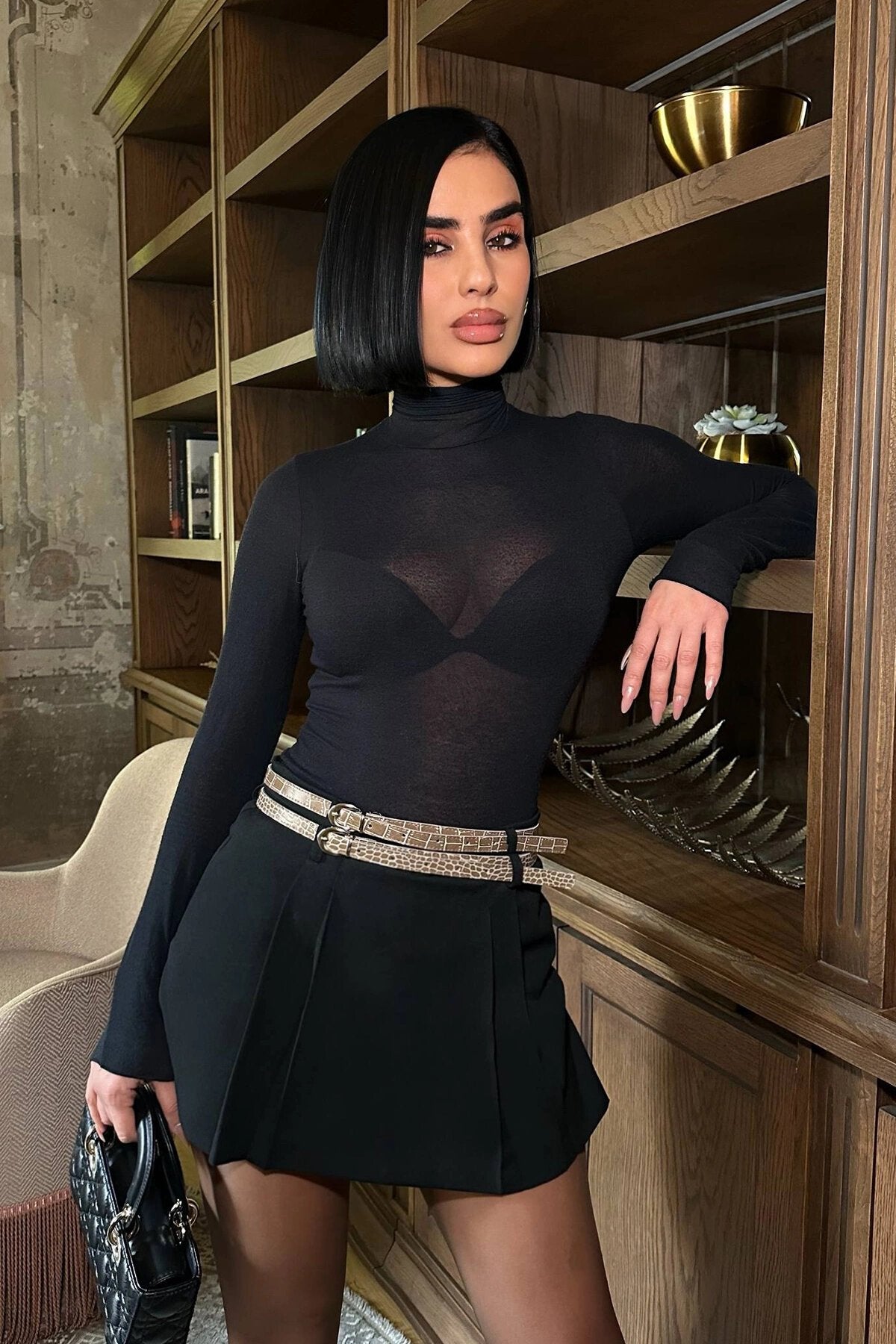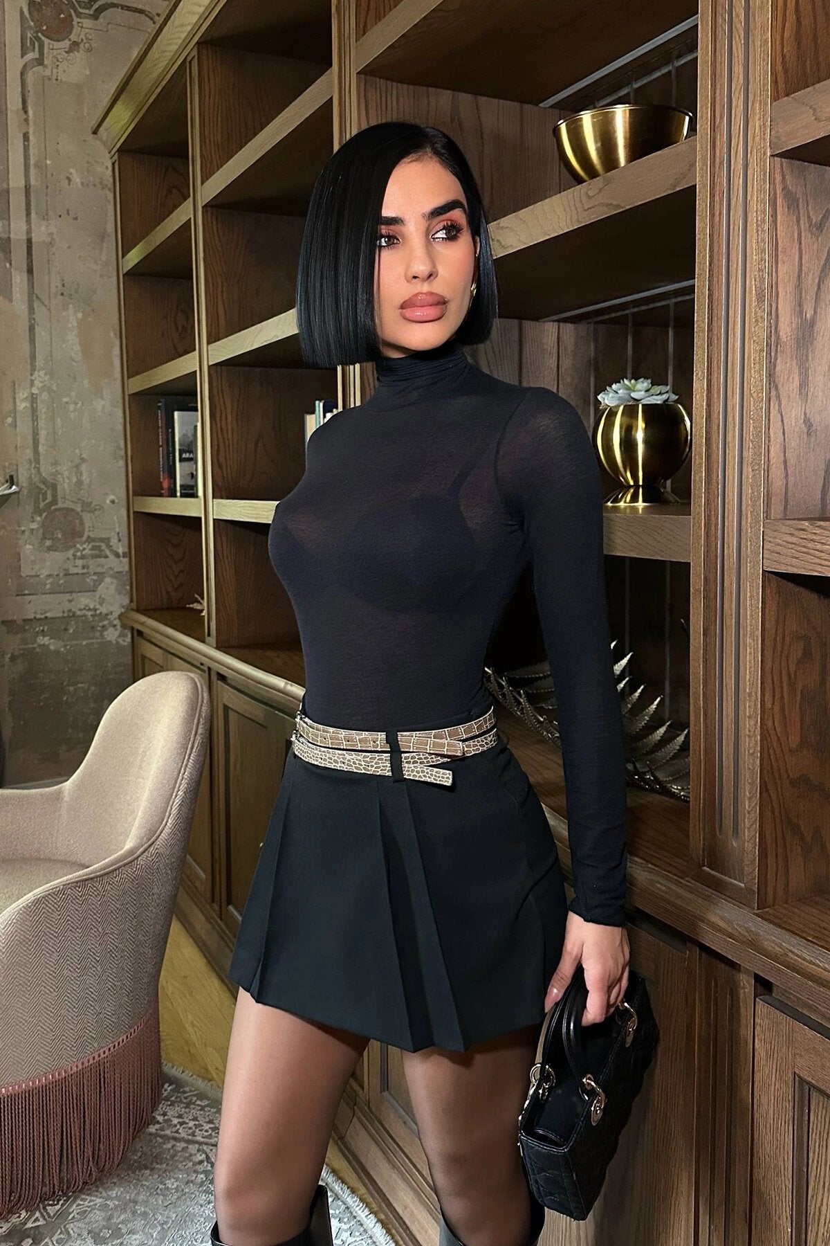 Mini Pleated Basic Skirt with Shorts & Belt Detail - Black
