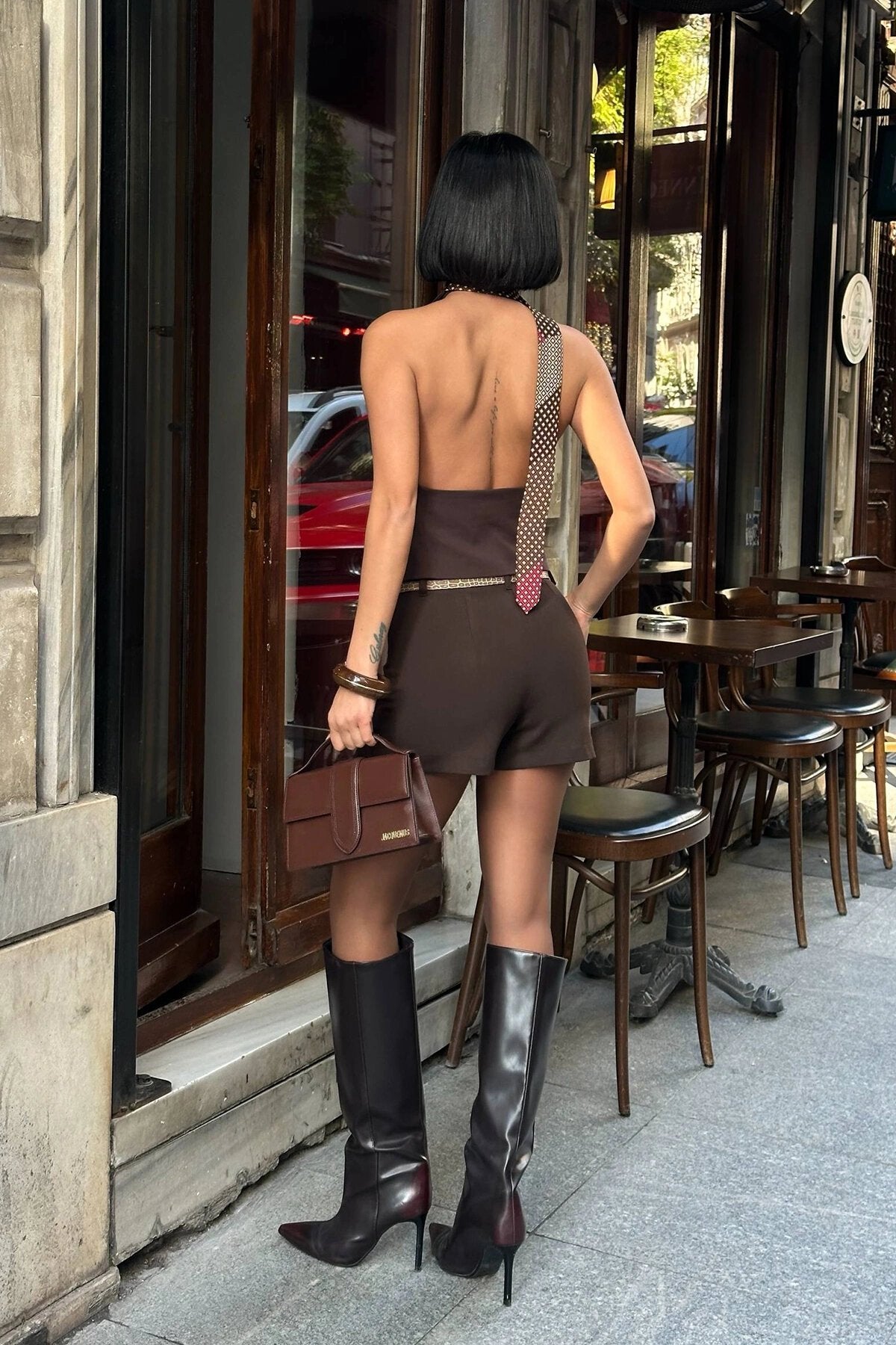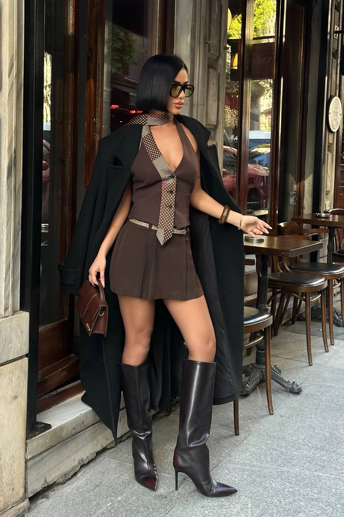 Mini Pleated Skort with Belt Detail Skirt - Brown