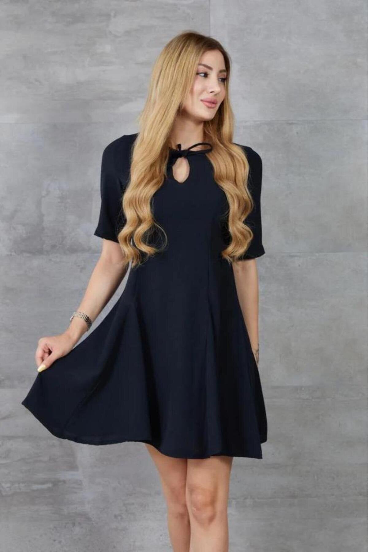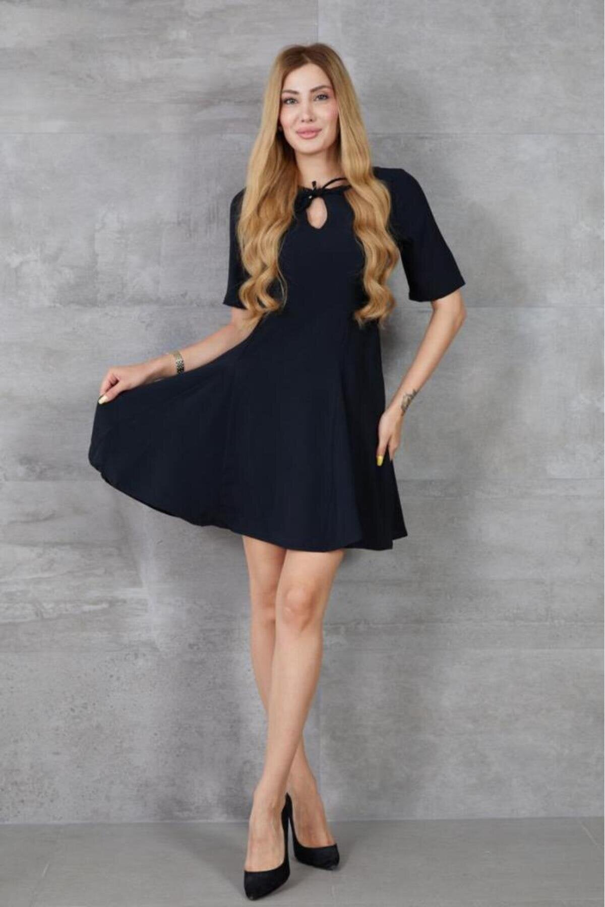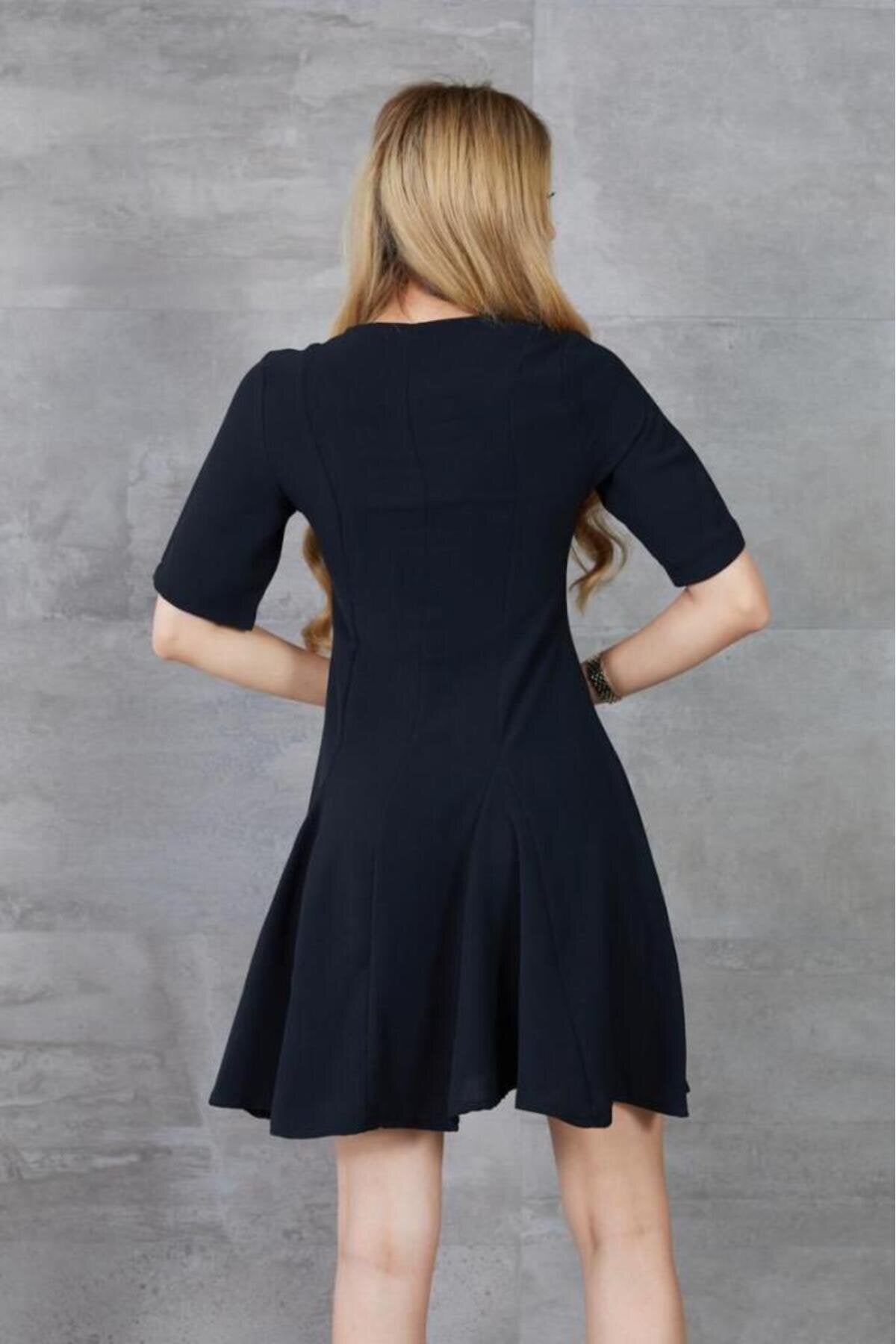 Mini Short-Sleeved Ruffled Summer Dress - Black