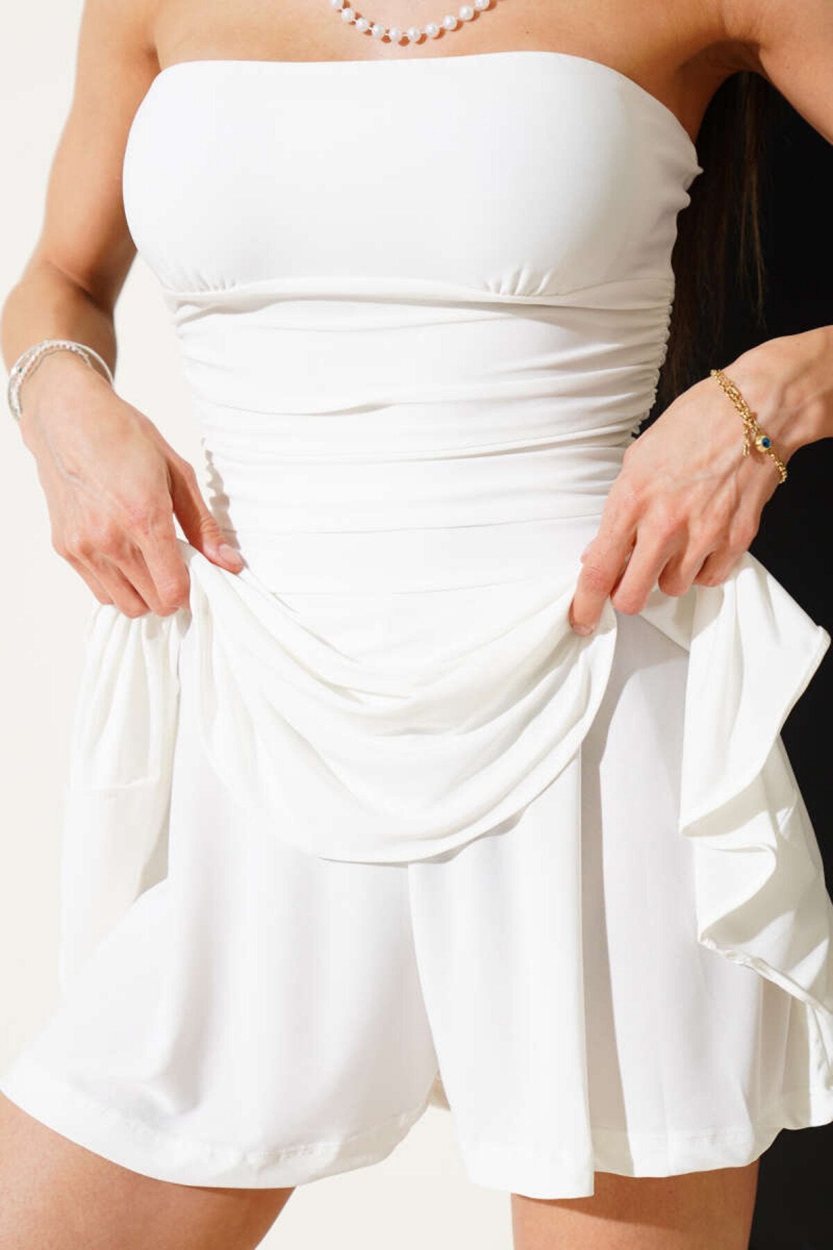 Mini Strapless Sandy Ruched Dress with Shorts - White
