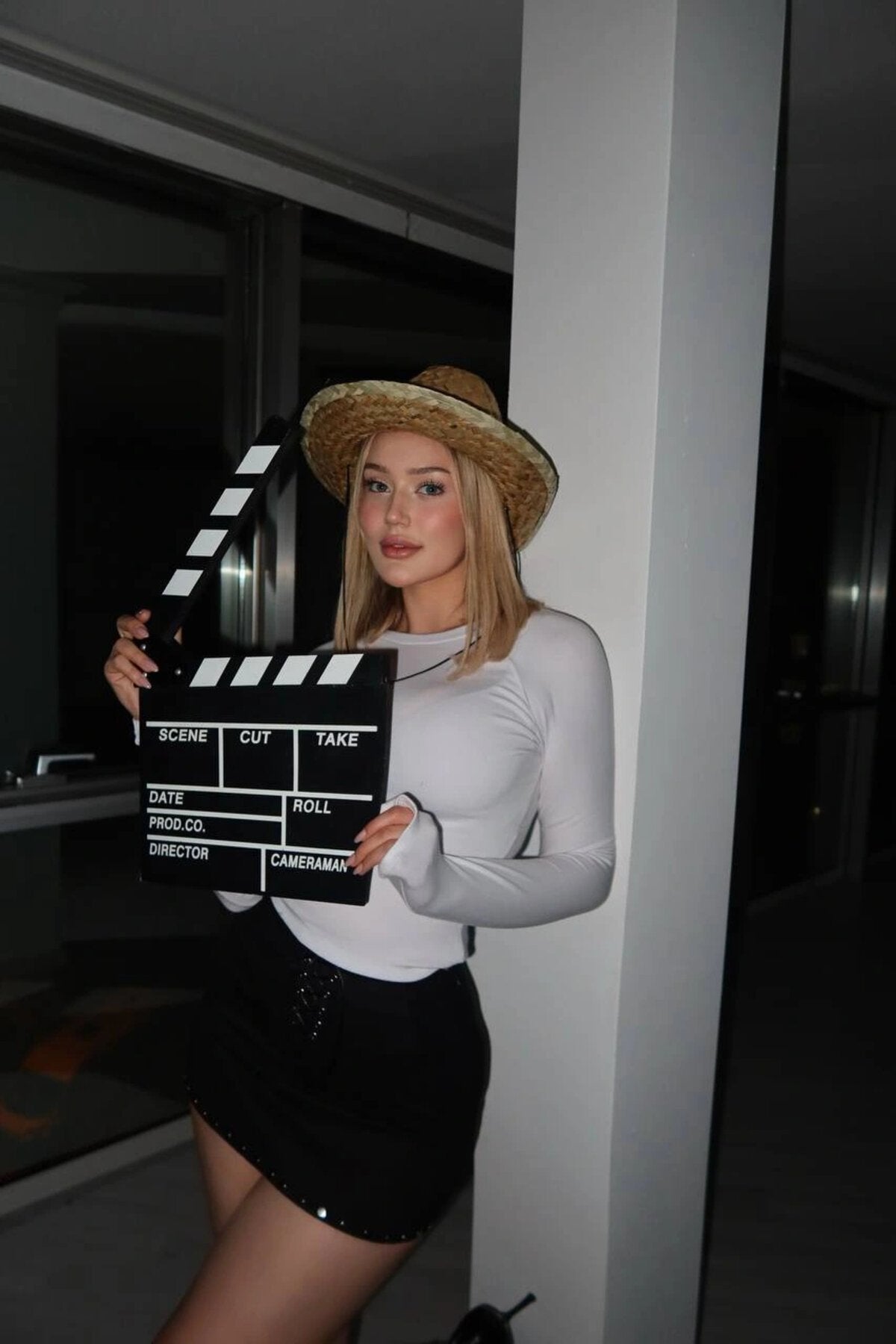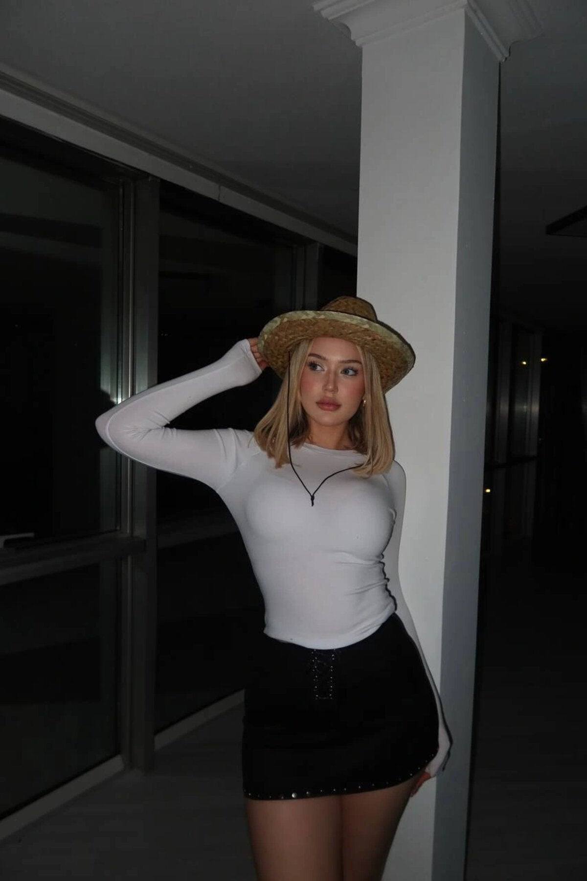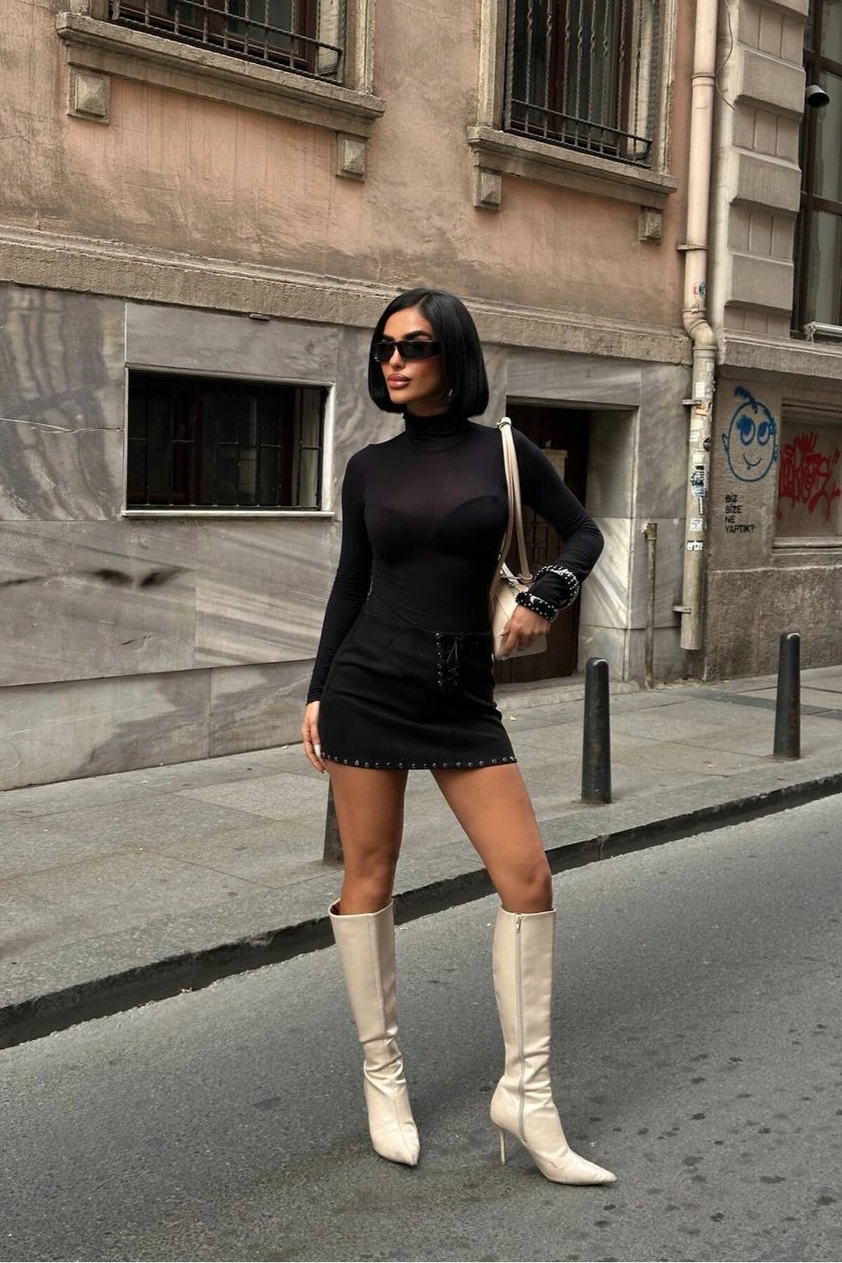 Mini Suede Eyelet Detail Skirt - Black