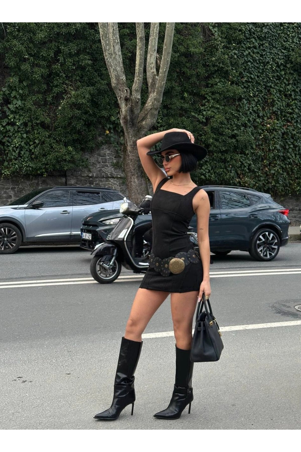 The Mini Suede Square Neck Strapped Dress is the ultimate fusion of modern minimalism and luxe texture. Its sleek black hue and velvety finish create a striking silhouette that feels both grounded and high-fashion, making it an essential piece for any contemporary wardrobe.