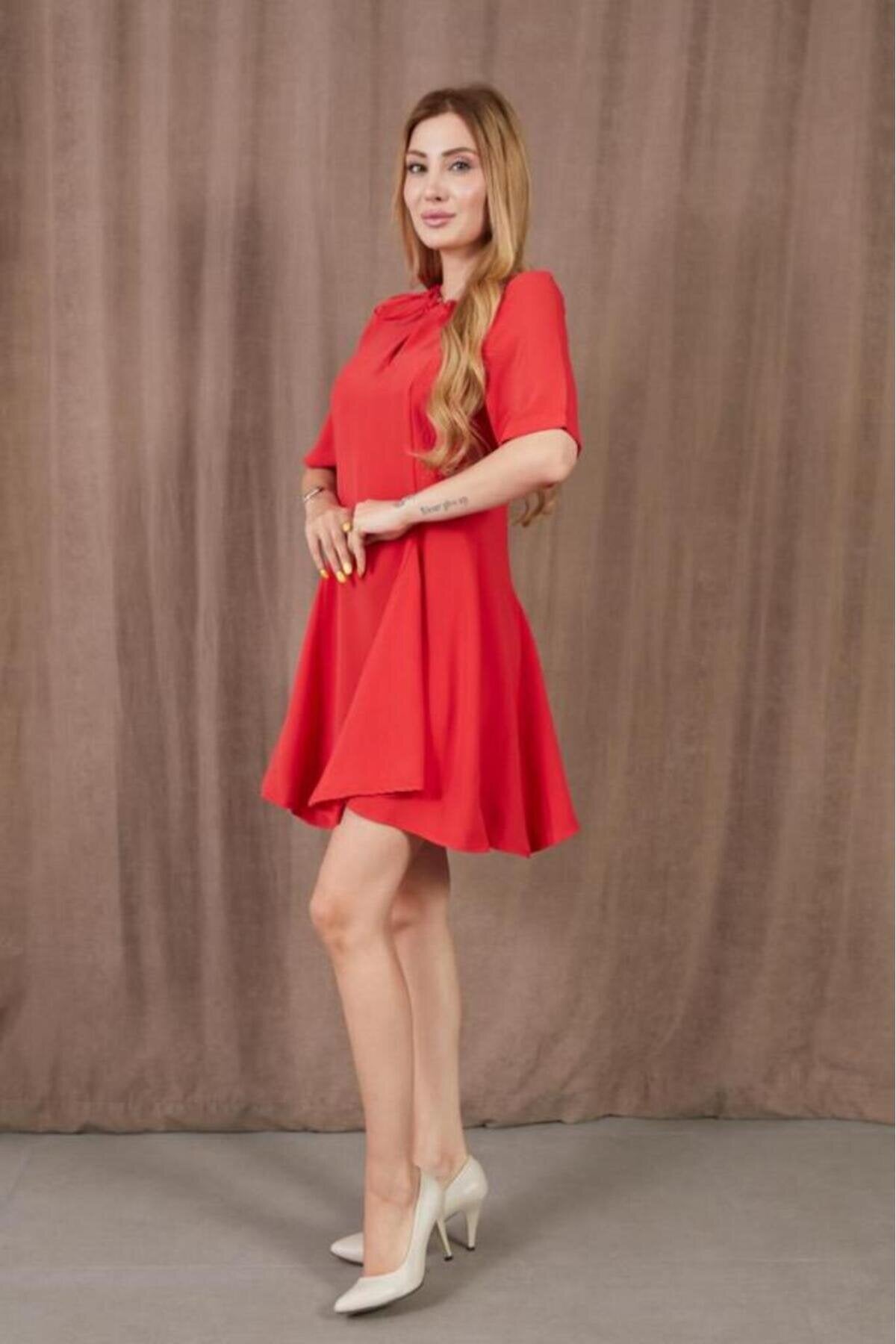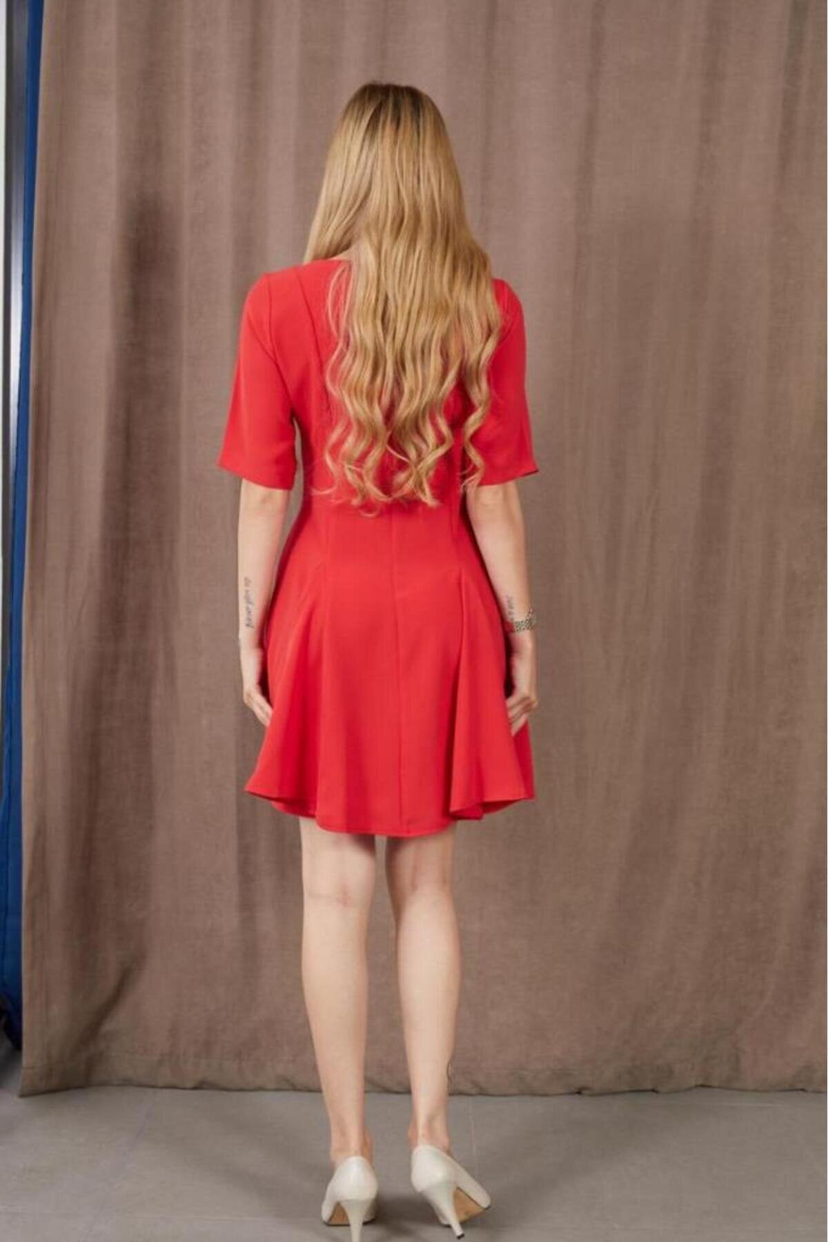 Mini Summer Short-Sleeved Flounced Dress - Red
