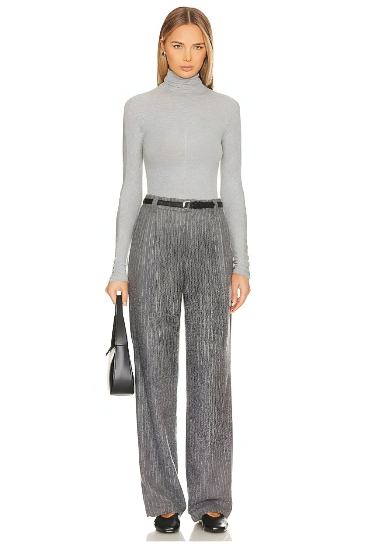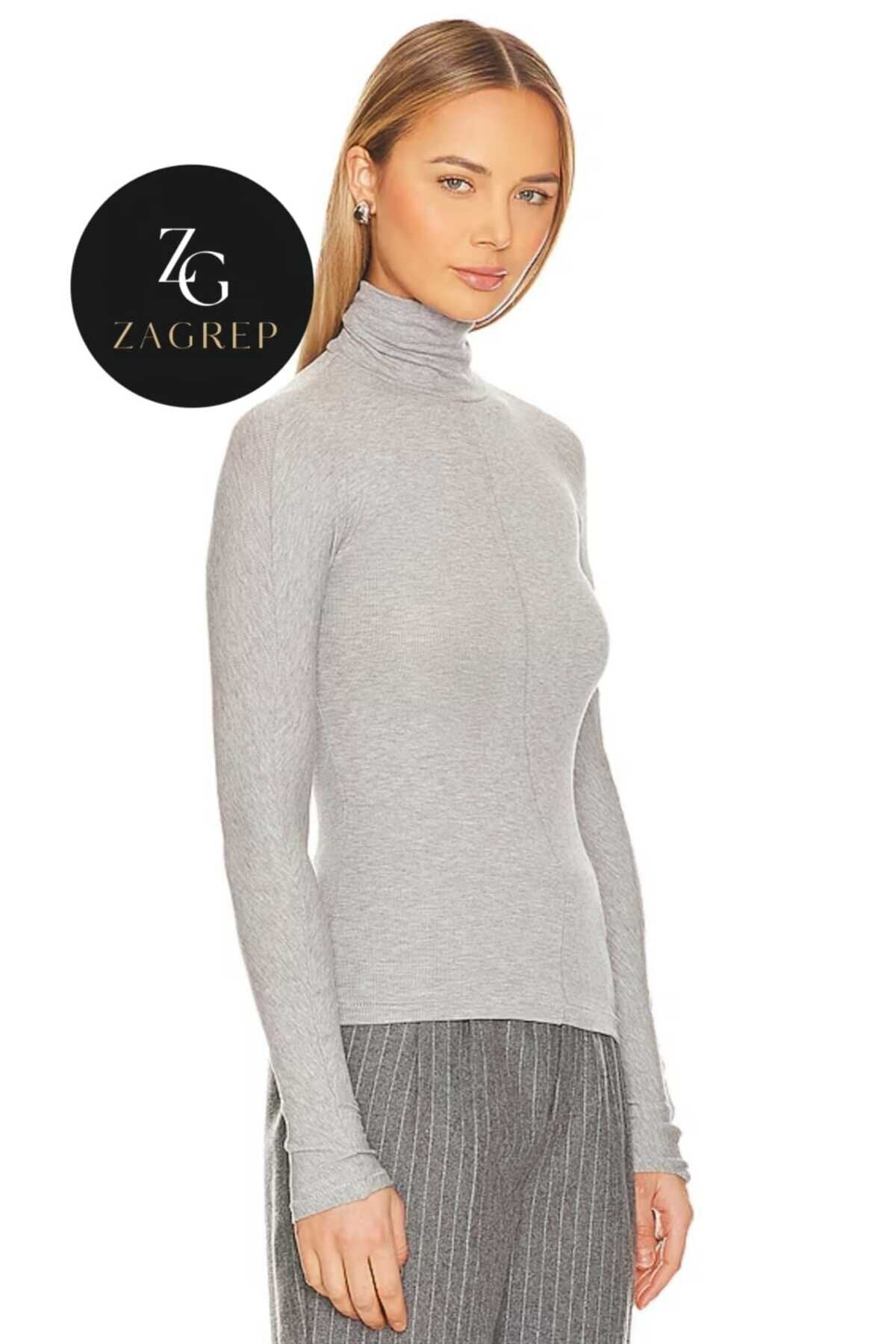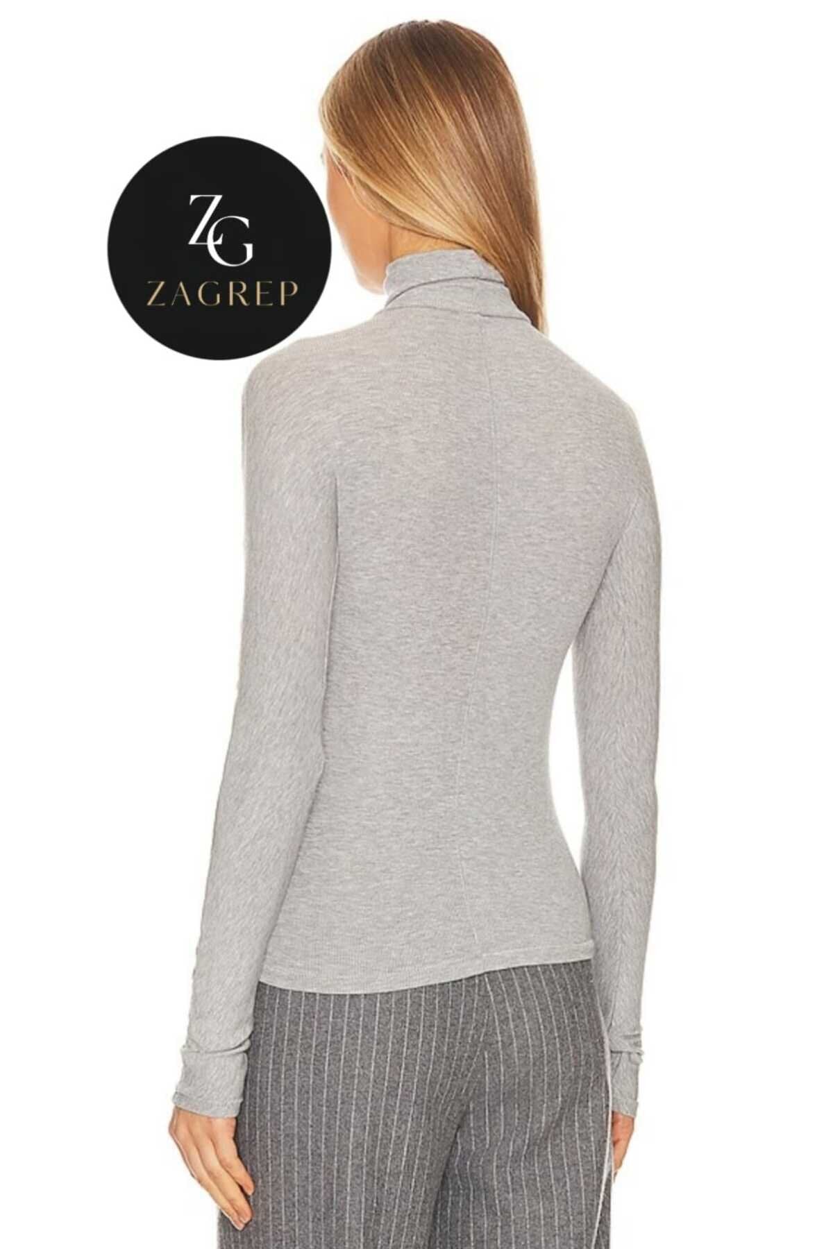 Opaque Silk Jersey Turtleneck Blouse - Grey