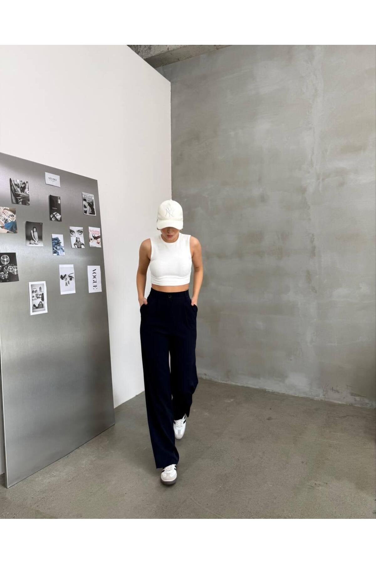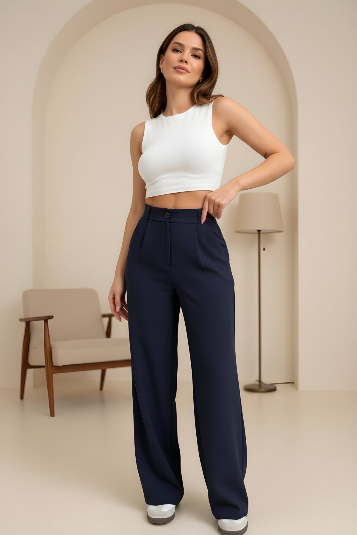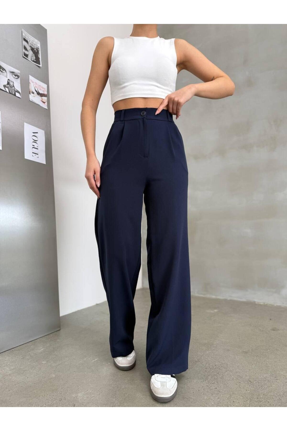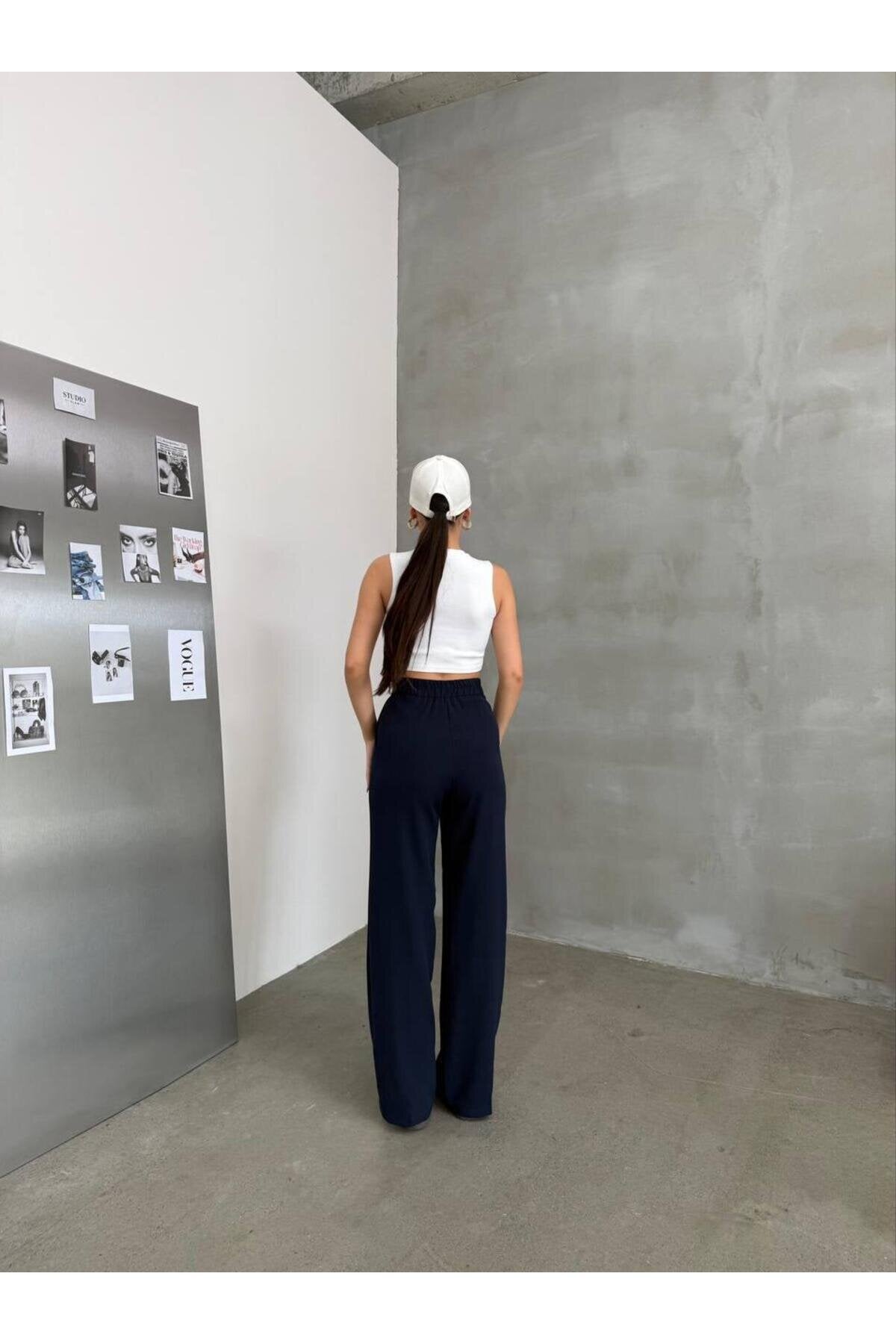 Palazzo Double Knit Elasticated Back Pants - Navy Blue