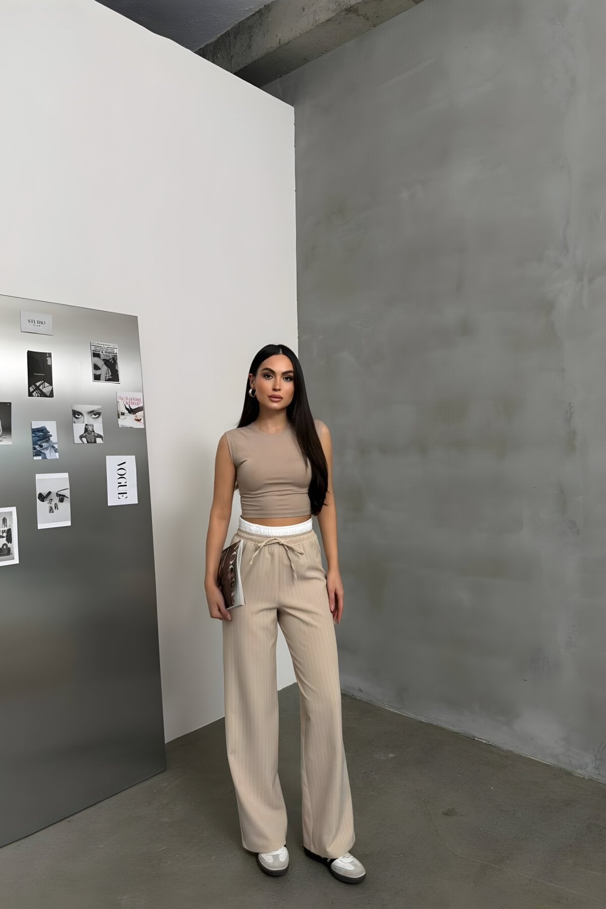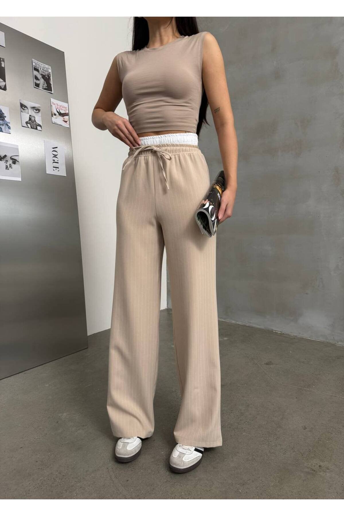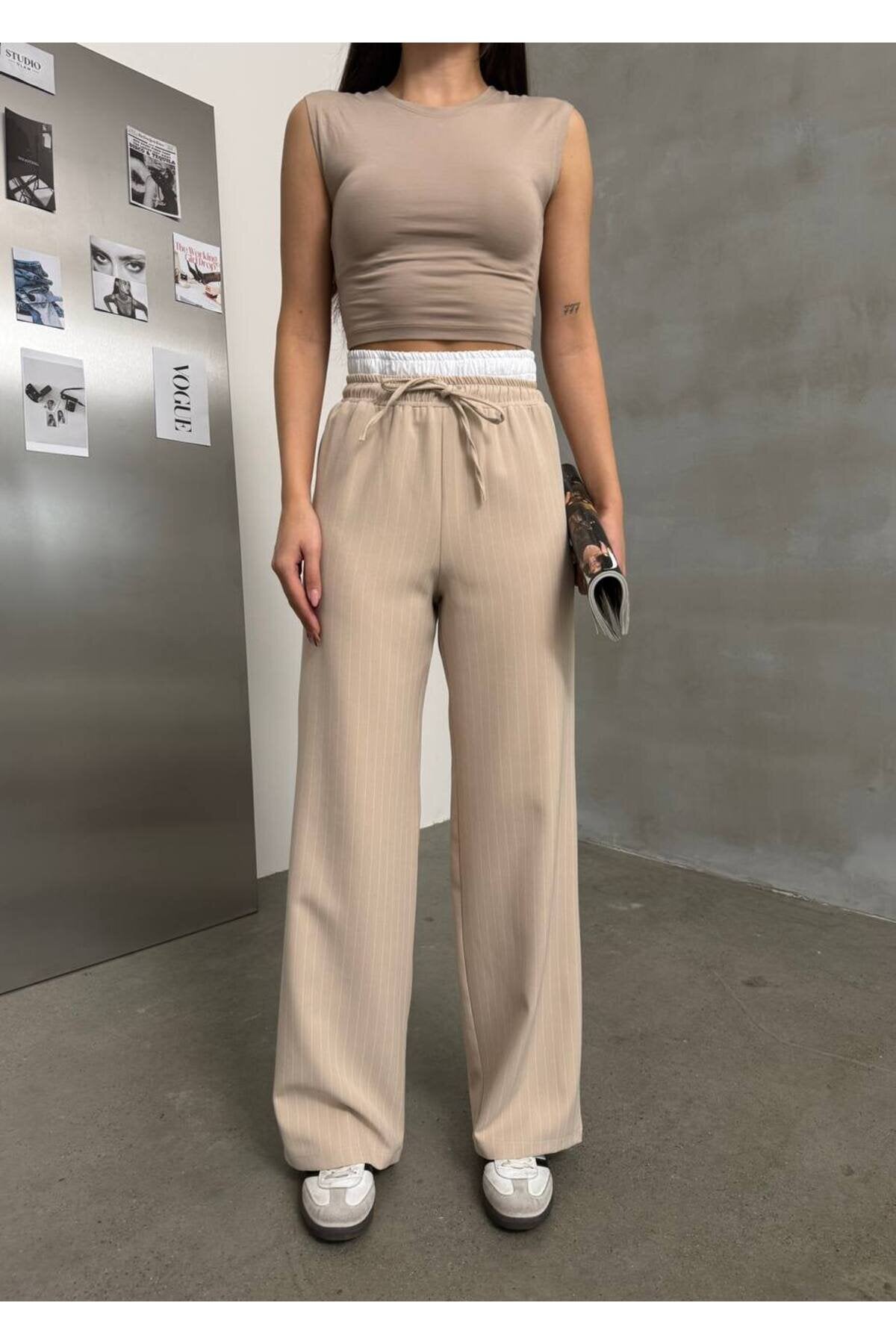 Palazzo Trimmed Lace-up Pants - Beige
