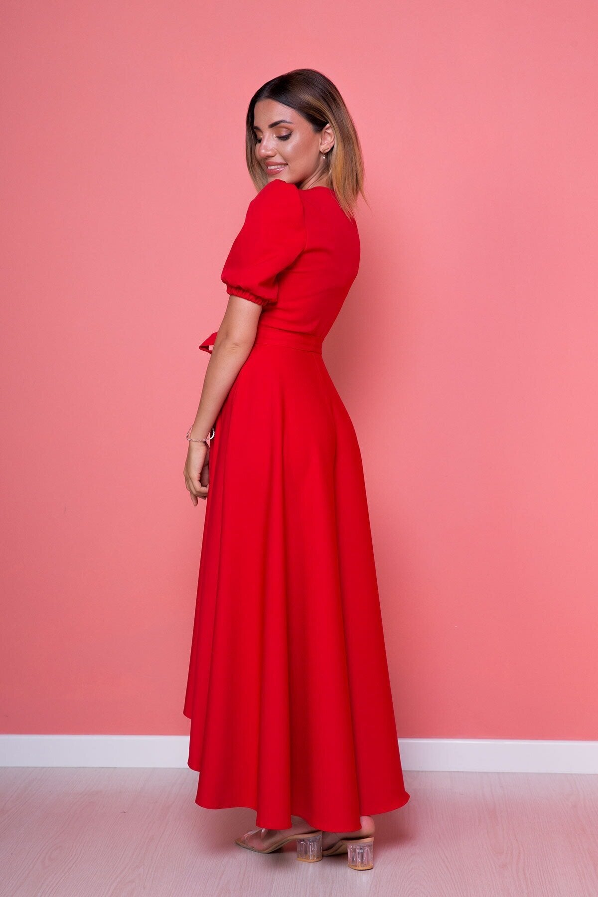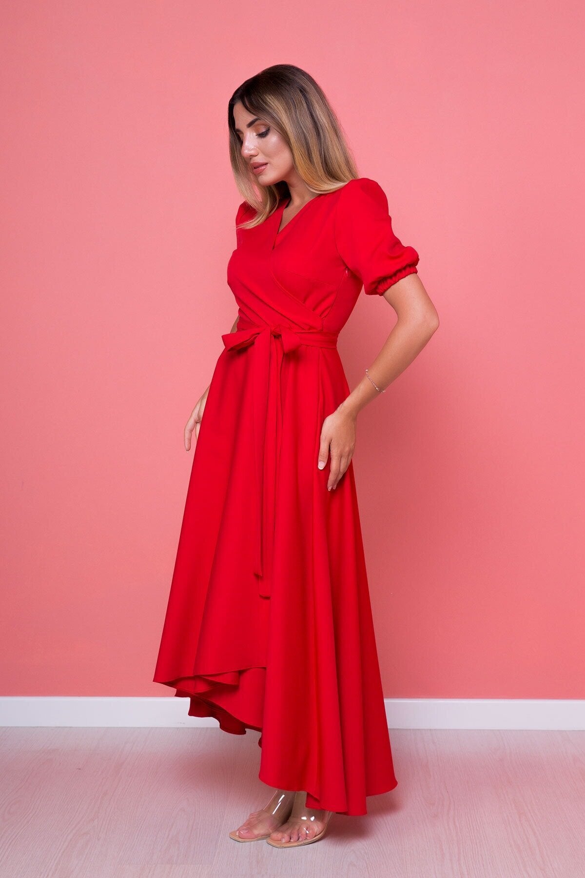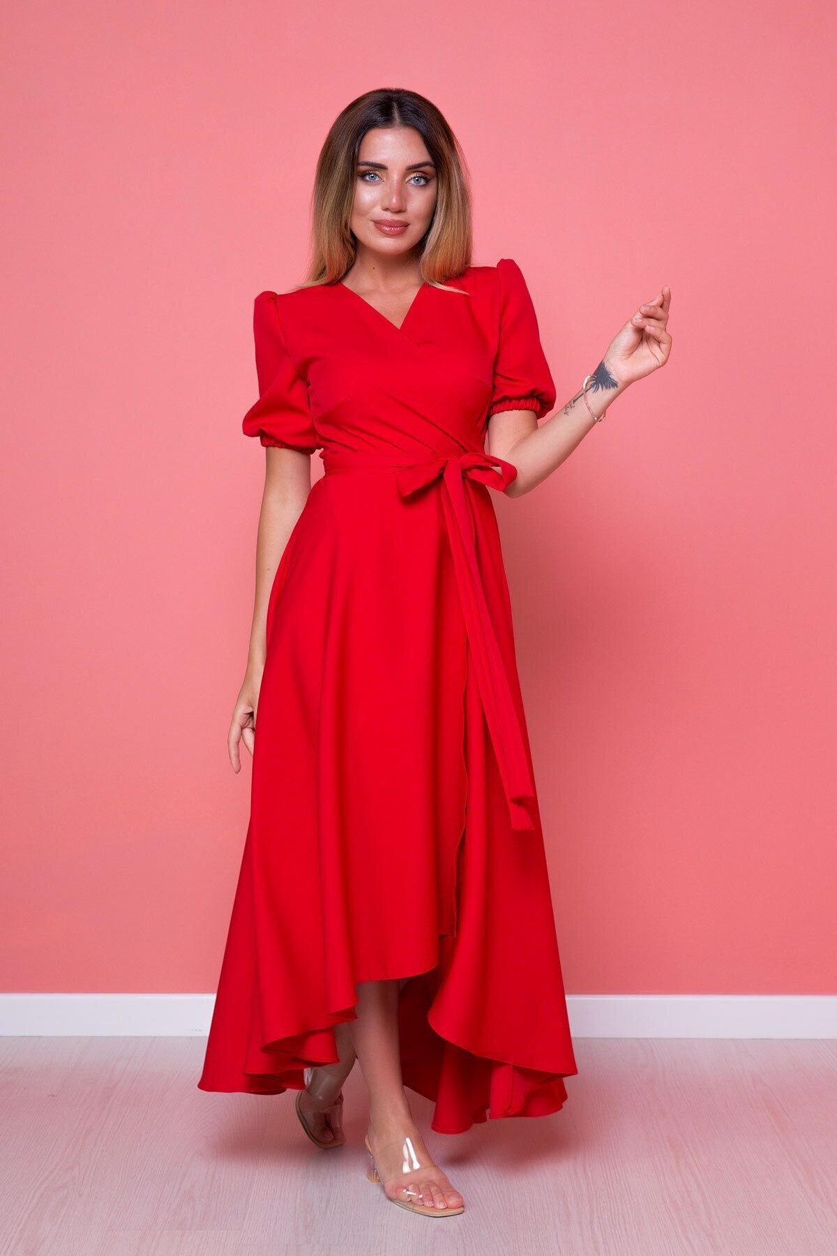 Plus Size Midi Asymmetrical Cut Dress - Red