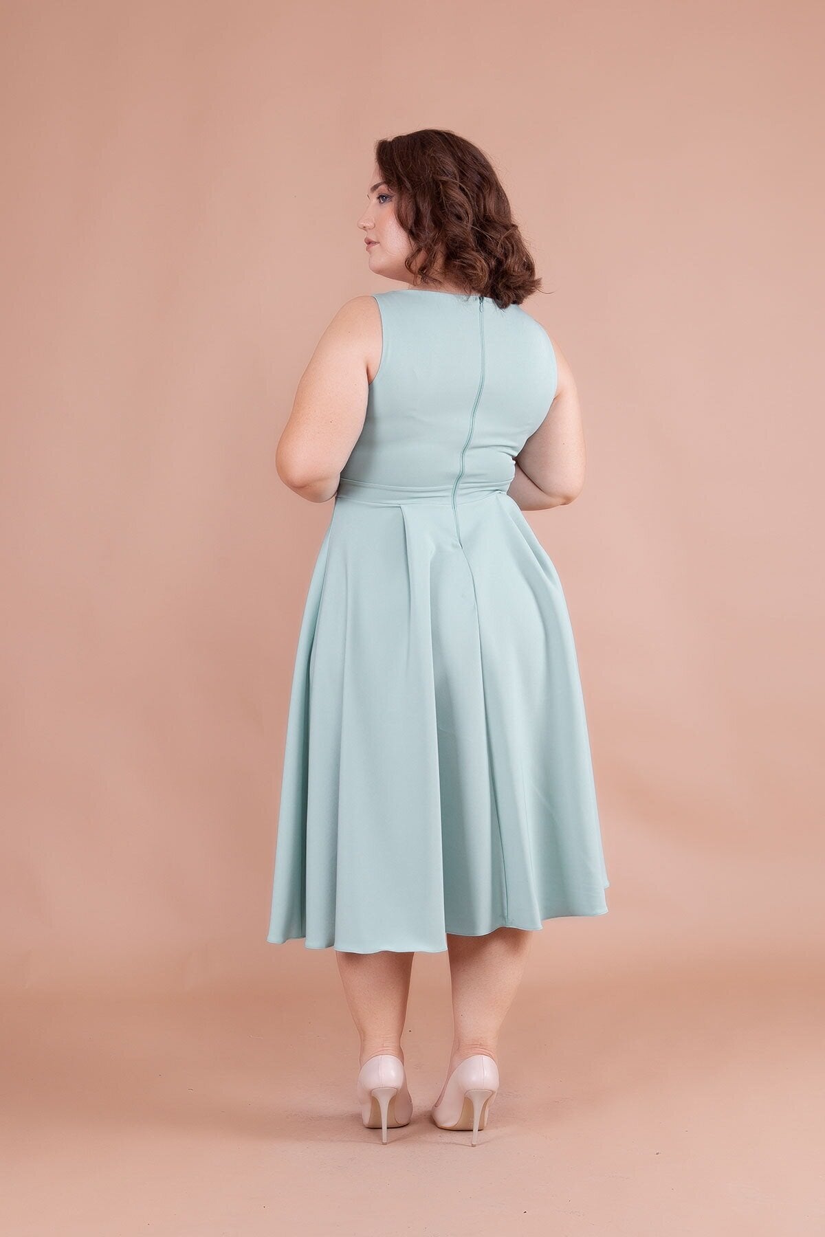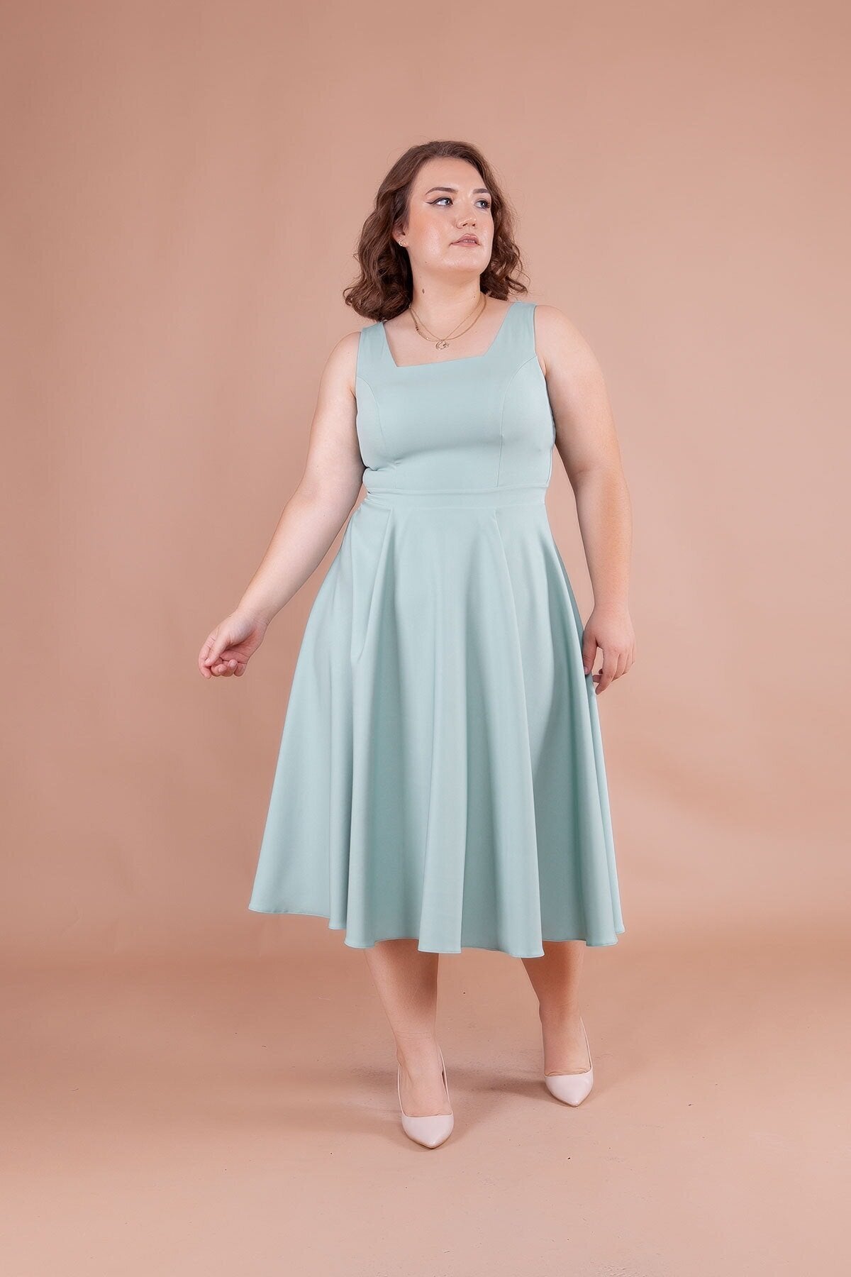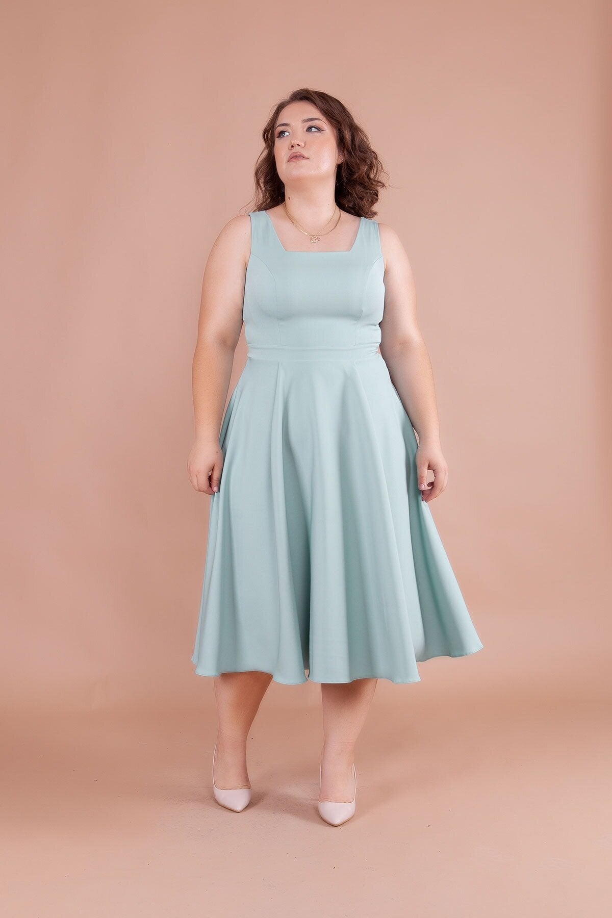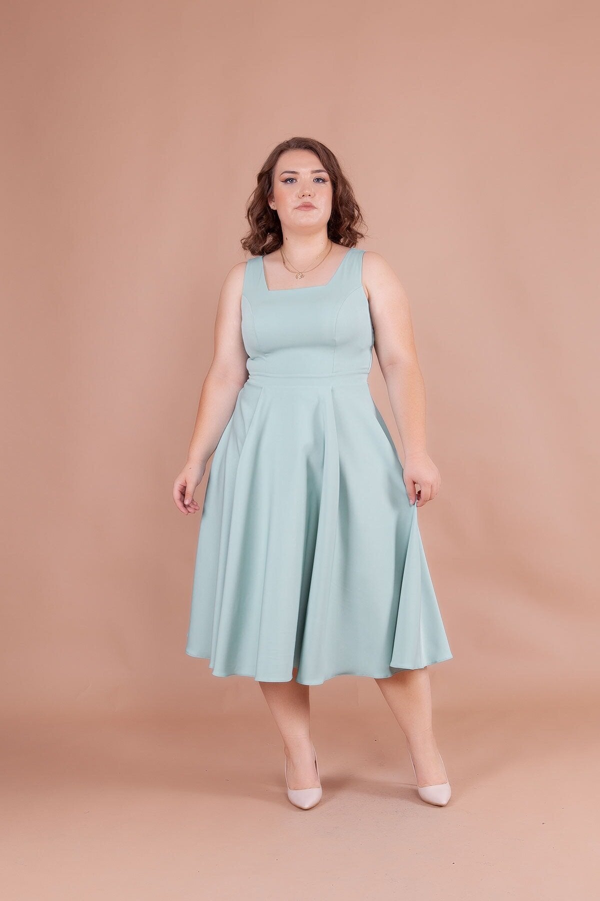 Plus Size Midi Square Neck Dress - Mint Green