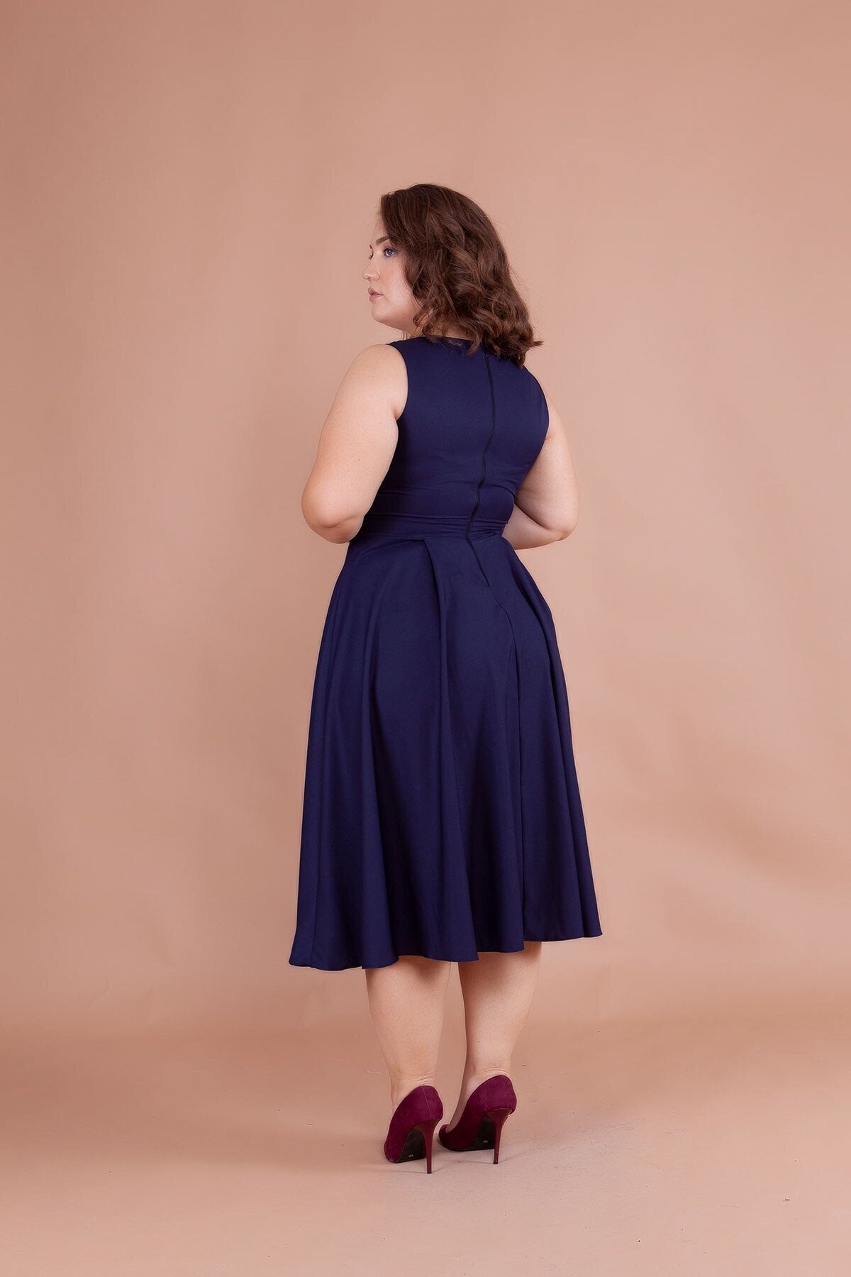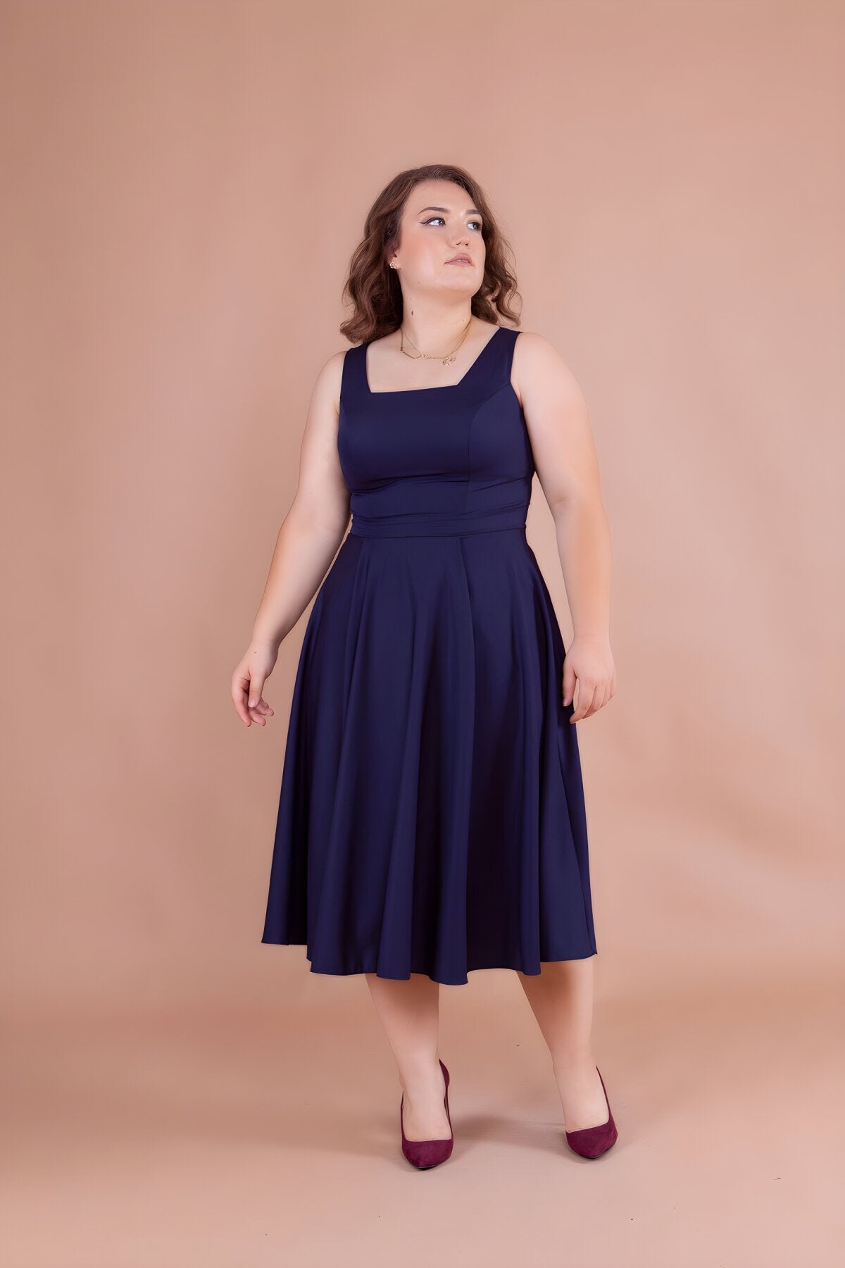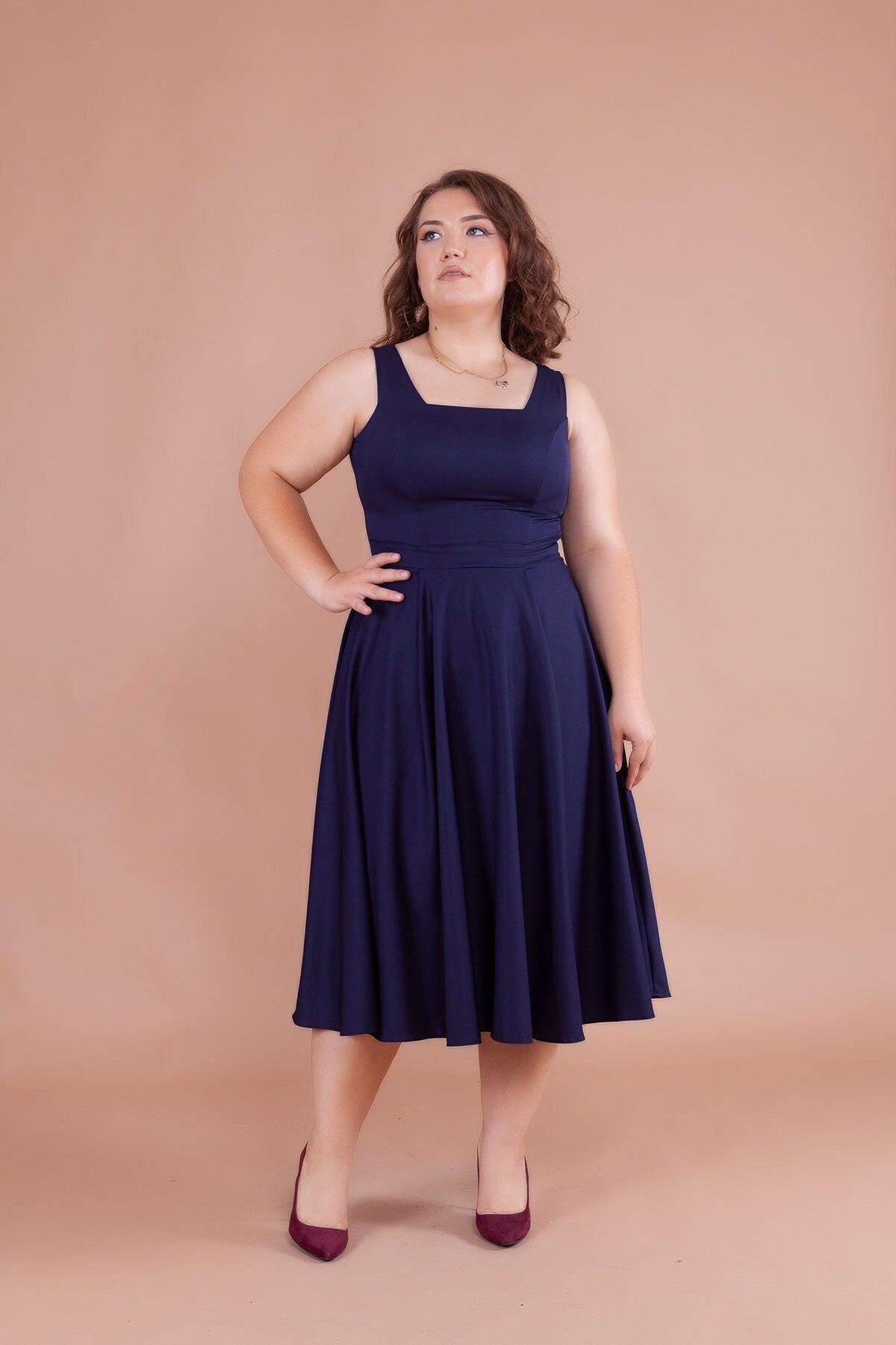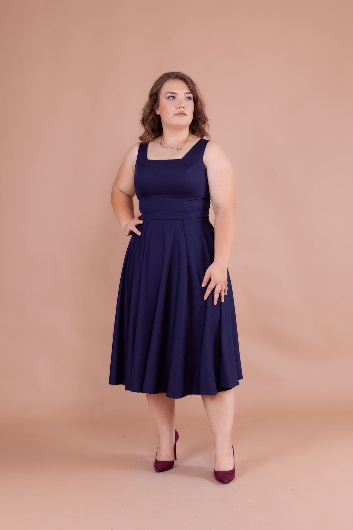 Plus Size Midi Strappy Square Neck Dress - Navy