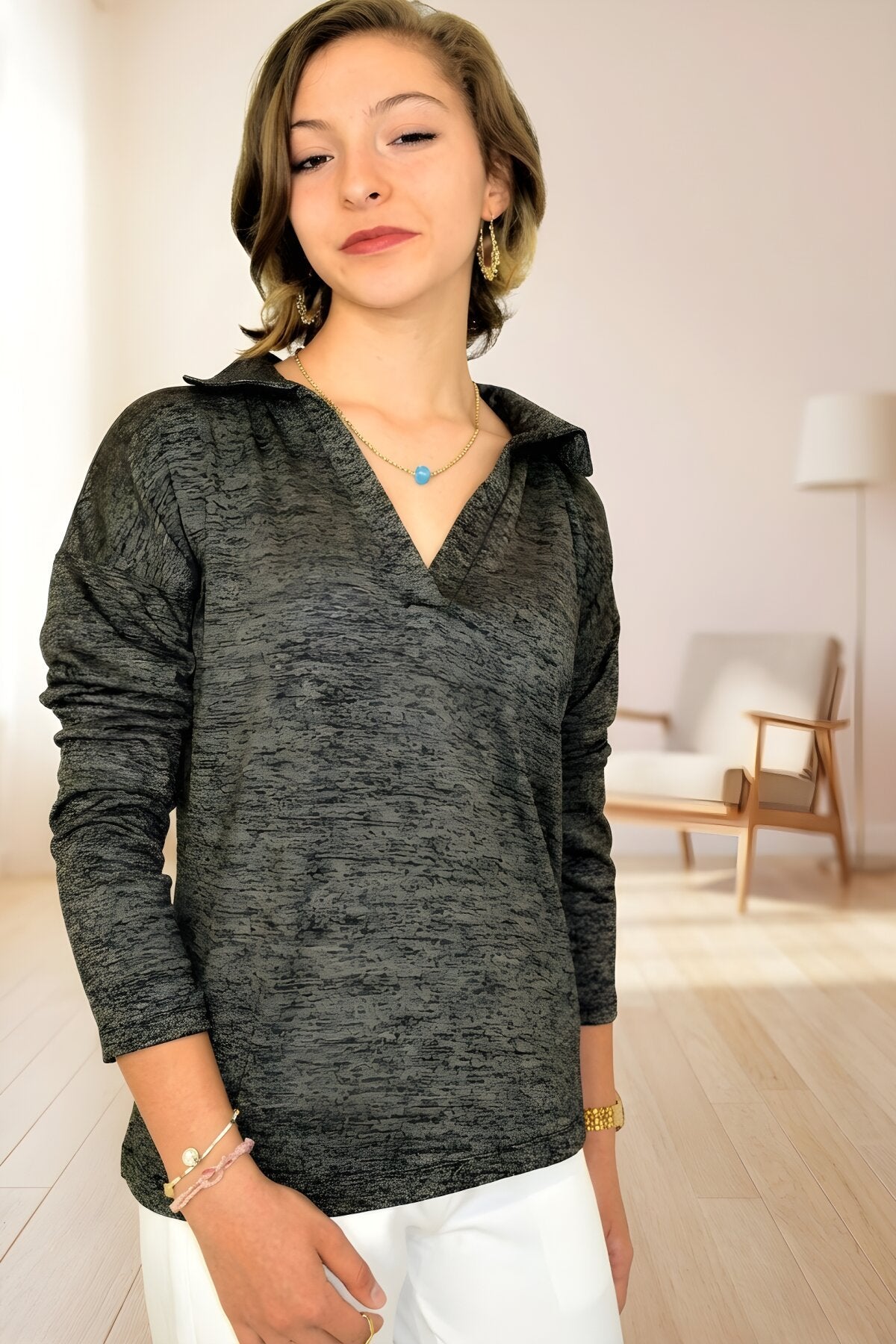 Polo Neck Blouse - Anthracite