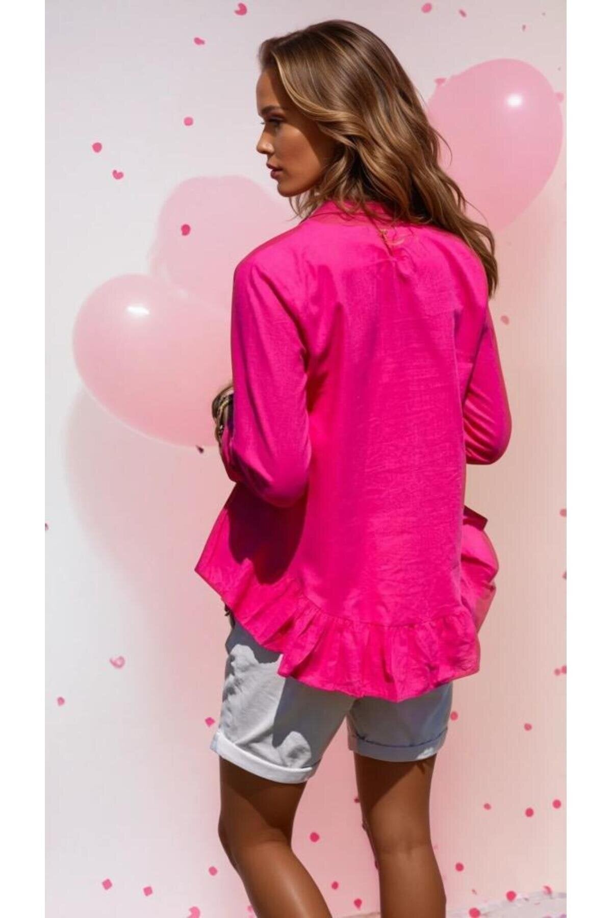 Relaxed Fit Ruffled Cotton Linen Blouse with Long Back - Fuchsia
