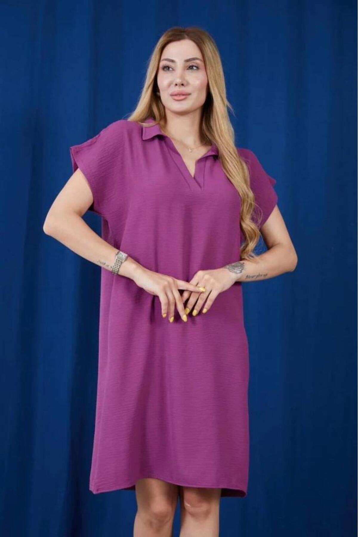 Fabric Type: Woven, Material: Linen-look, Sleeve Type: Short Sleeve, Pattern: Solid, Fit: Regular, Color: Ecru, Collar Type: Polo Collar, Closure Type: No Closure, Sleeve Length: Short, Detail: Buttoned, Pocket: No Pockets, Collection: Basic, Thickness: Medium, Lining: Unlined, Length: Midi, Persona: Feminine, Silhouette: A-line, Occasion: Casual, Weave Type: Aerobin, Additional Feature: No Additional Features, Print/Embroidery Technique: Unprinted, Belt: Belted, Sustainability Detail: No, Package Contents: Single, Cup: Cupless, Season: All Seasons, Origin: TR, Box Status: No Box
