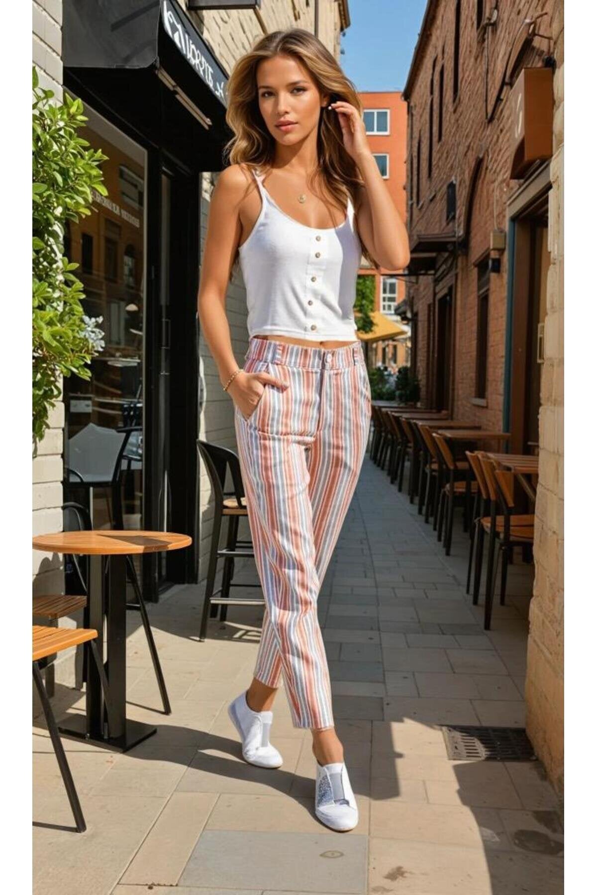 Slim Fit Striped Carrot Pocket Pants - Terracotta