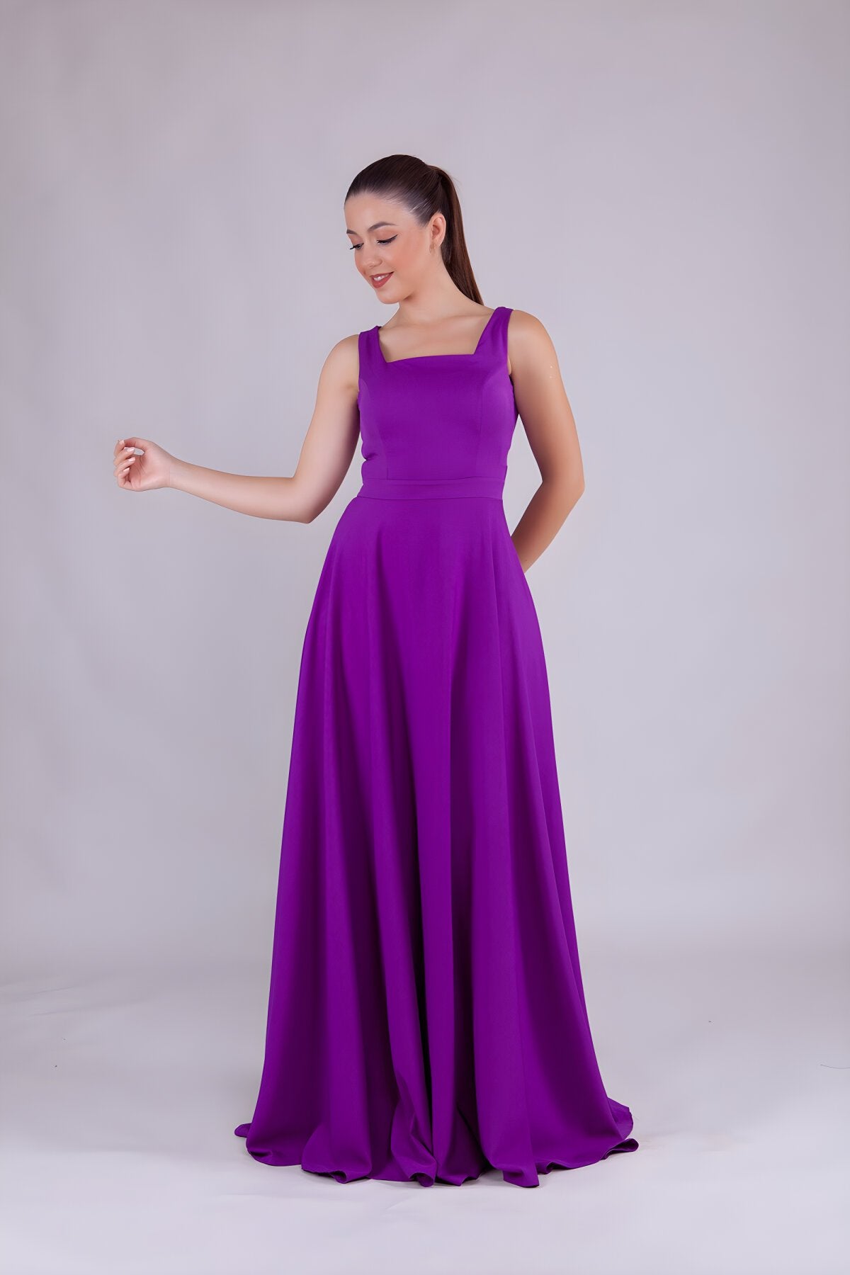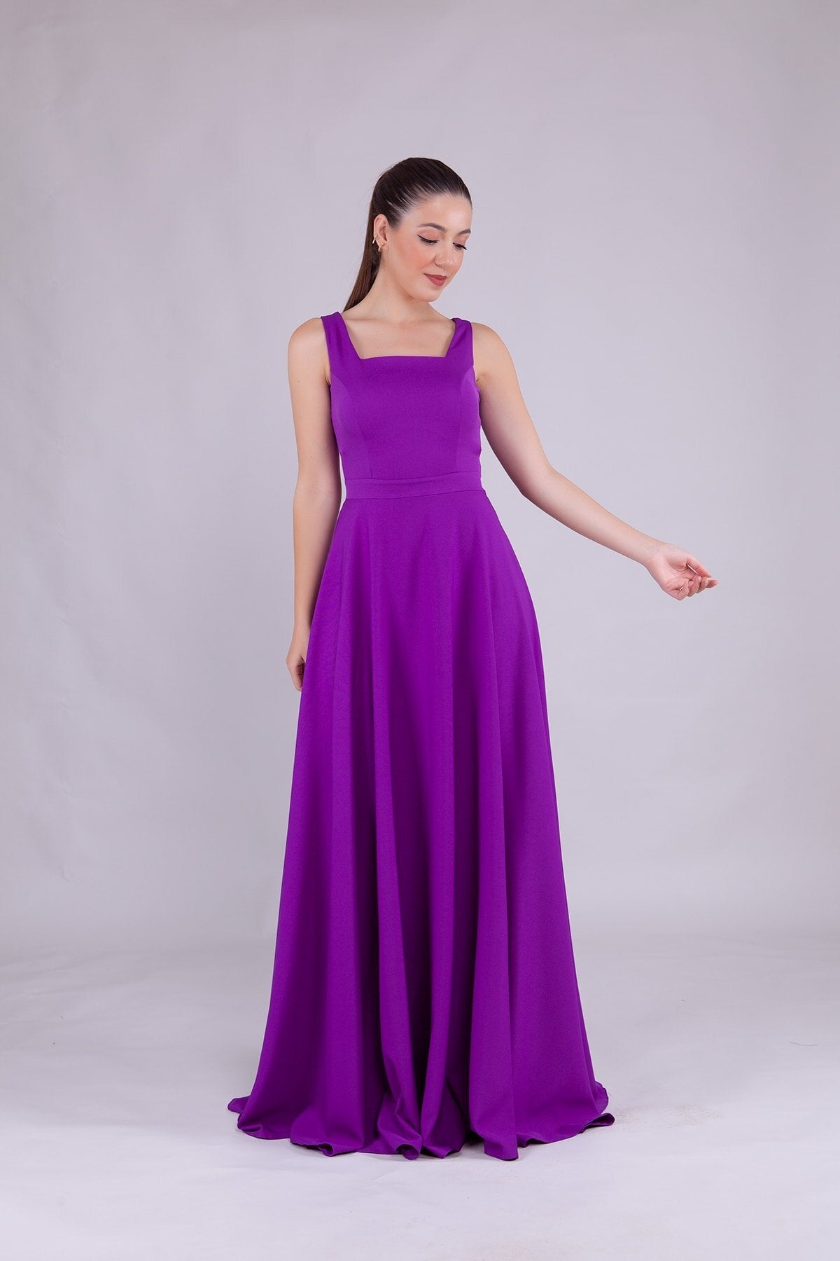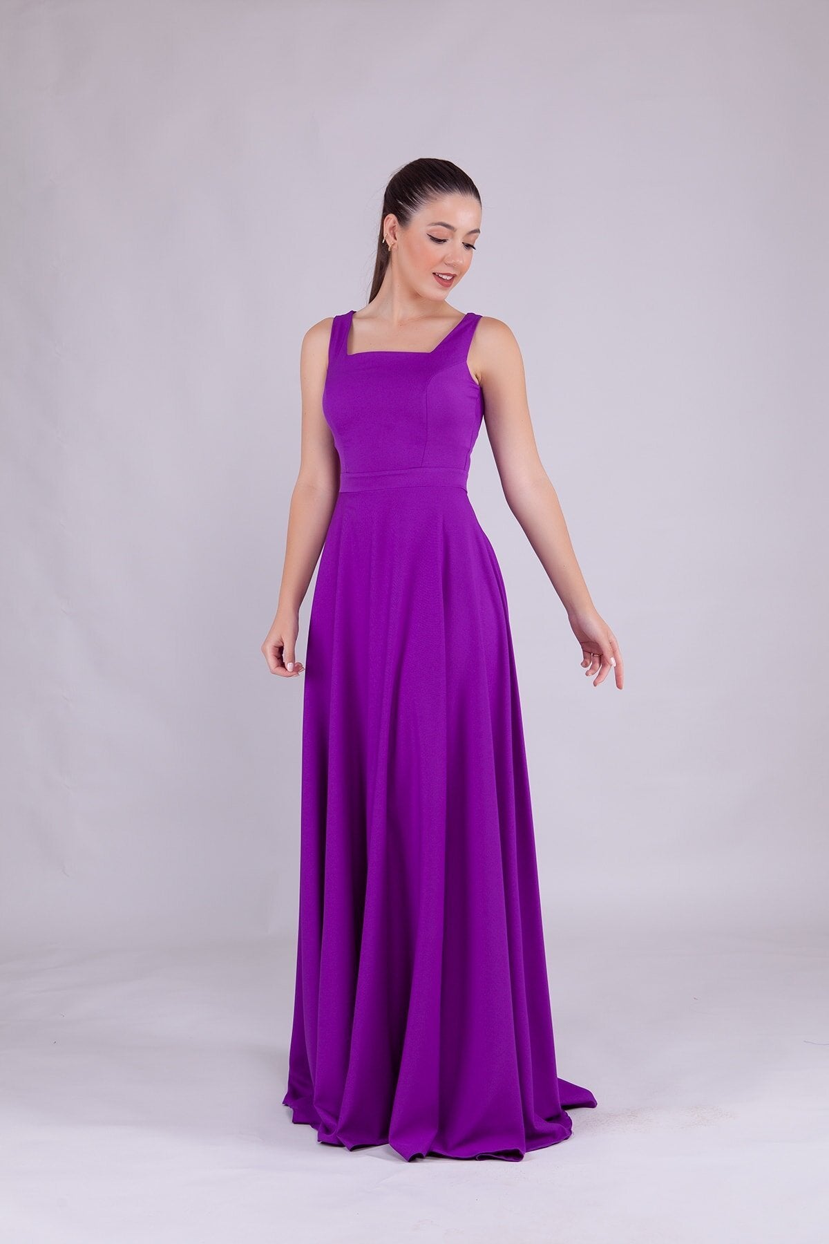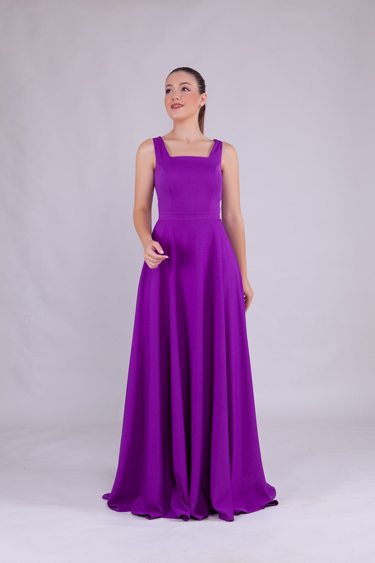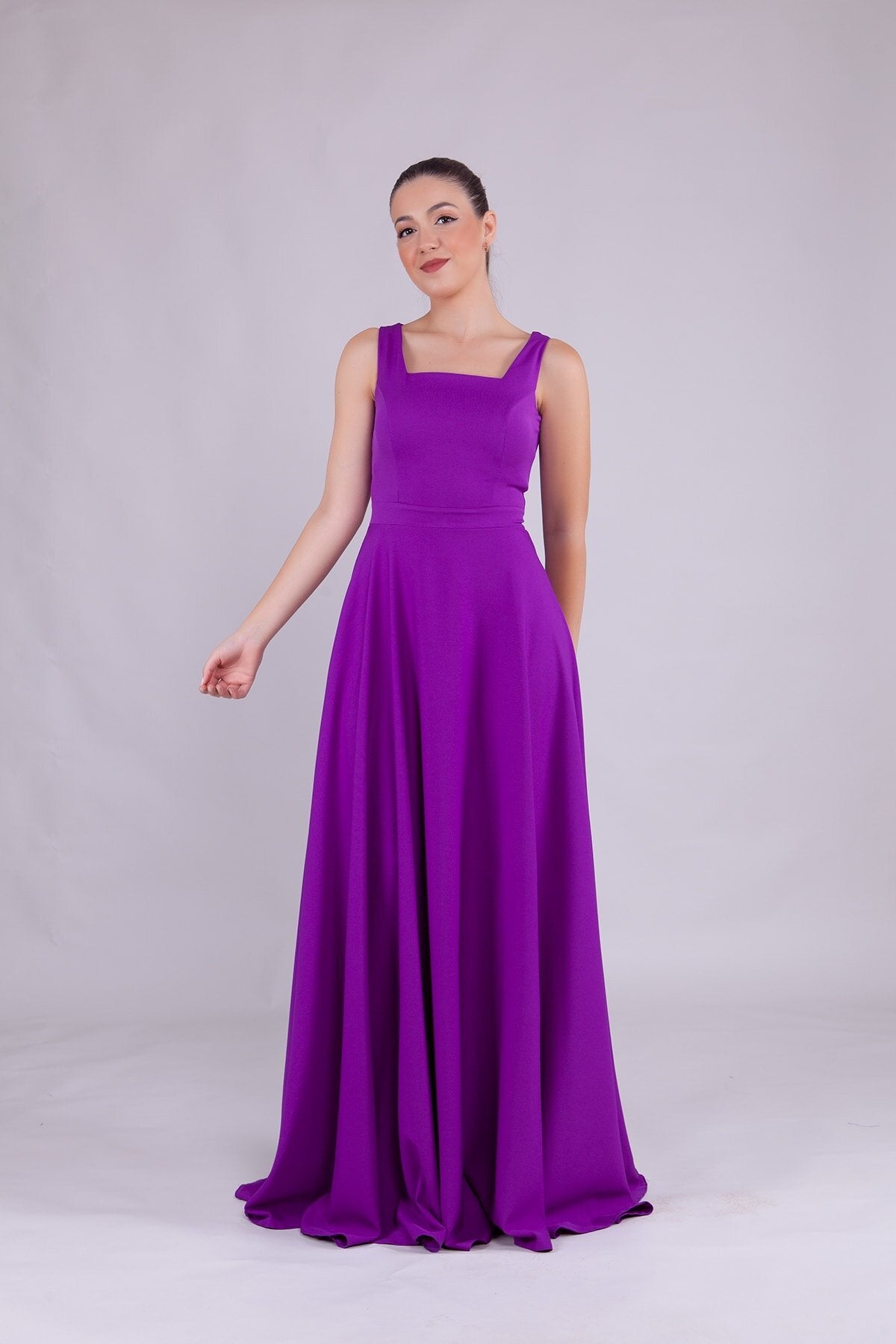 Square Neck Evening Dress - Purple