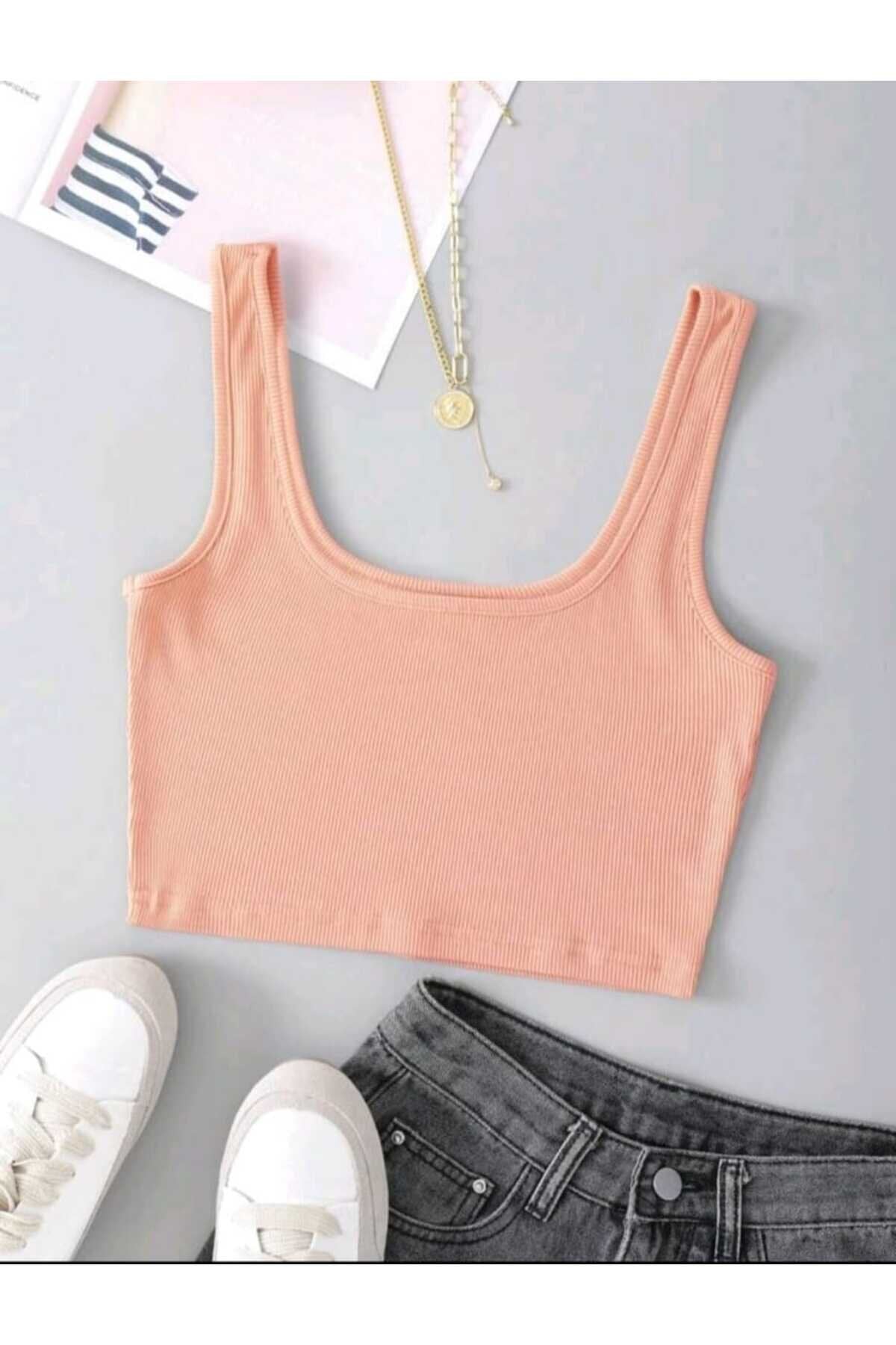 Square Neck Strappy Crop Top - Salmon