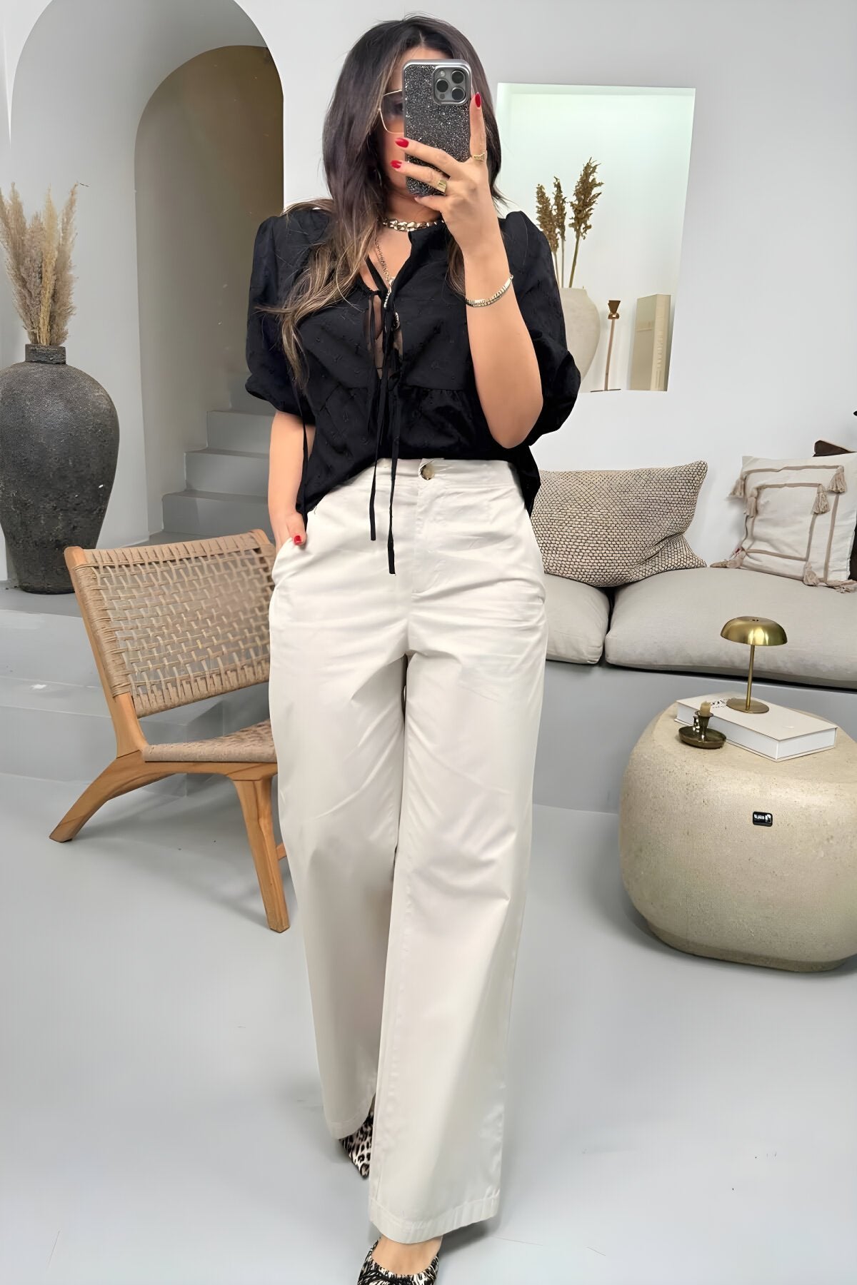 Straight-Leg Elasticated Back Waist Pants - Stone