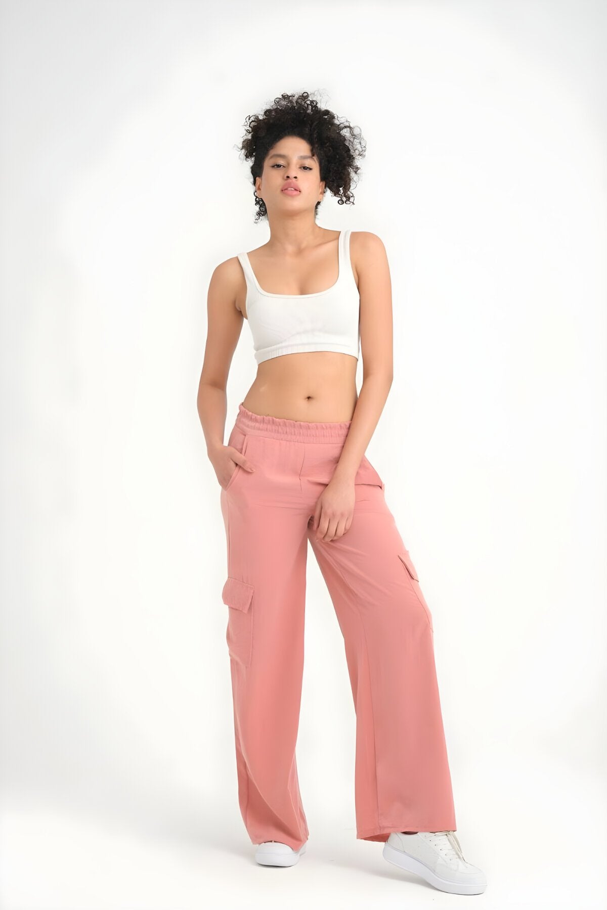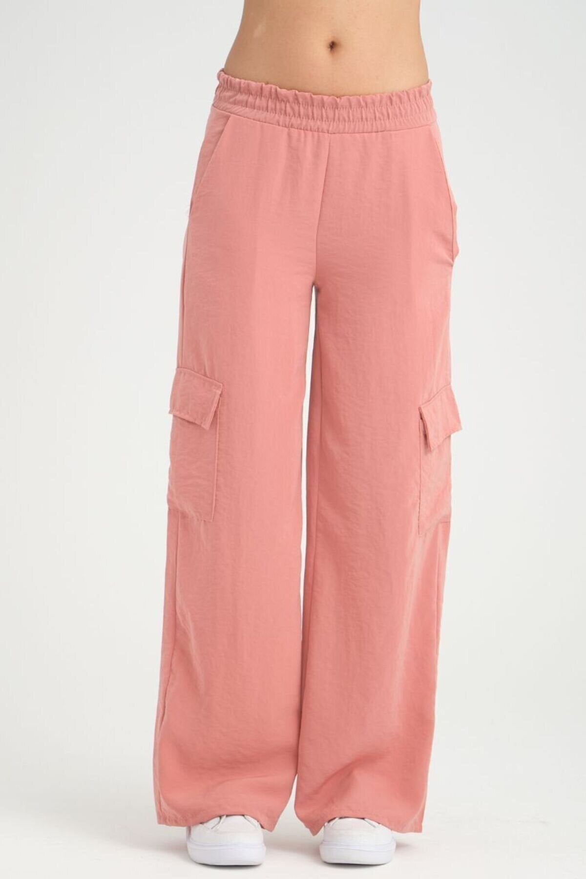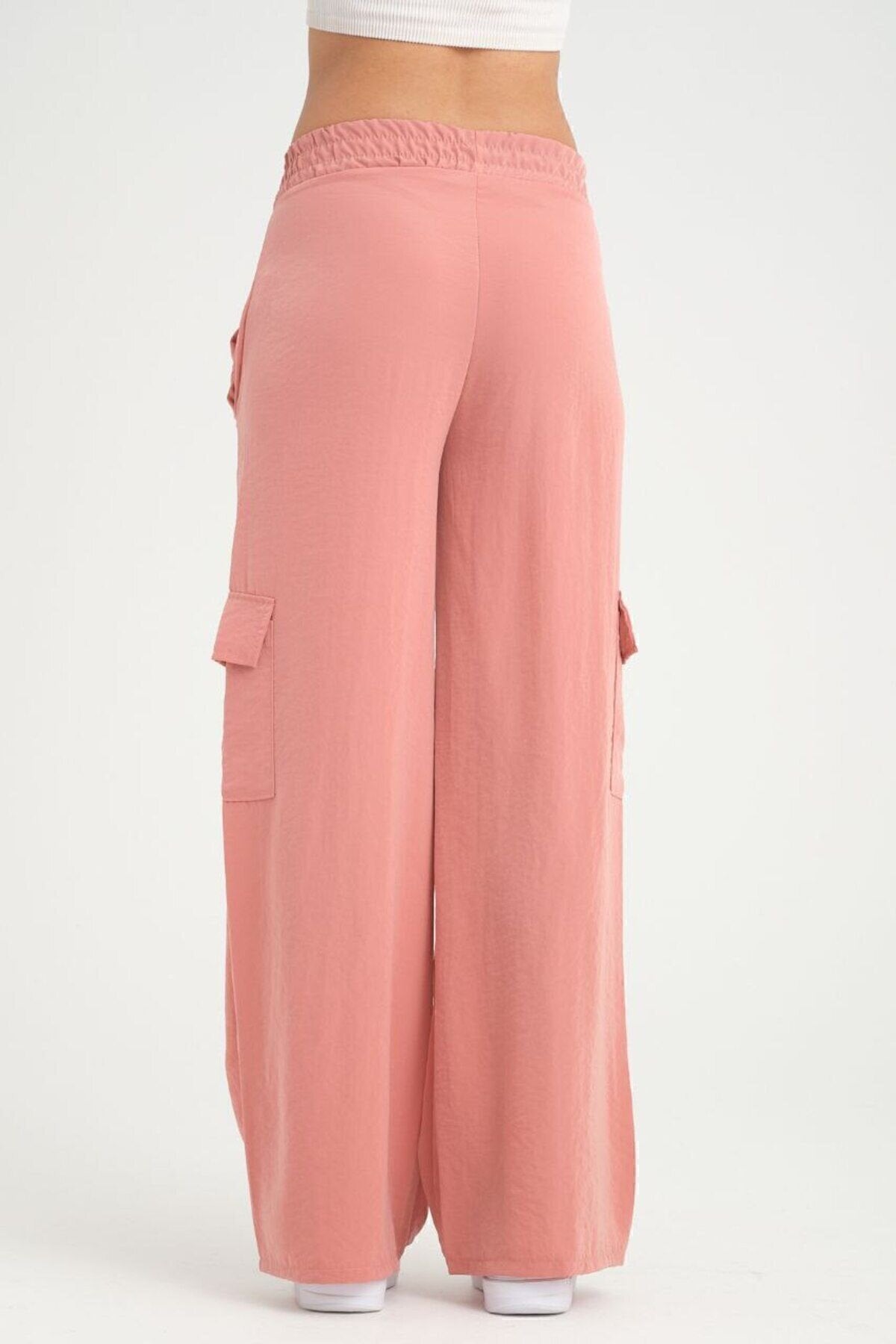 Wide Leg Cargo Cupro Elastic Waist Pants - Dusty Rose